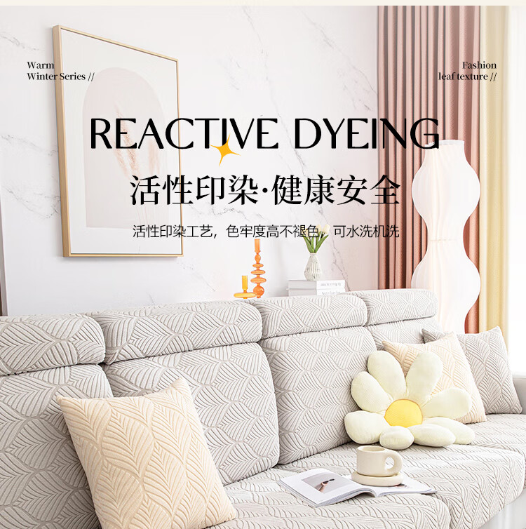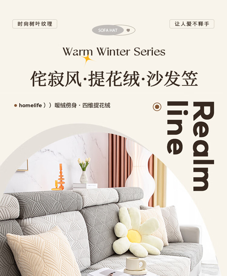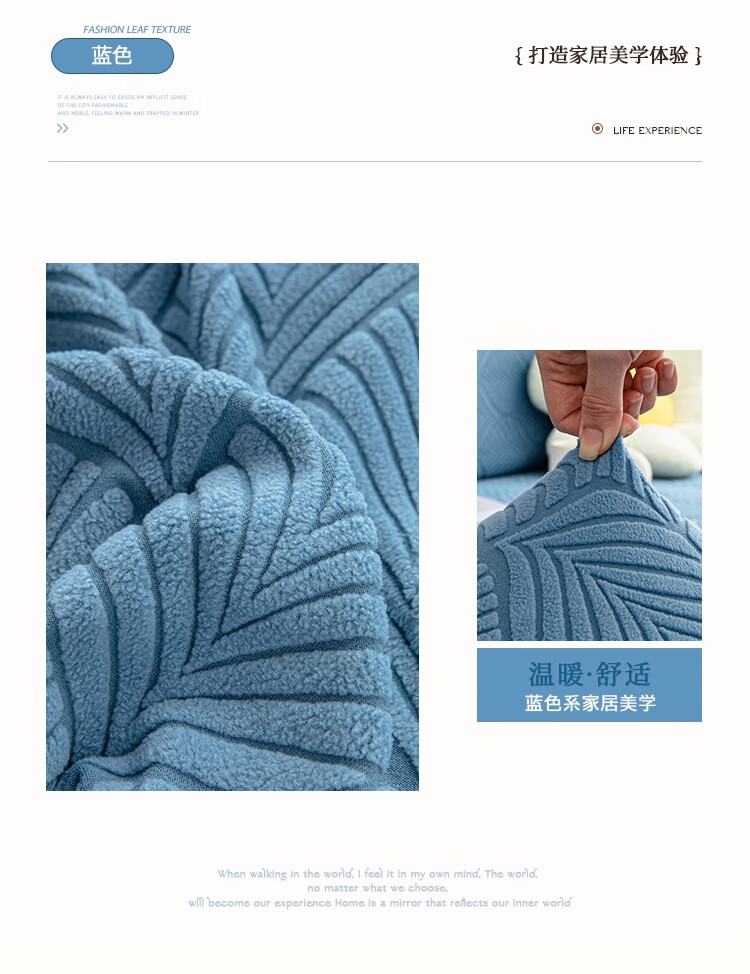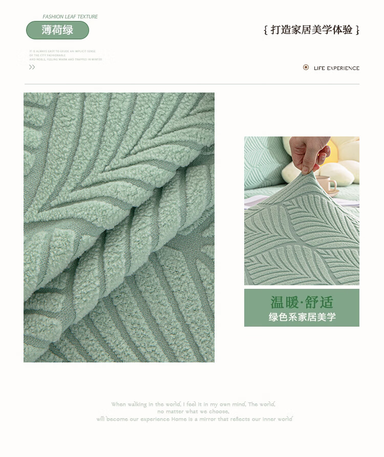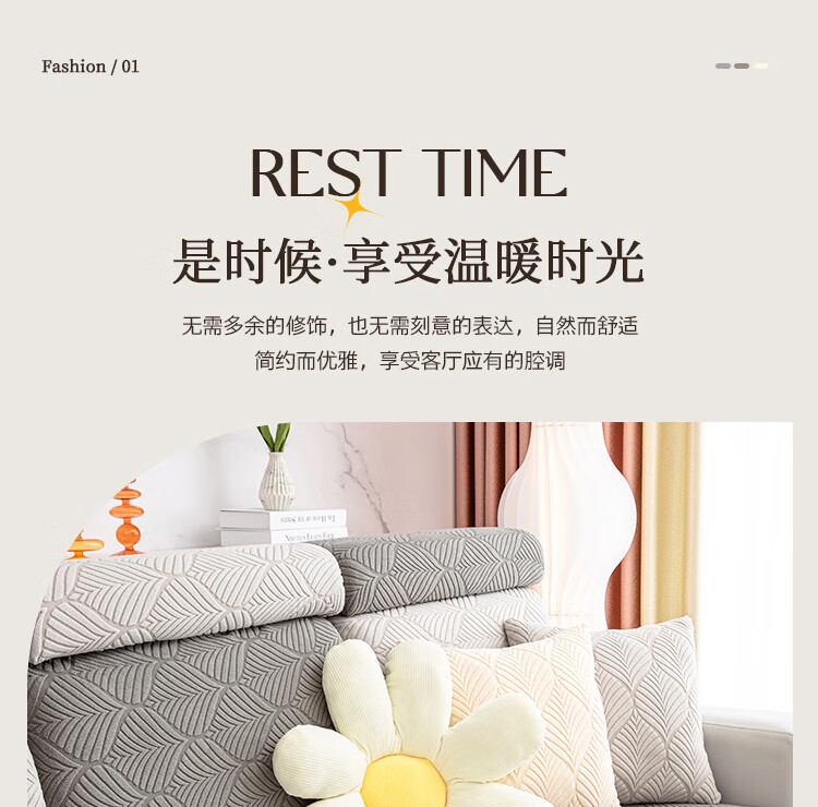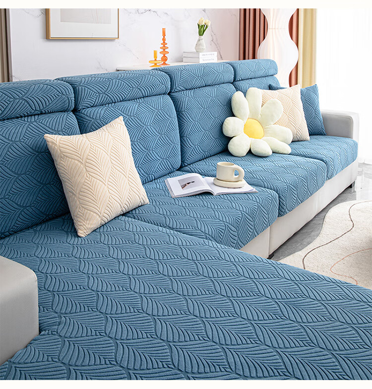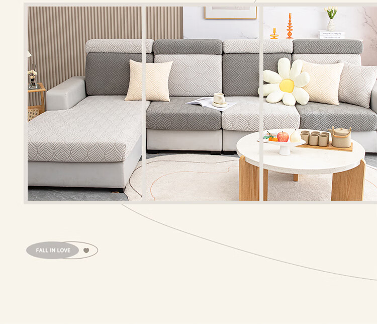 金拾美月防猫抓提花绒沙发套全包罩2025新款四季通用型坐垫笠防滑盖布巾 叶荞-浅灰 单人加大S宽65-85cm*长65-95cm