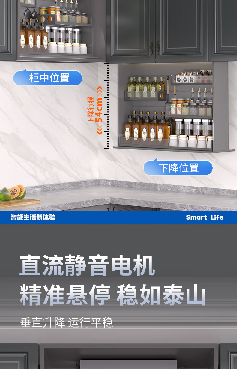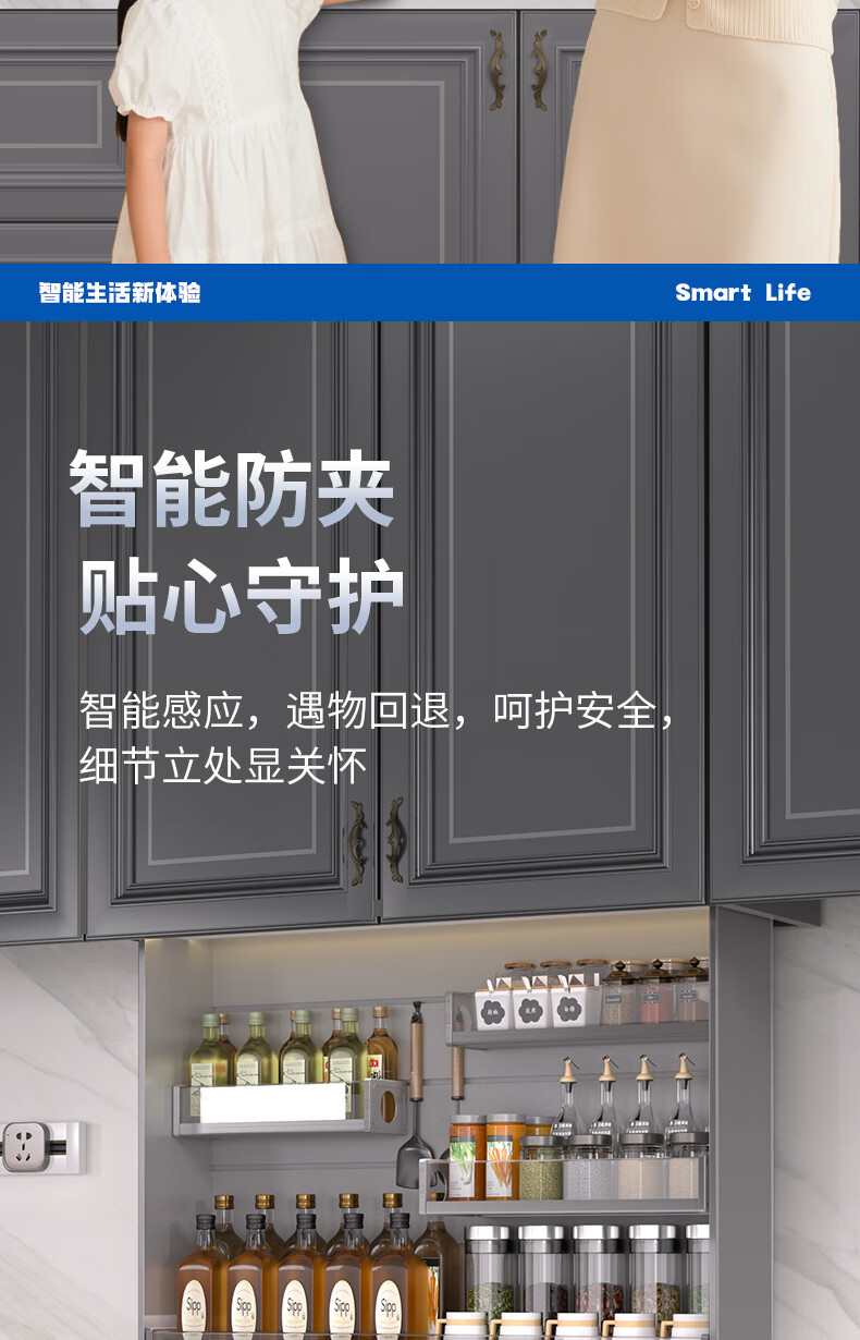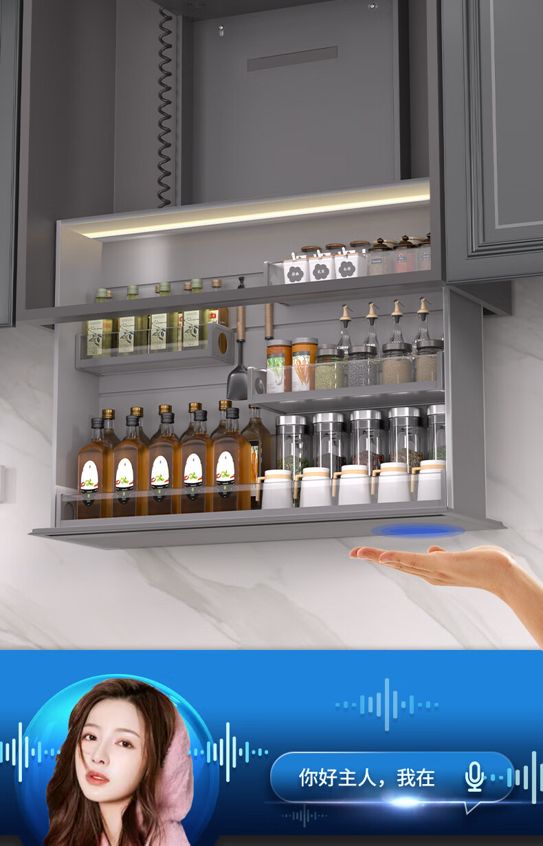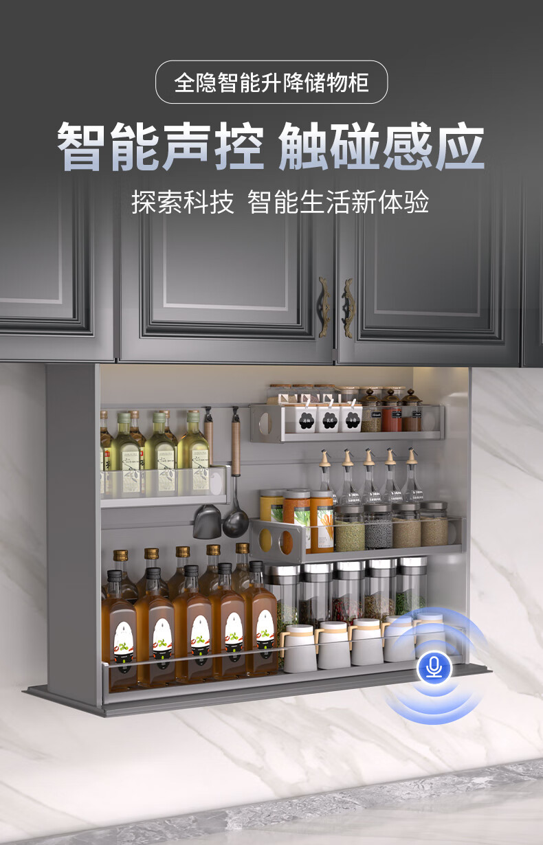 倘然之家吊柜电动升降调味拉篮厨房橱柜智能升降机调料架置物架上柜下拉篮 【自行安装】灰550柜语音控制/触摸 多层 电动升降