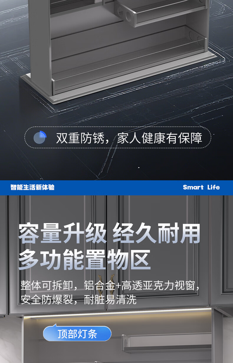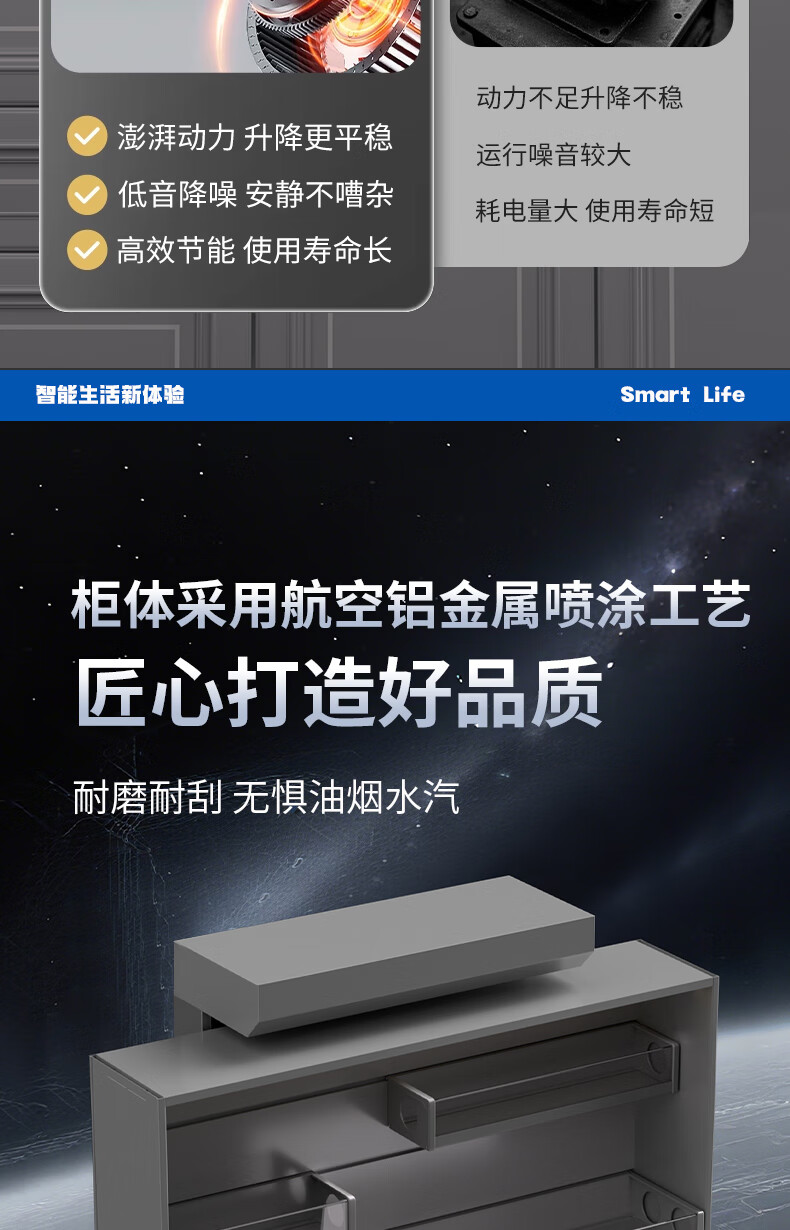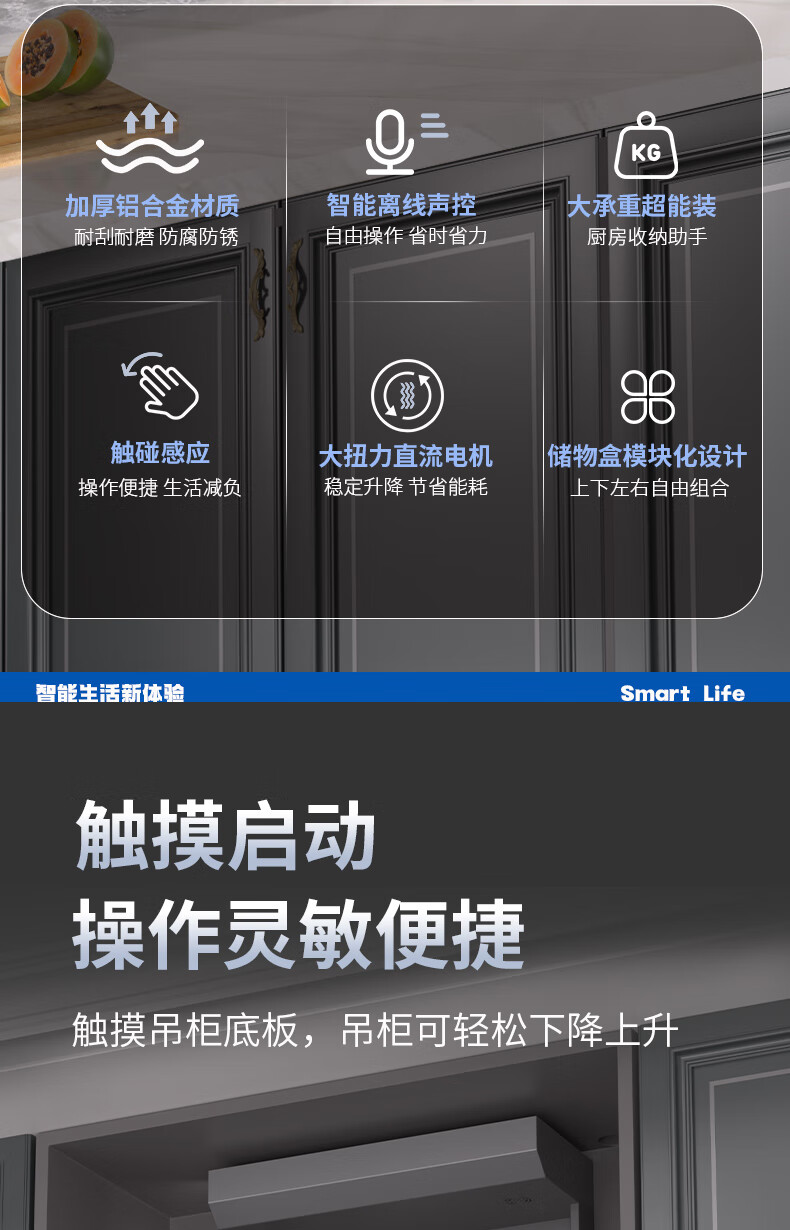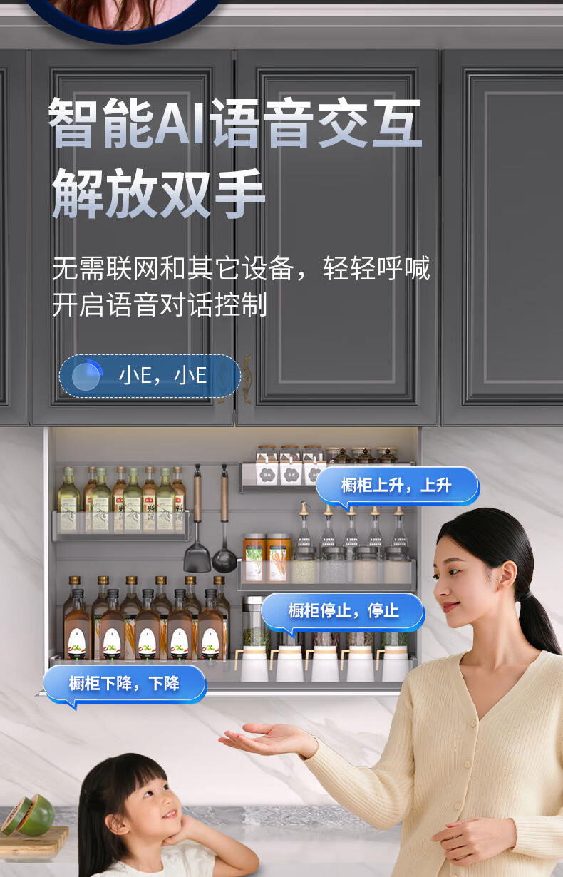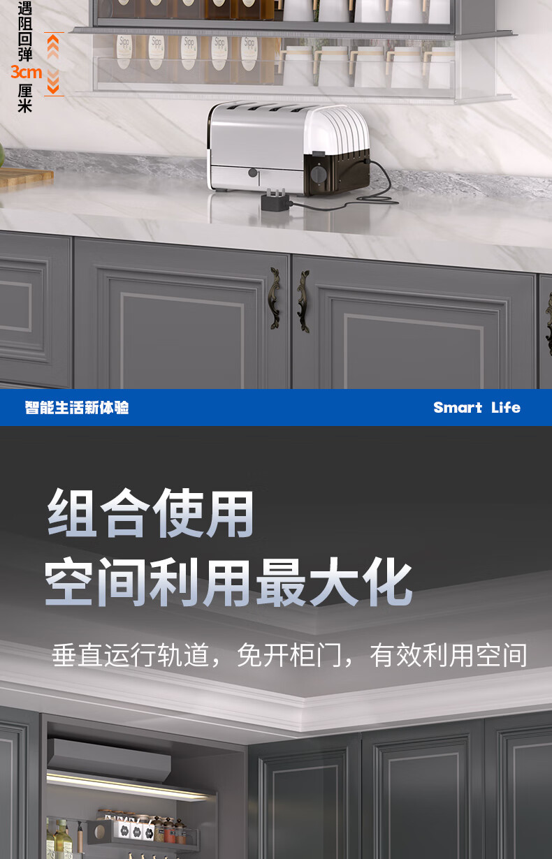 倘然之家吊柜电动升降调味拉篮厨房橱柜智能升降机调料架置物架上柜下拉篮 【自行安装】灰550柜语音控制/触摸 多层 电动升降