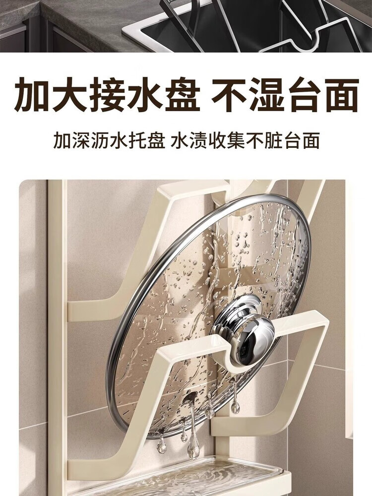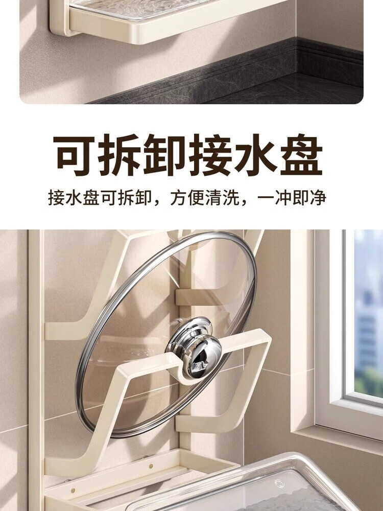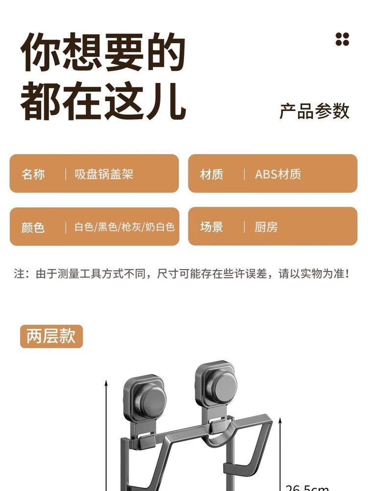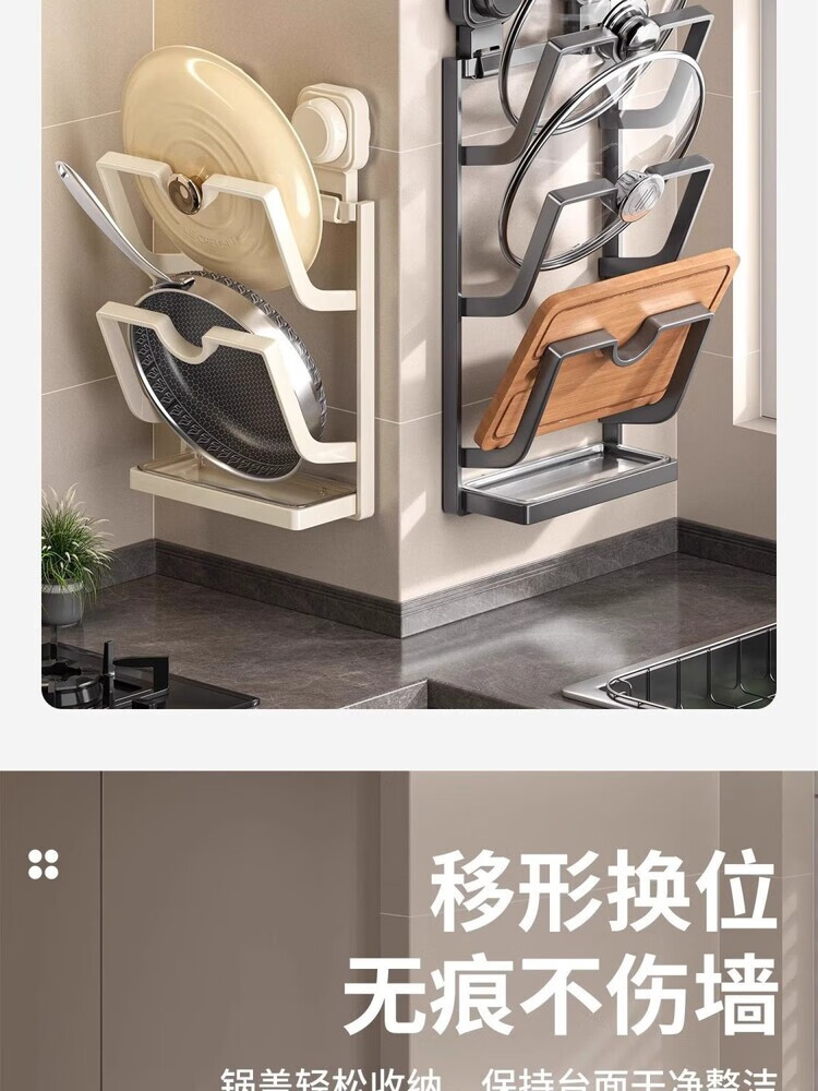 简漾枪灰色锅盖架子壁挂置物架免打孔厨房置物架砧板菜板收纳架 【枪灰色】两层锅盖架