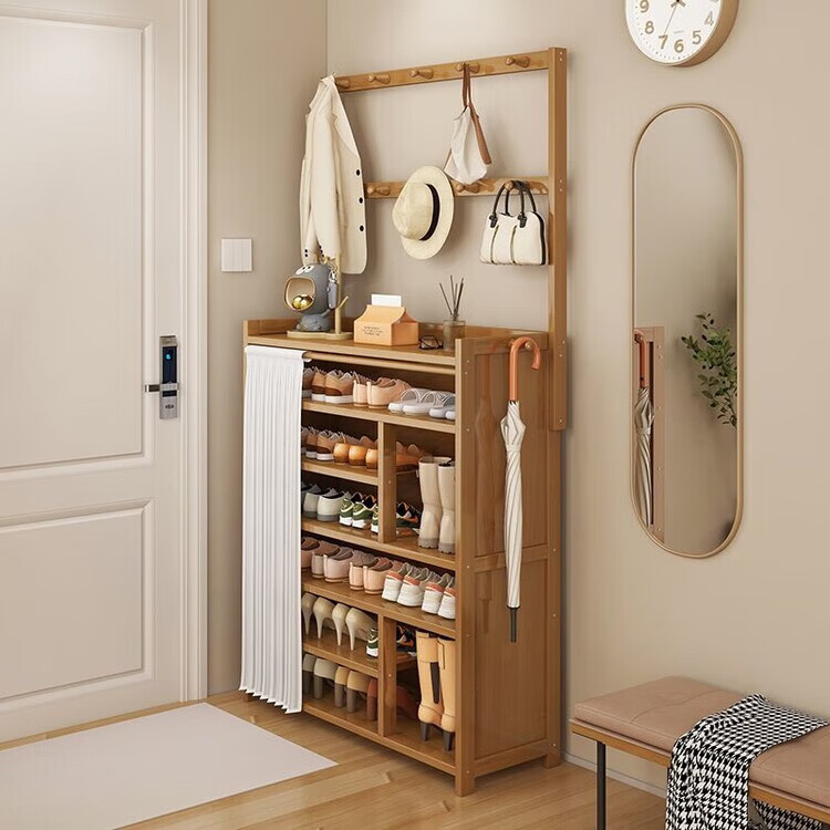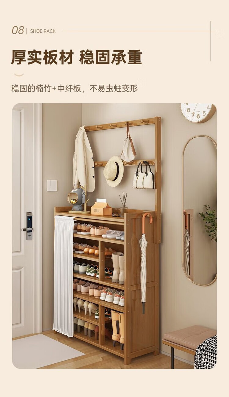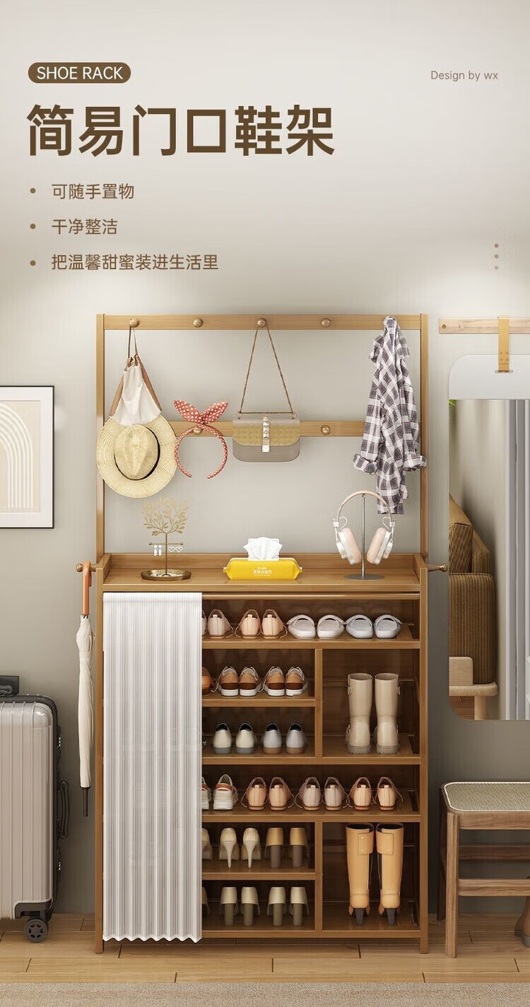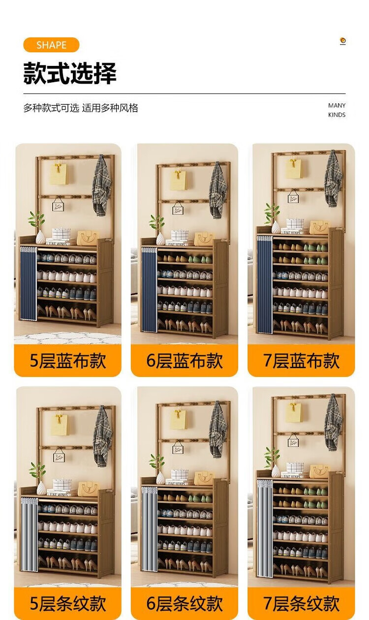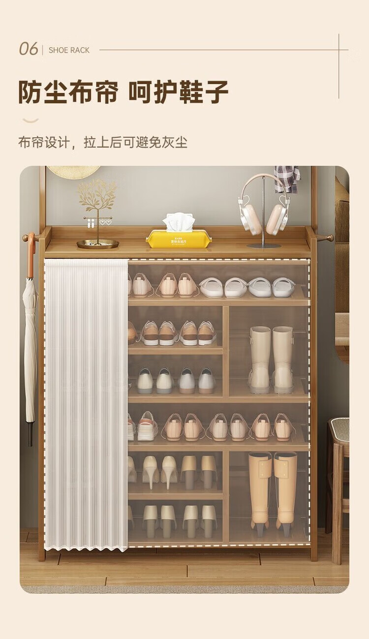 倘然之家鞋柜挂衣架一体多层鞋架子狠能装狠稳固门口宿舍出租房收纳置物架 白色布帘鞋衣一体架 防尘加固款 5-50CM