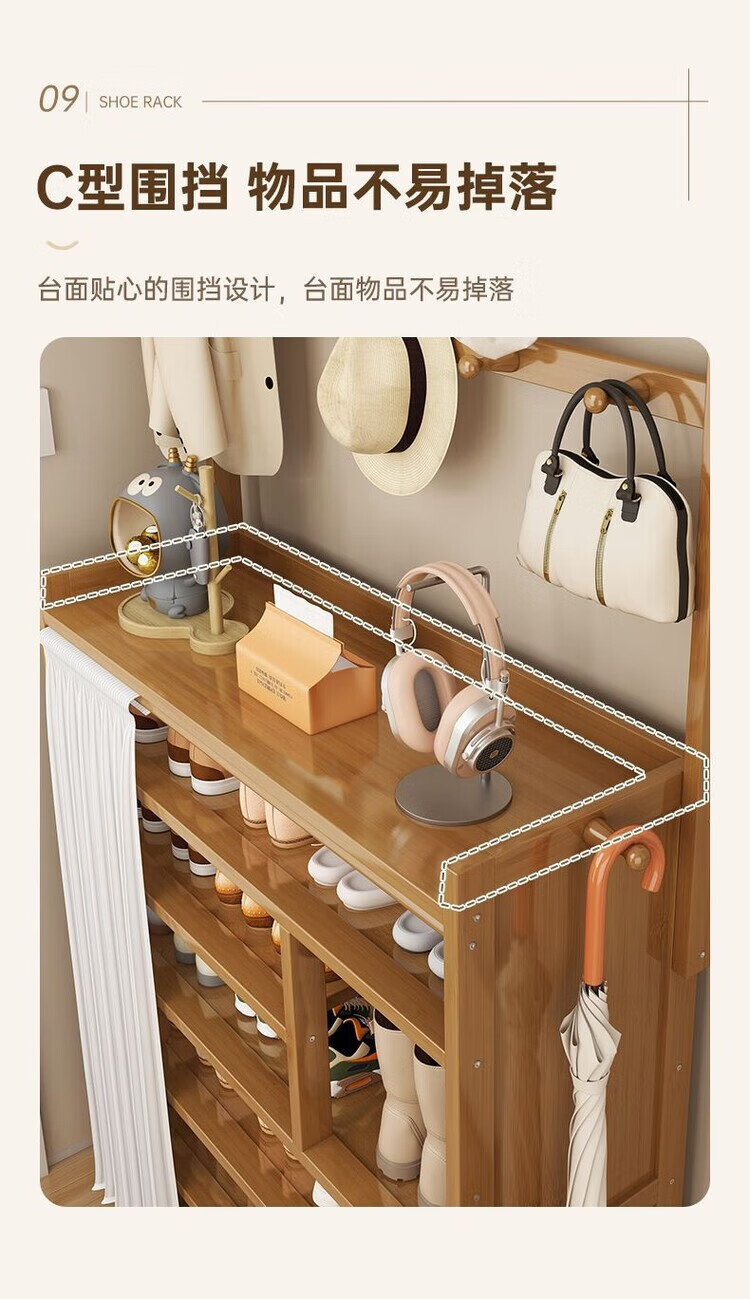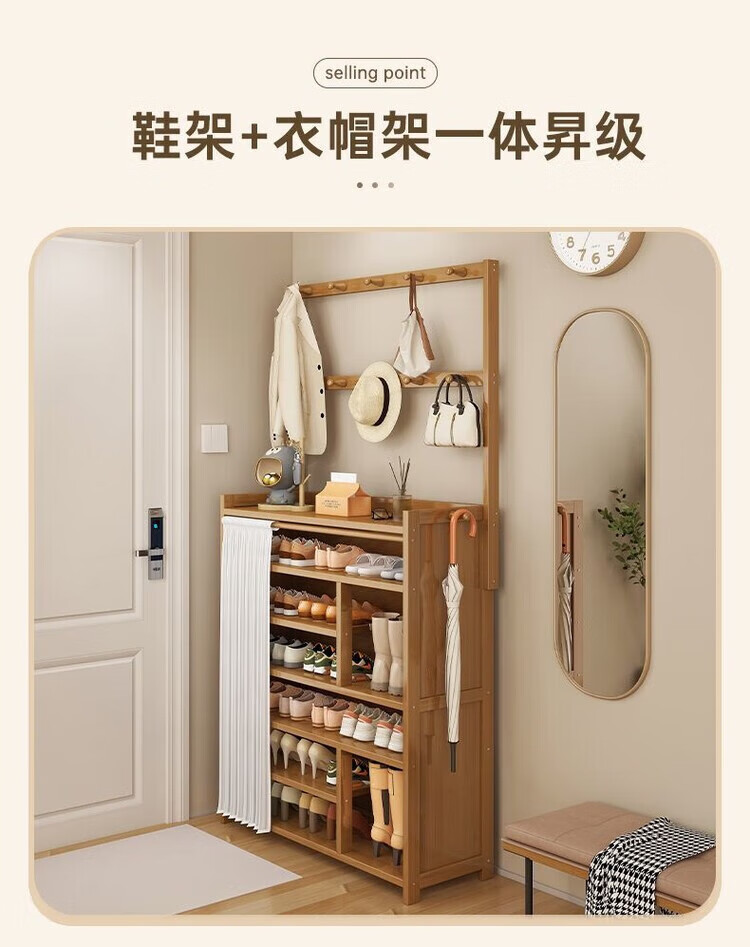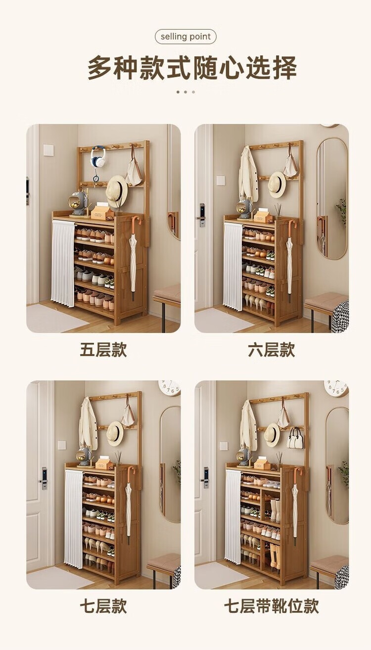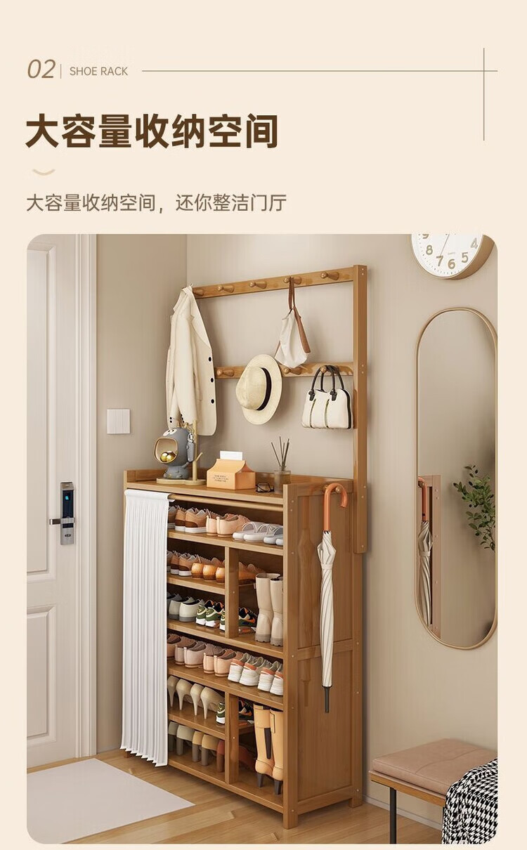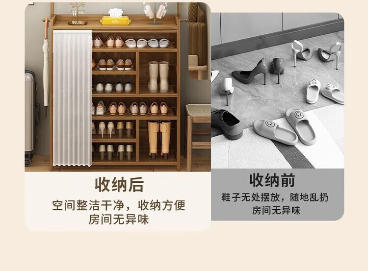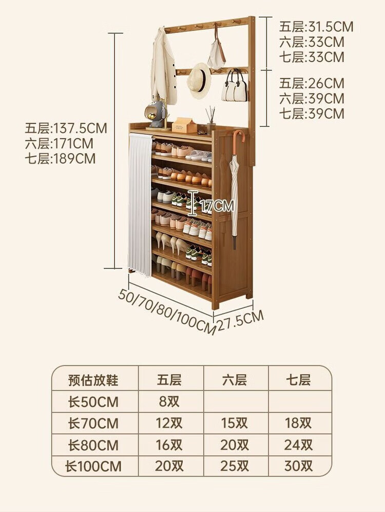 倘然之家鞋柜挂衣架一体多层鞋架子狠能装狠稳固门口宿舍出租房收纳置物架 白色布帘鞋衣一体架 防尘加固款 5-50CM