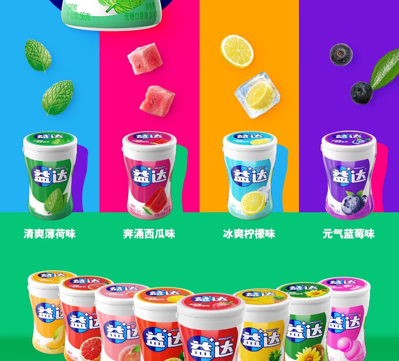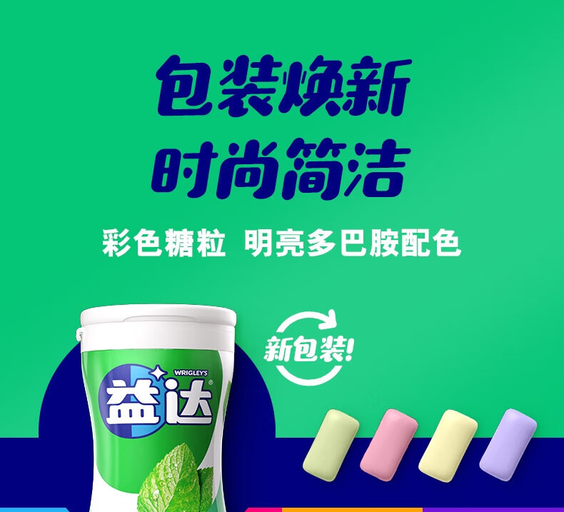 益达无糖口香糖约40粒混合口味木糖醇口香糖果零食 新旧包装随机 益达混合口味56g4瓶