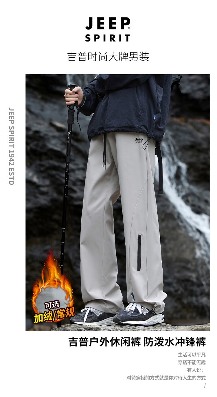 JEEP SPIRIT吉普裤子男春秋季冲锋裤男士工装休闲裤男宽松直筒潮流男裤