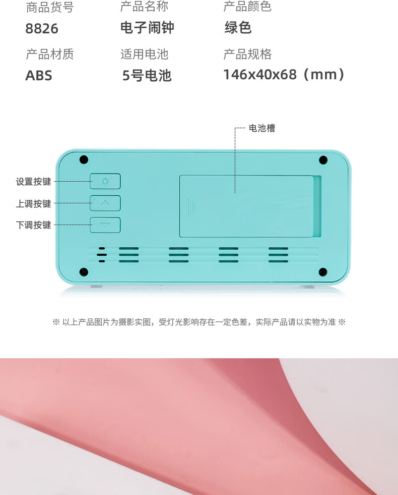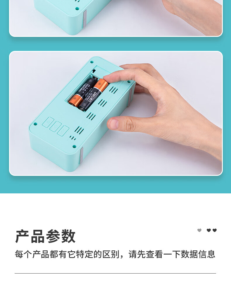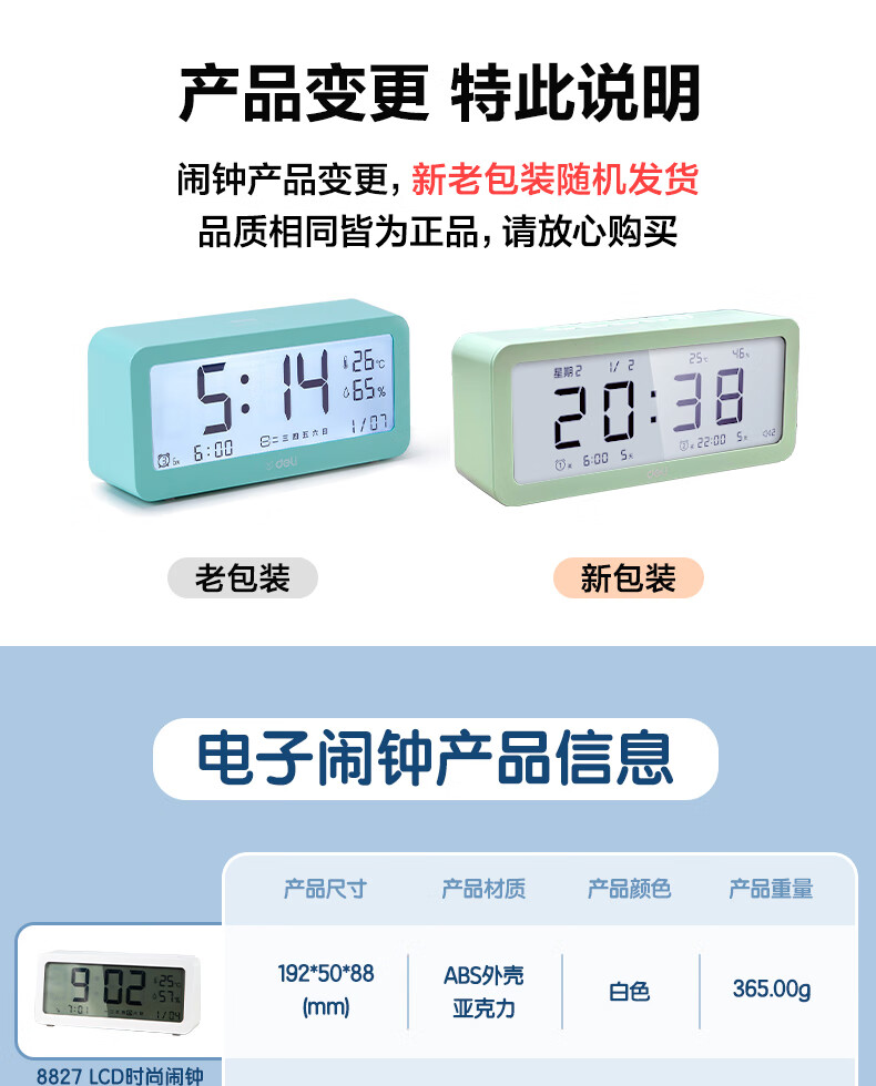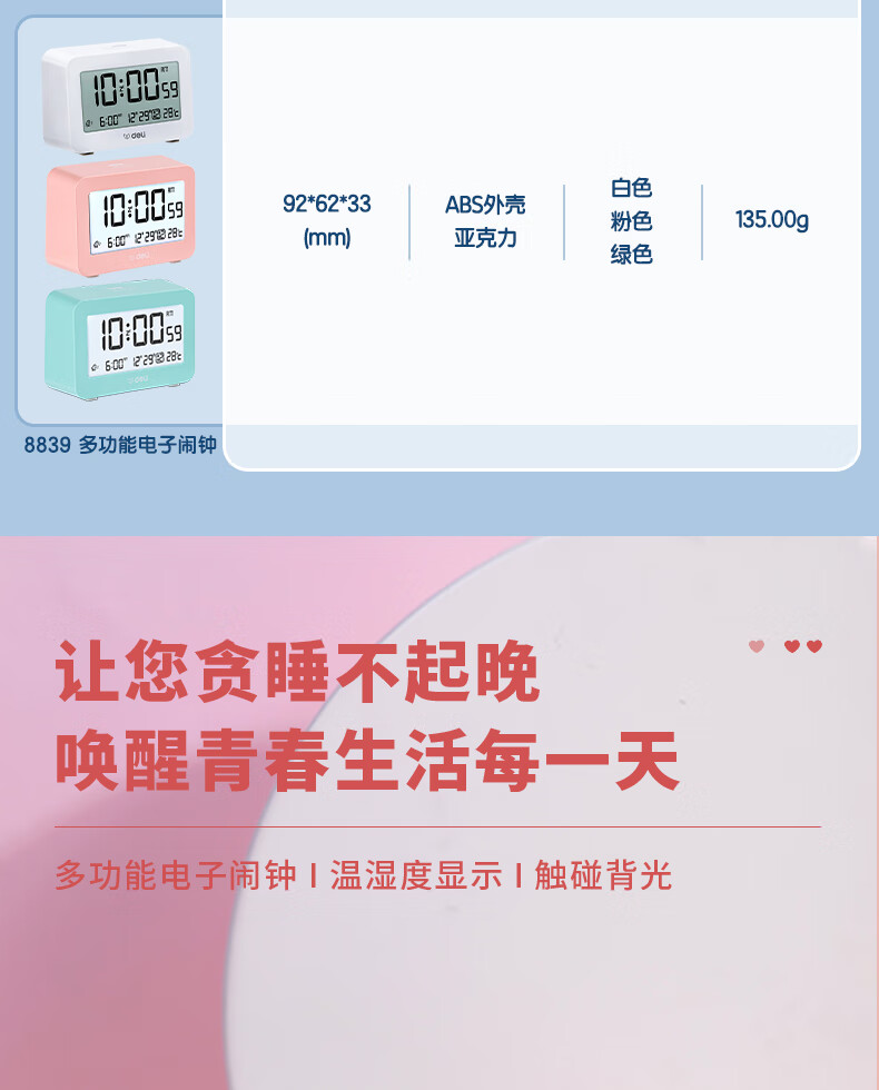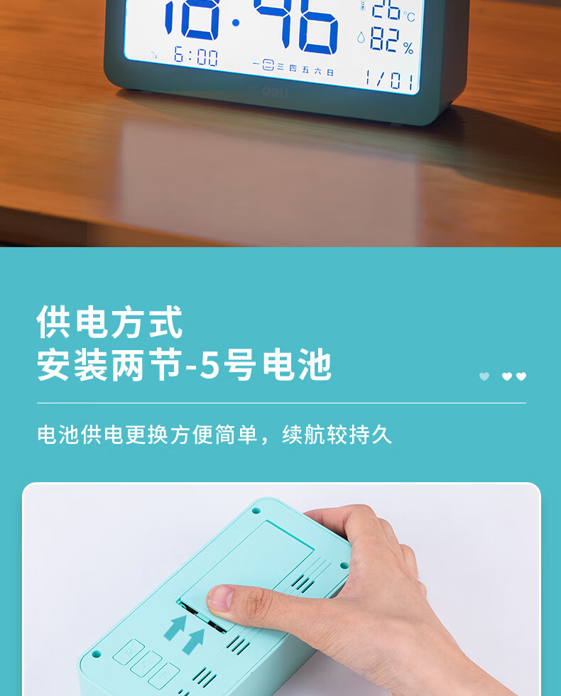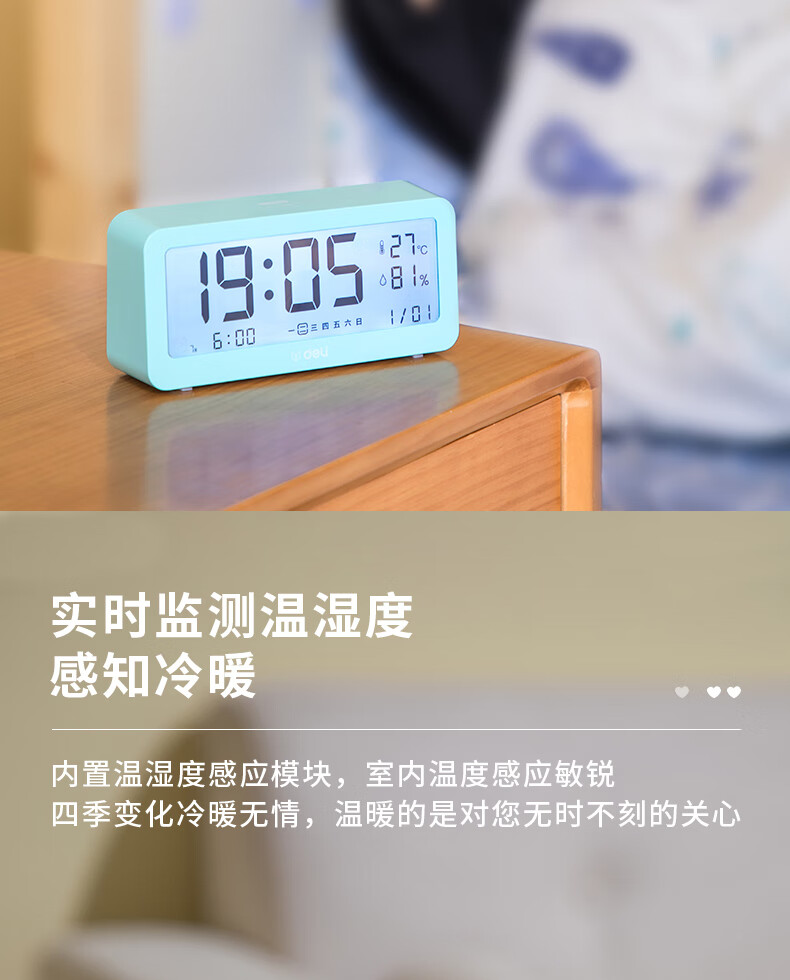 得力(deli)多功能电子闹钟 学生儿童专用起床神器背光床头钟时钟时间管理温湿度计 绿色开学必备礼物开学季