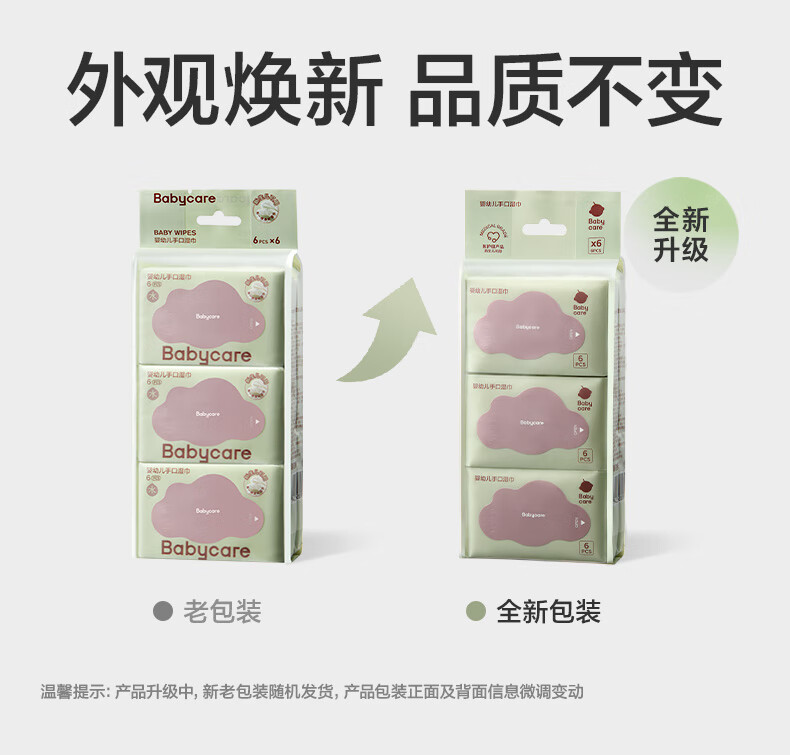 babycare婴儿手口湿巾加厚擦脸湿纸巾小包便携出行6480紫盖湿巾6抽*6包