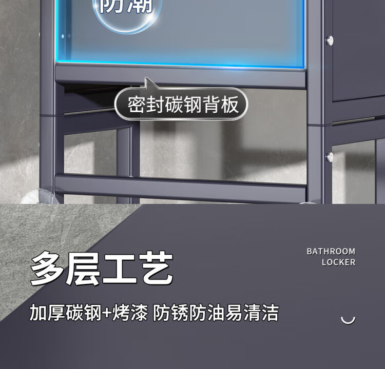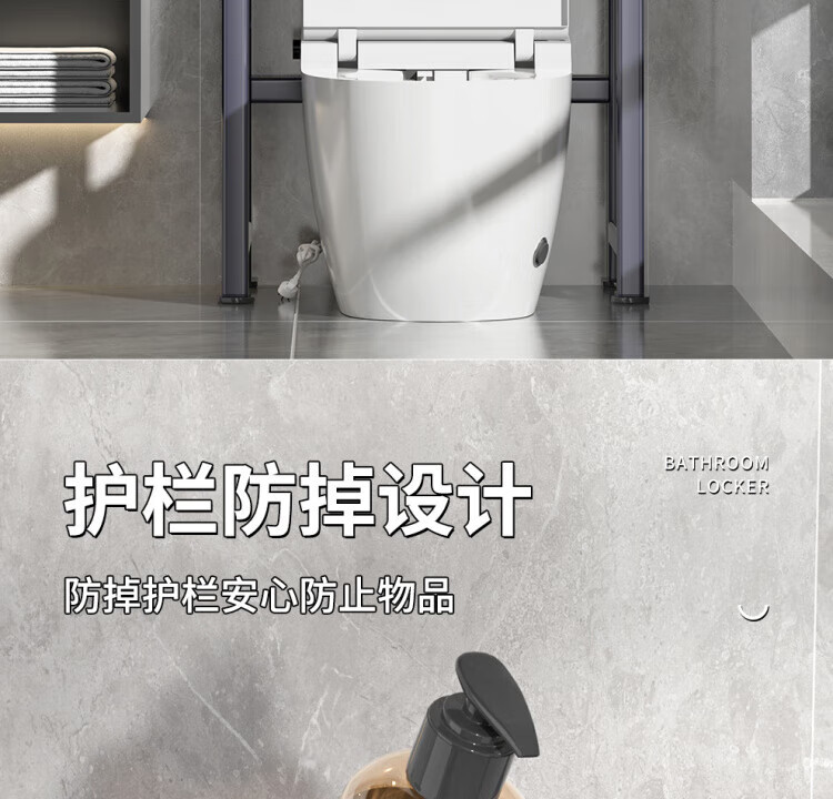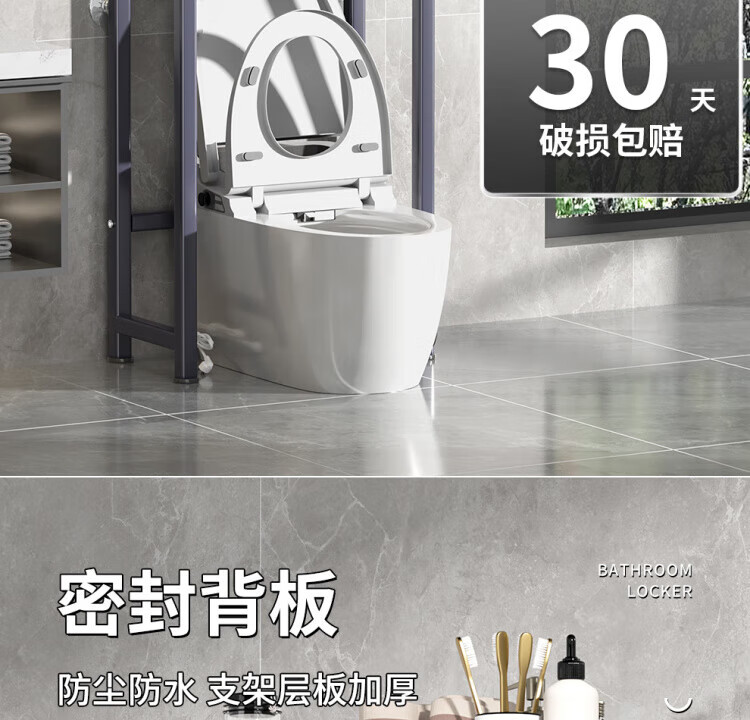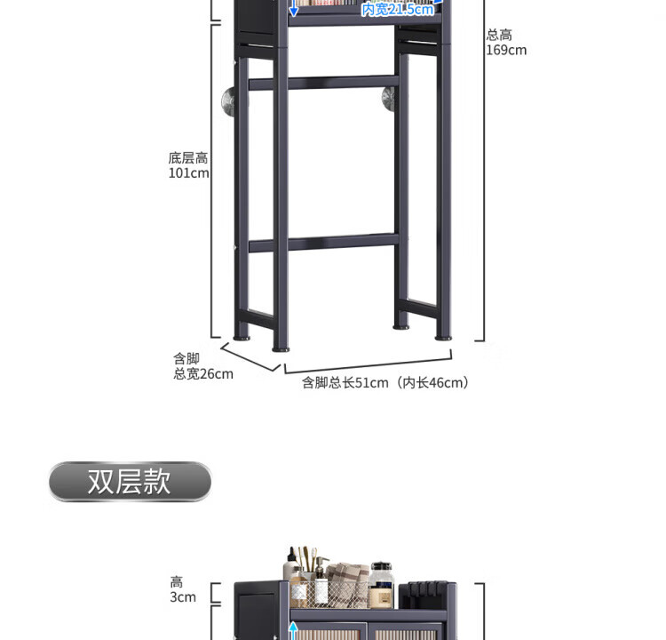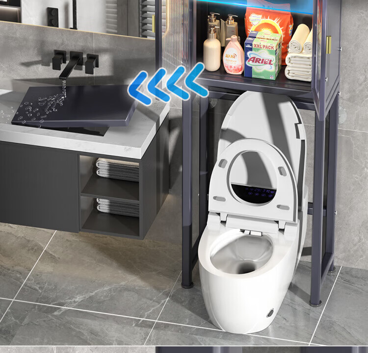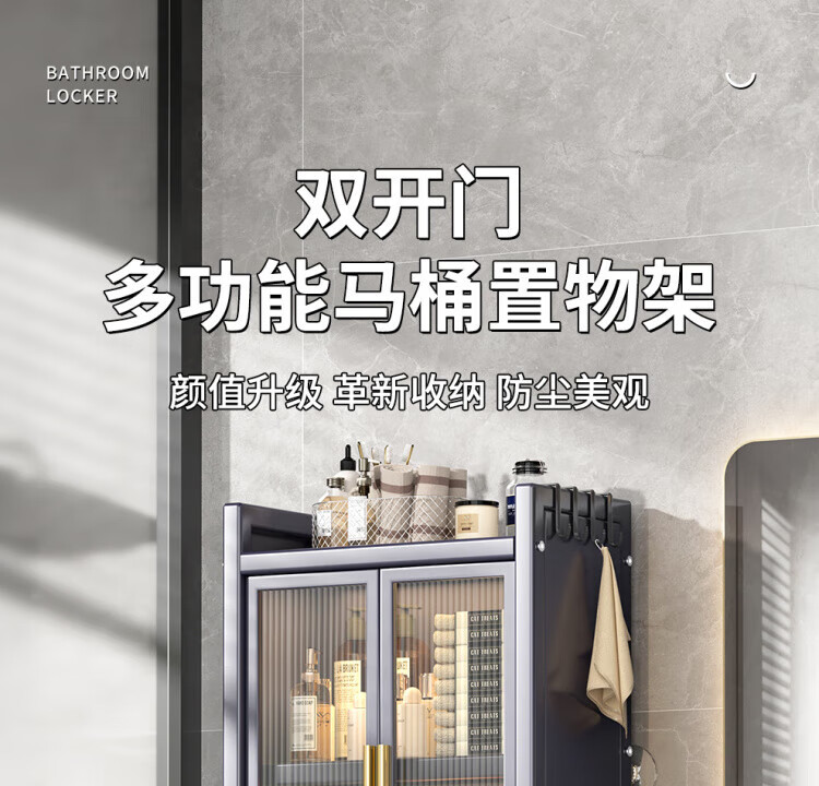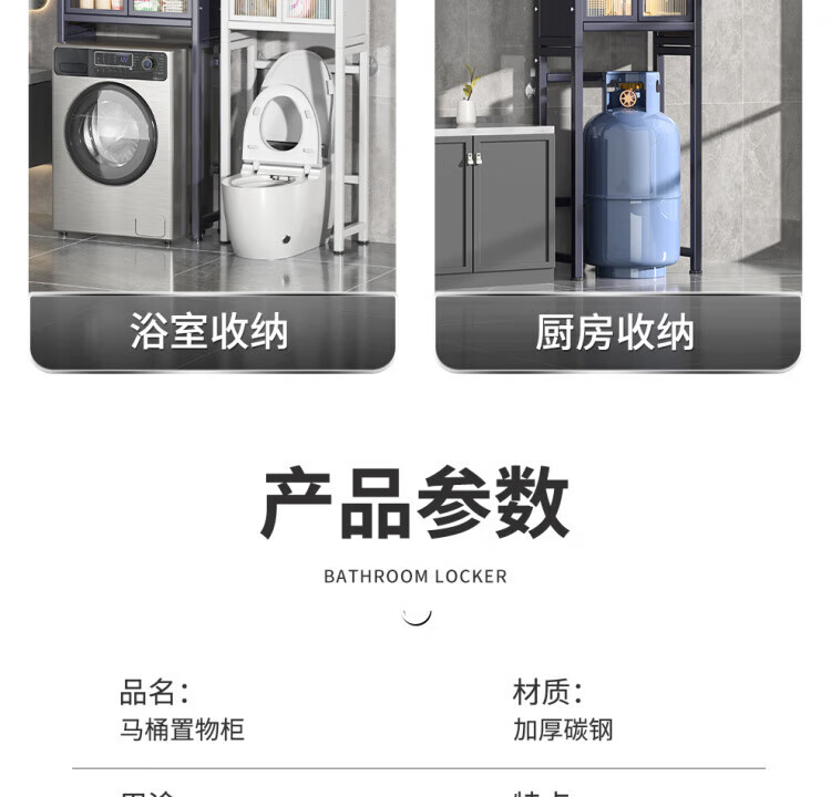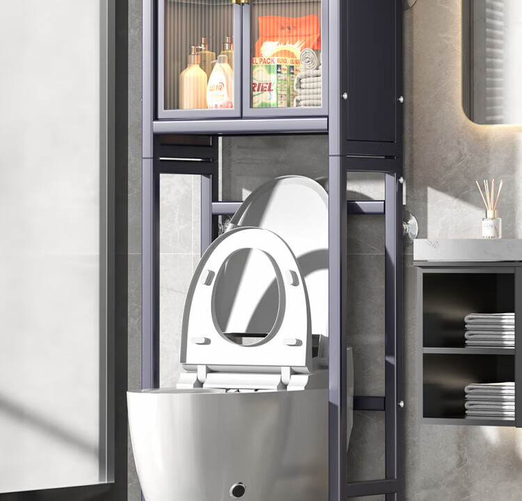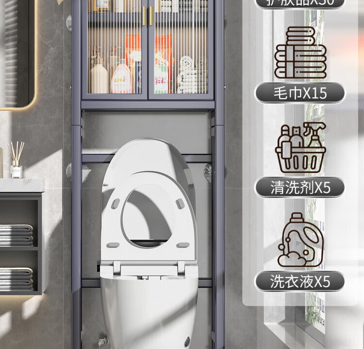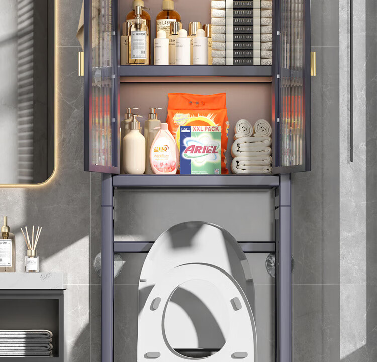 WCZ德国卫生间马桶置物架上方落地式洗衣机后面的空隙架子侧边厕所收 3层马桶柜双开门星空灰-特厚加粗