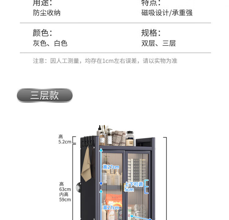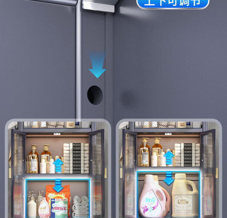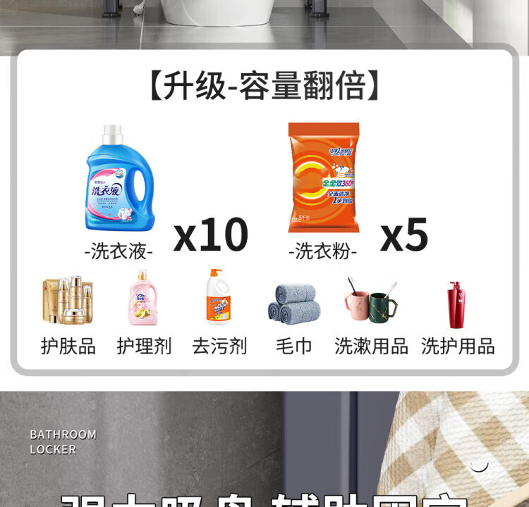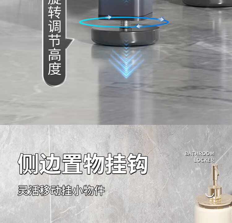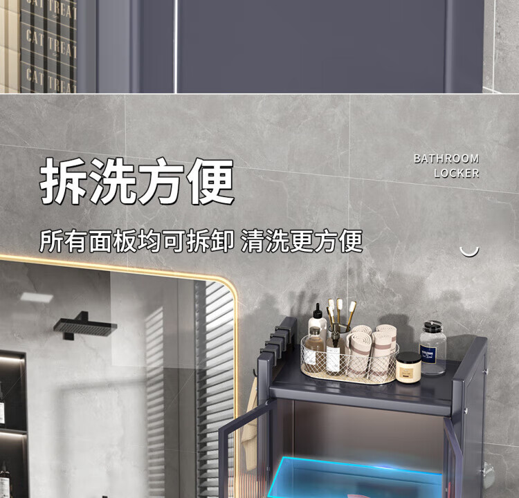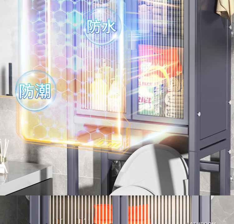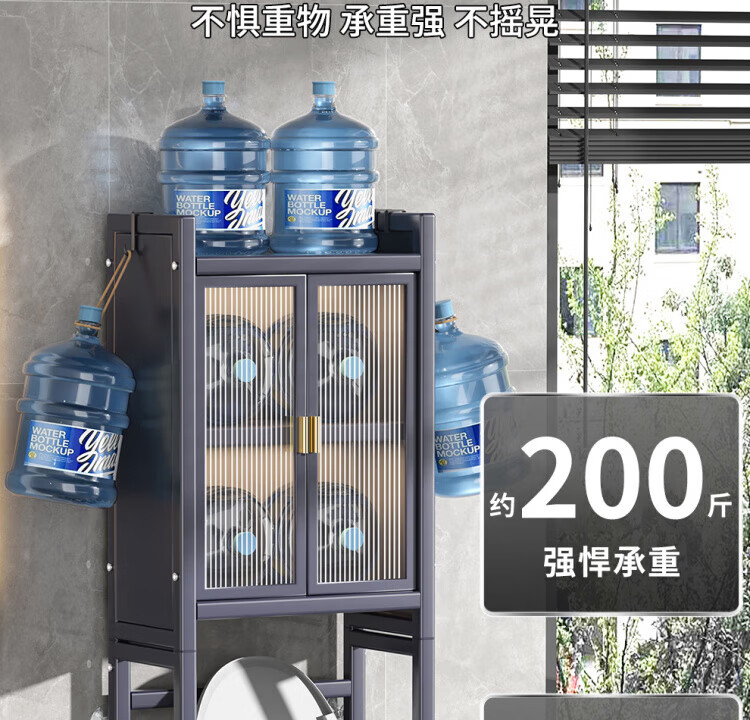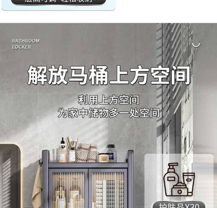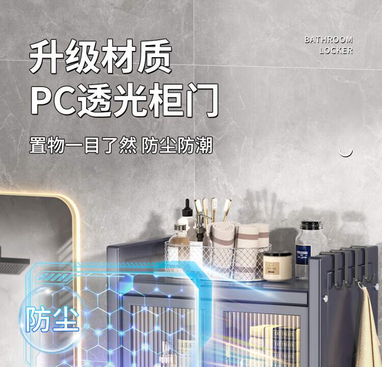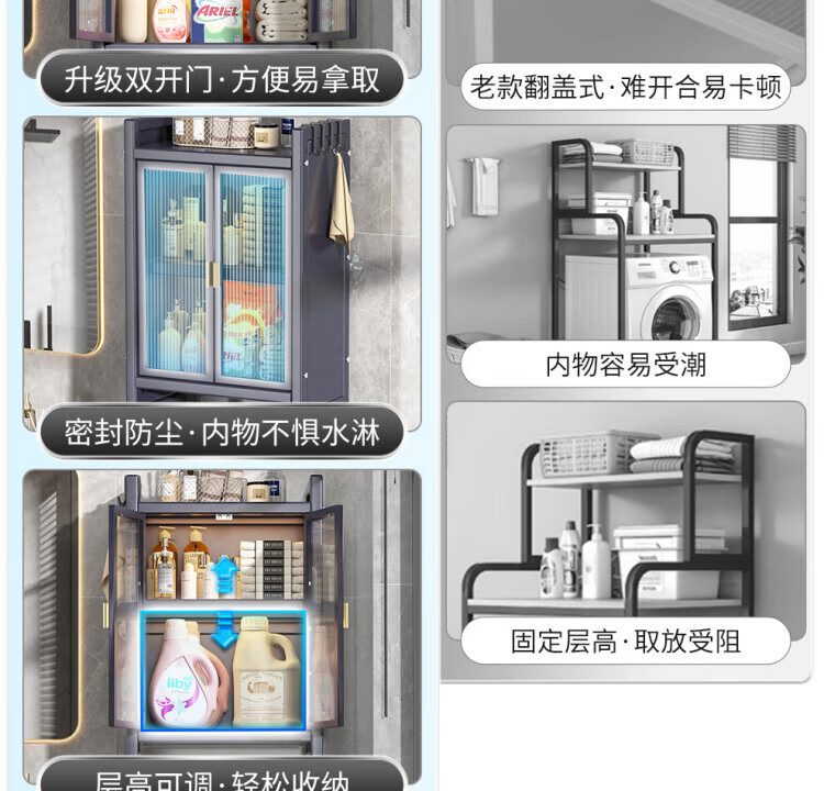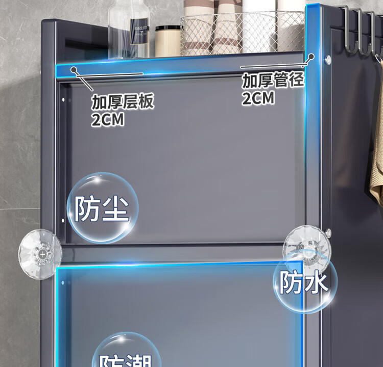 WCZ德国卫生间马桶置物架上方落地式洗衣机后面的空隙架子侧边厕所收 3层马桶柜双开门星空灰-特厚加粗