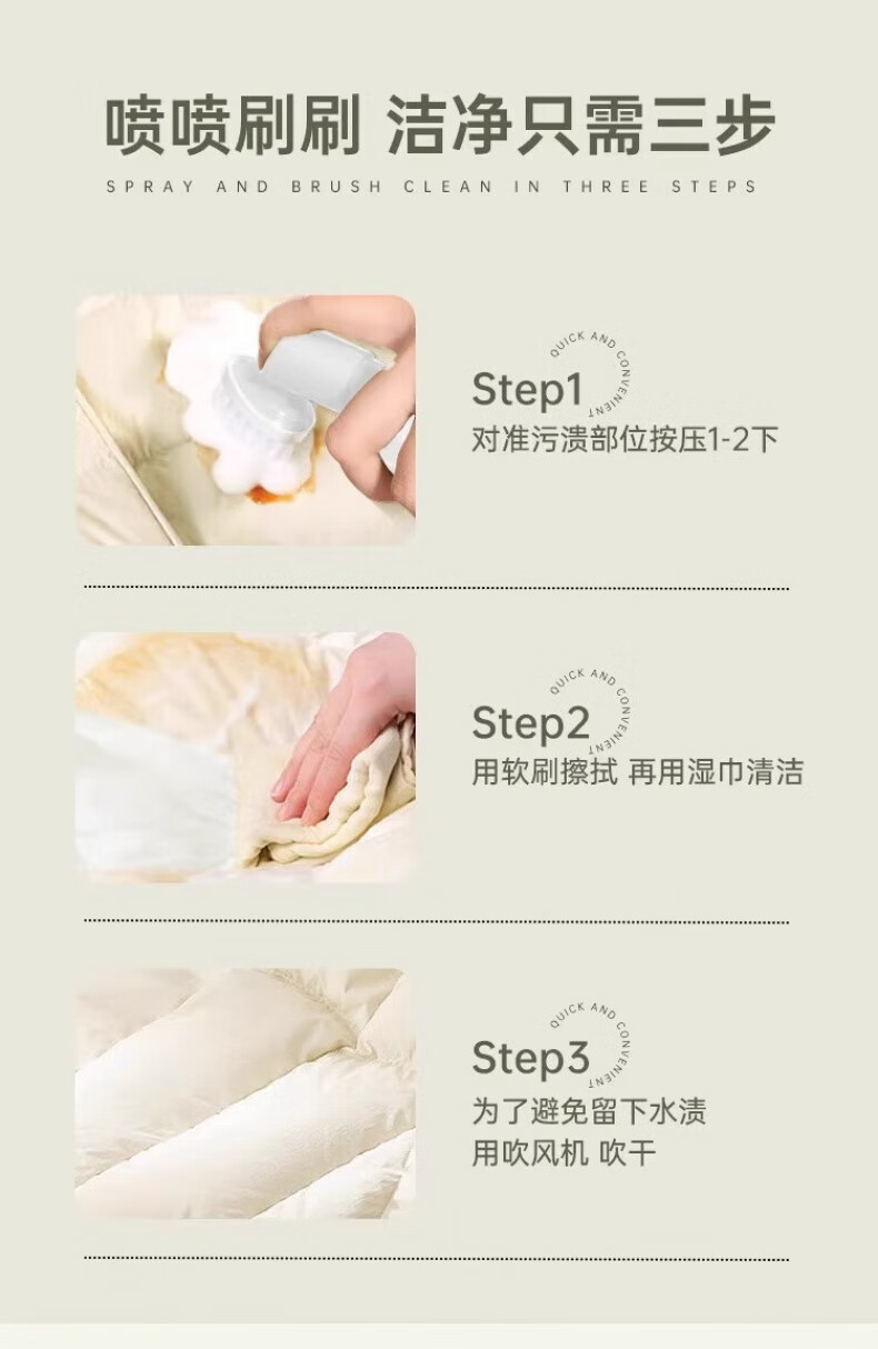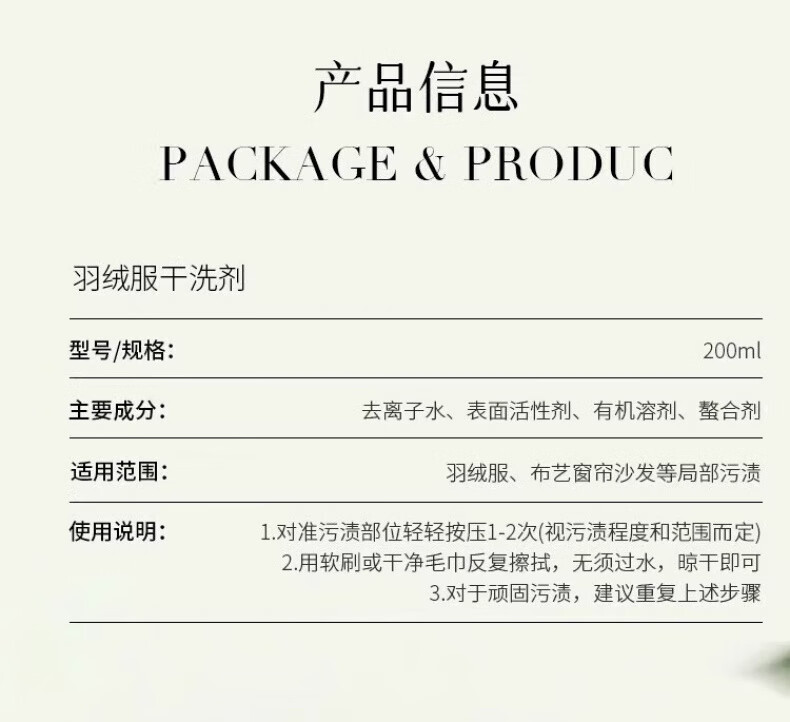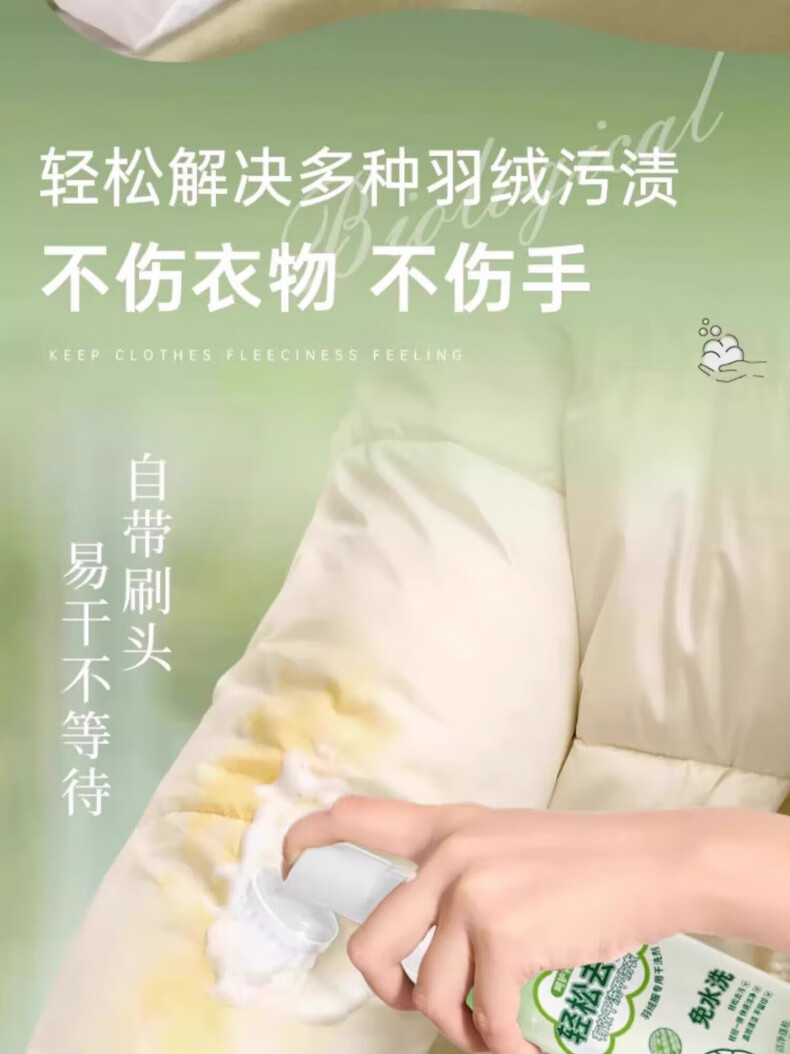 AILUKI日本洗羽绒服清洗剂免水洗清洁神器干洗剂免洗专用白色去污家用 1瓶装【免水洗高效清洁】