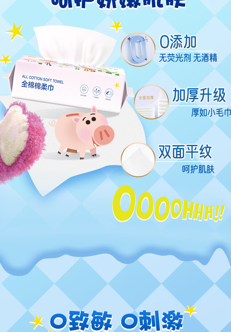 爱怡优洗脸巾 100%纯棉 一次性棉柔巾干湿两用擦脸巾毛巾洗面巾 【100%纯棉】50抽*8包