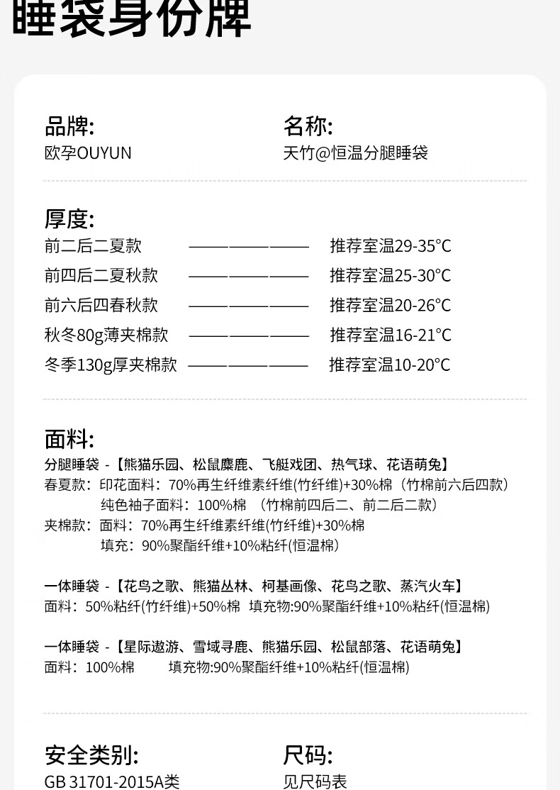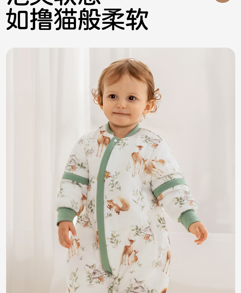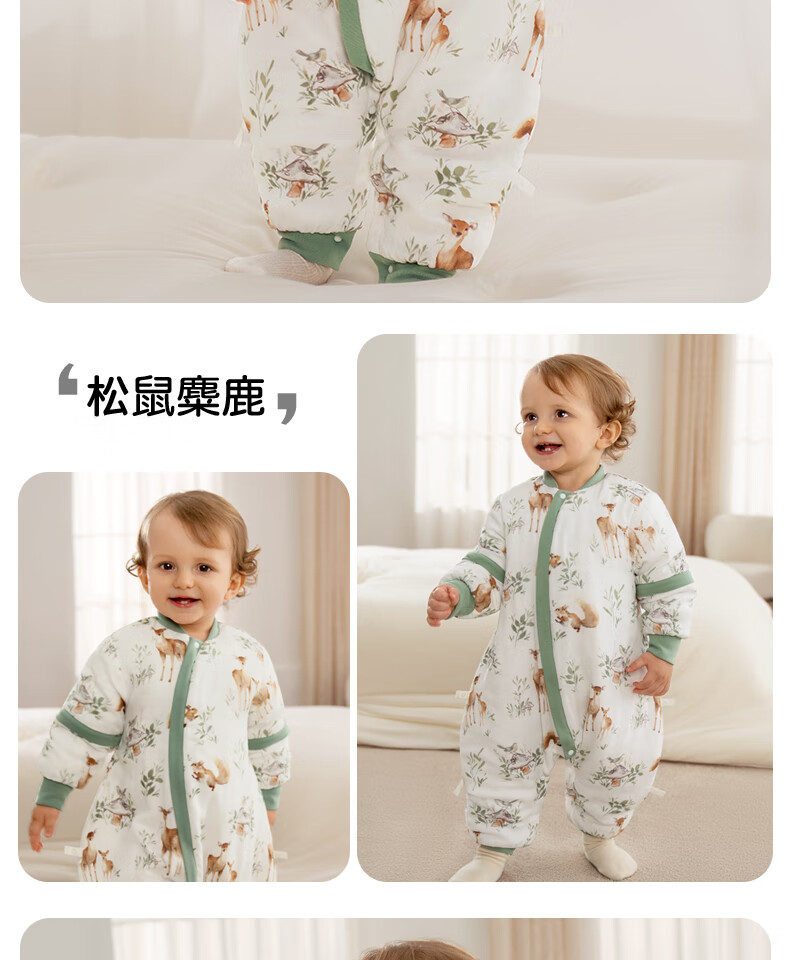 欧孕(OUYUN)婴儿分腿竹棉睡袋秋2024新款防踢被儿童宝宝睡袋全棉四季通用春季 松鼠麋鹿【厚夹棉】 【90码】推荐身高80-95cm