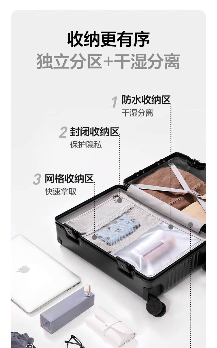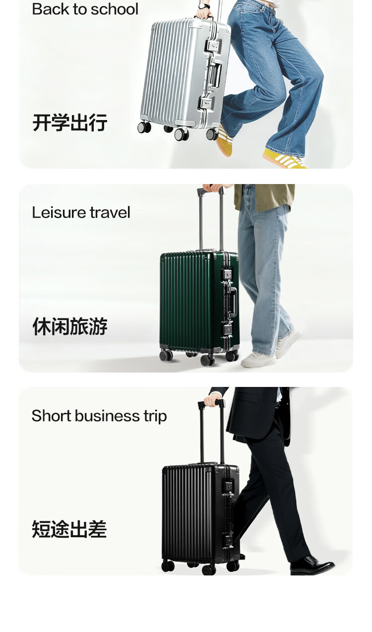 1号会员店OM逸行铝框旅行箱20英寸可登机行李箱行旅箱免托运拉杆箱雾月银