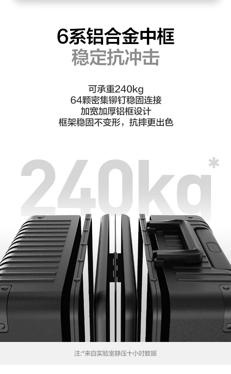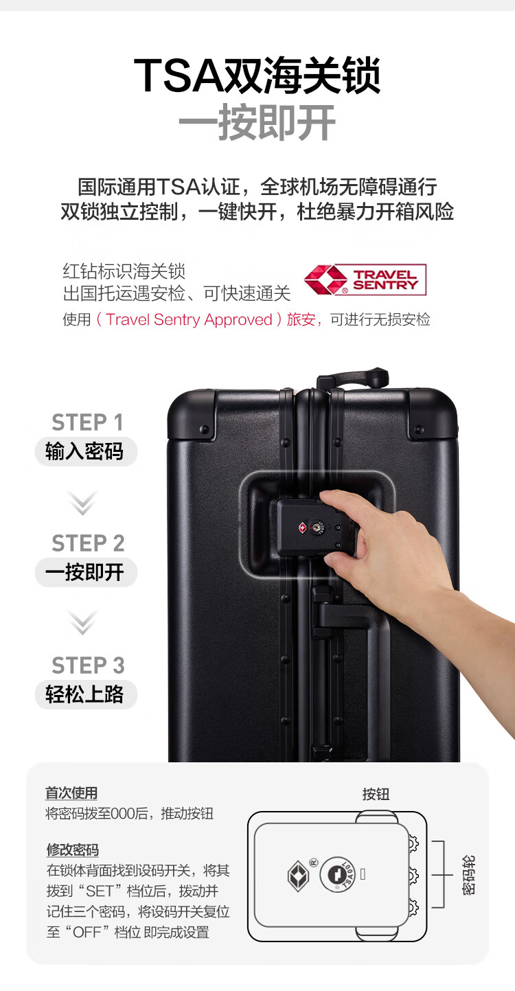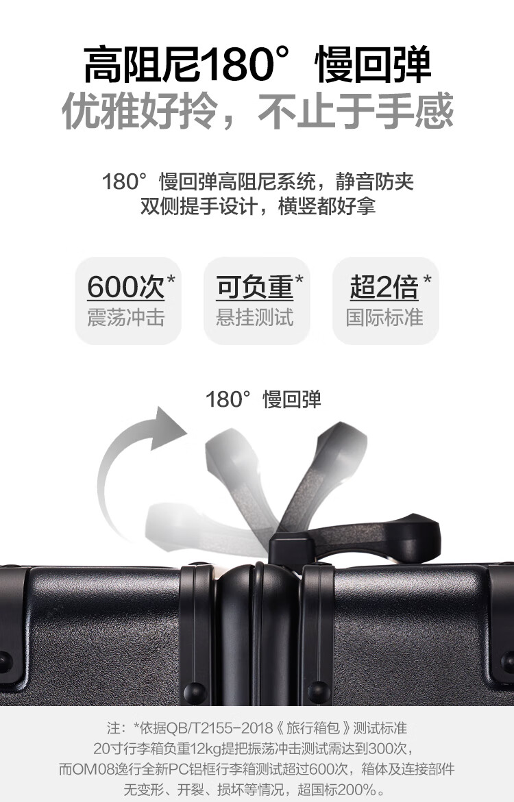1号会员店OM逸行铝框旅行箱20英寸可登机行李箱行旅密码免托运拉杆箱玄武黑