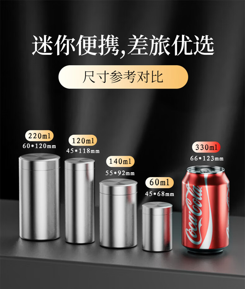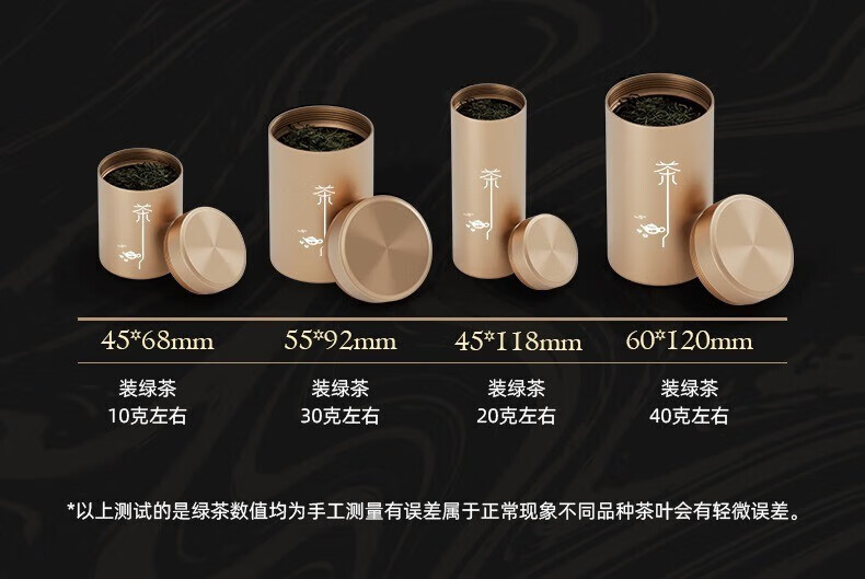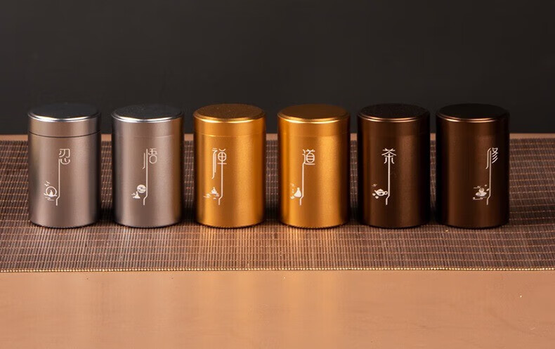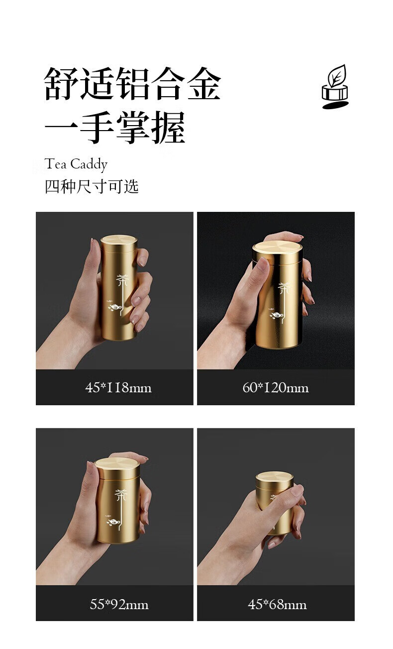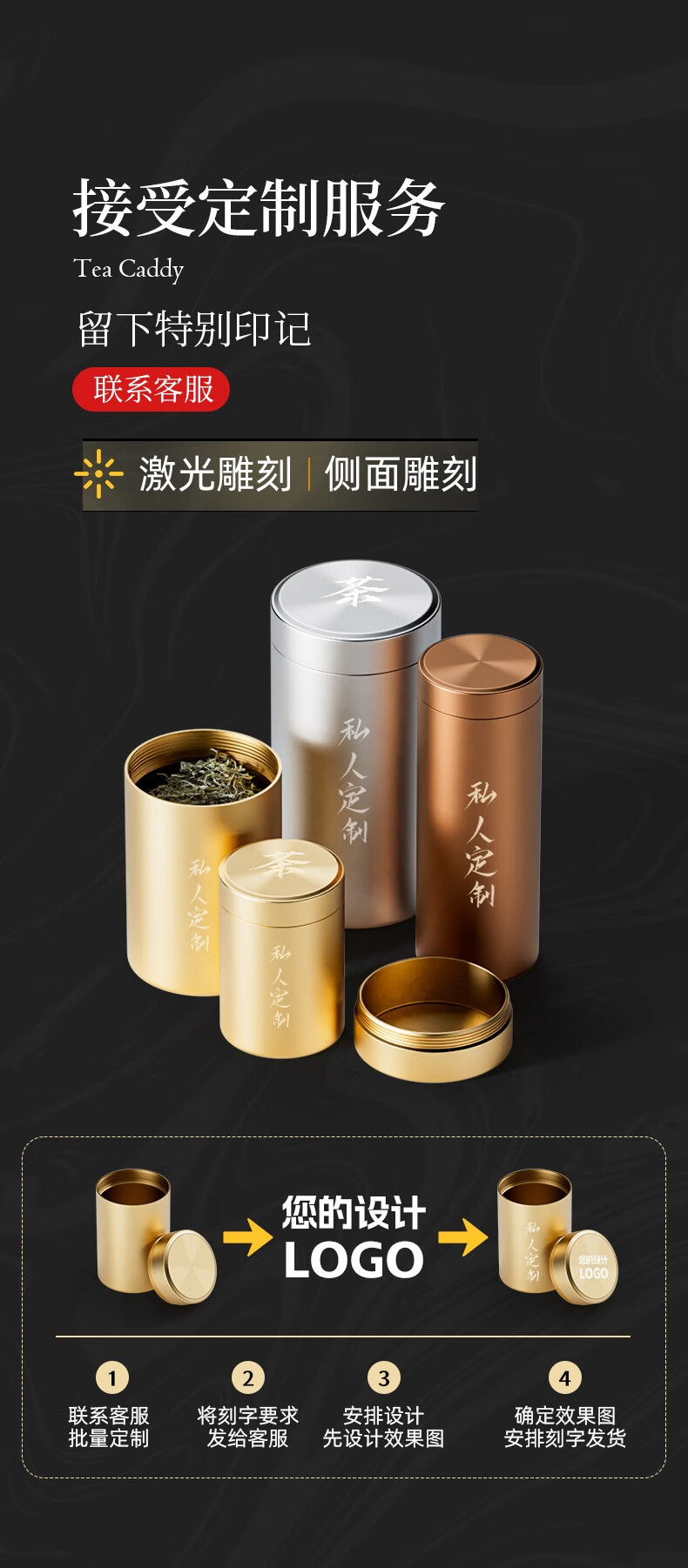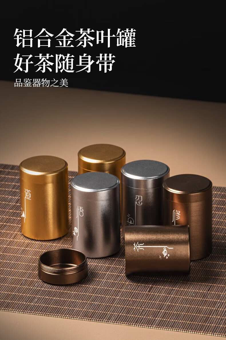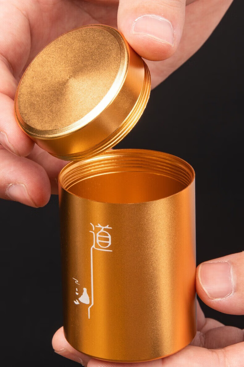 京适茶叶罐便携大号防潮密封罐高端旅行铝合金属装茶叶盒空盒收纳盒 茶【土豪金】小号 60ml
