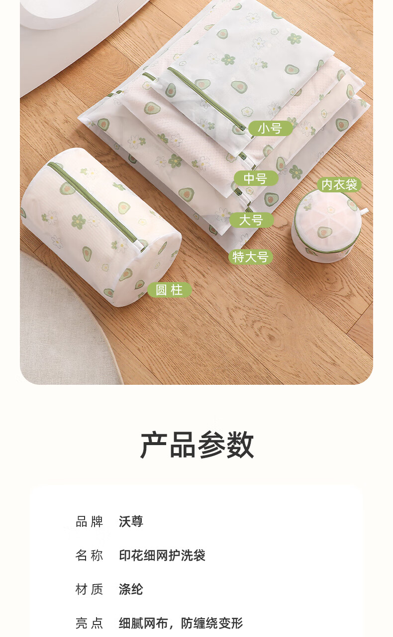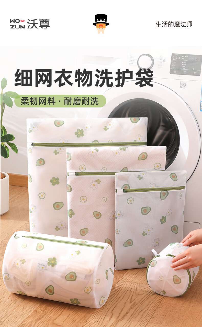 沃尊洗衣袋洗衣机专用防变形羊毛衫专用护洗袋毛衣机洗护衣洗衣服网袋 牛油果-中号2个装