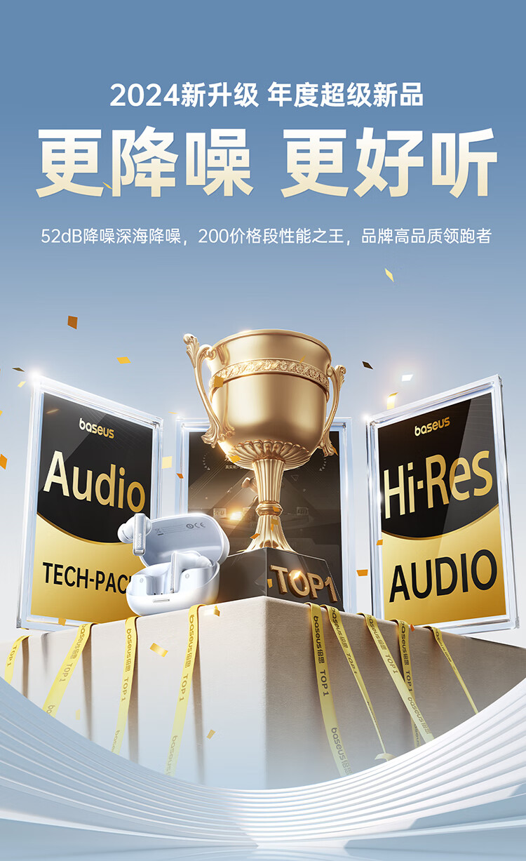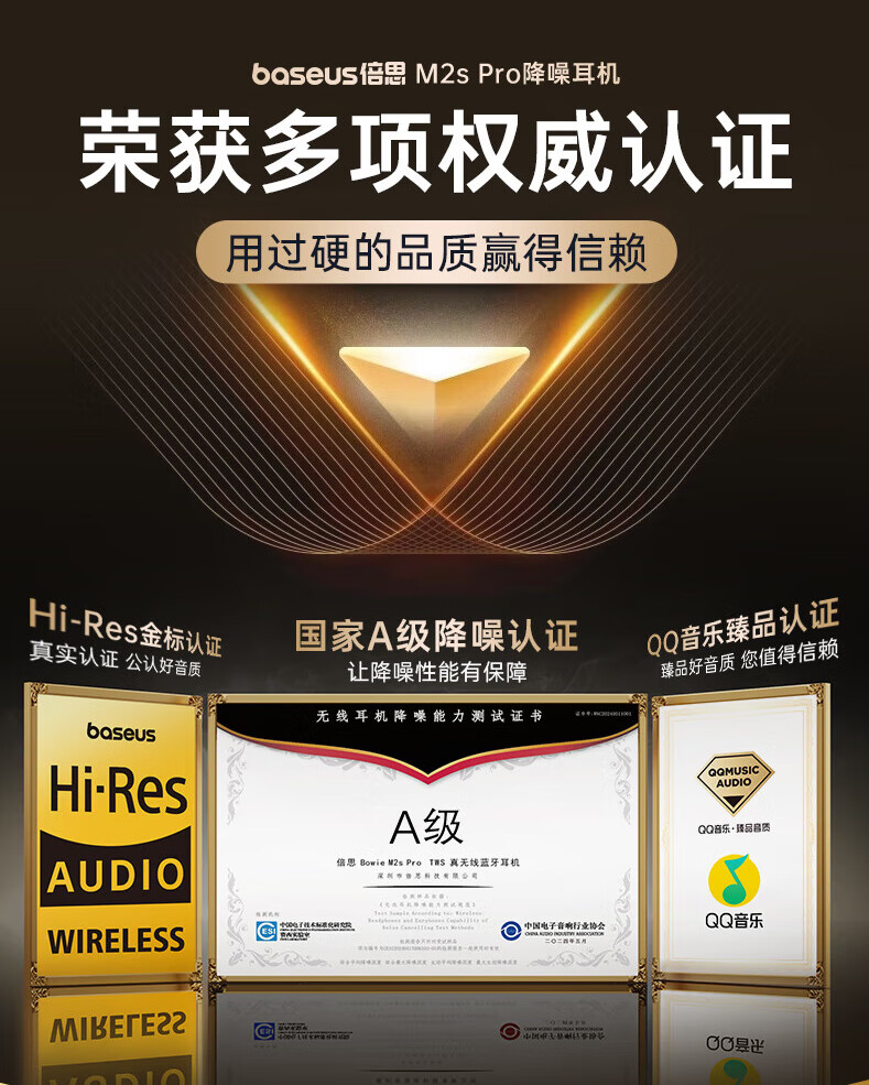 倍思M2s Pro 入耳式蓝牙耳机 -52dB主动降噪蓝牙耳机金标认证35h续航 适用于苹果华为vivo荣耀手机礼物