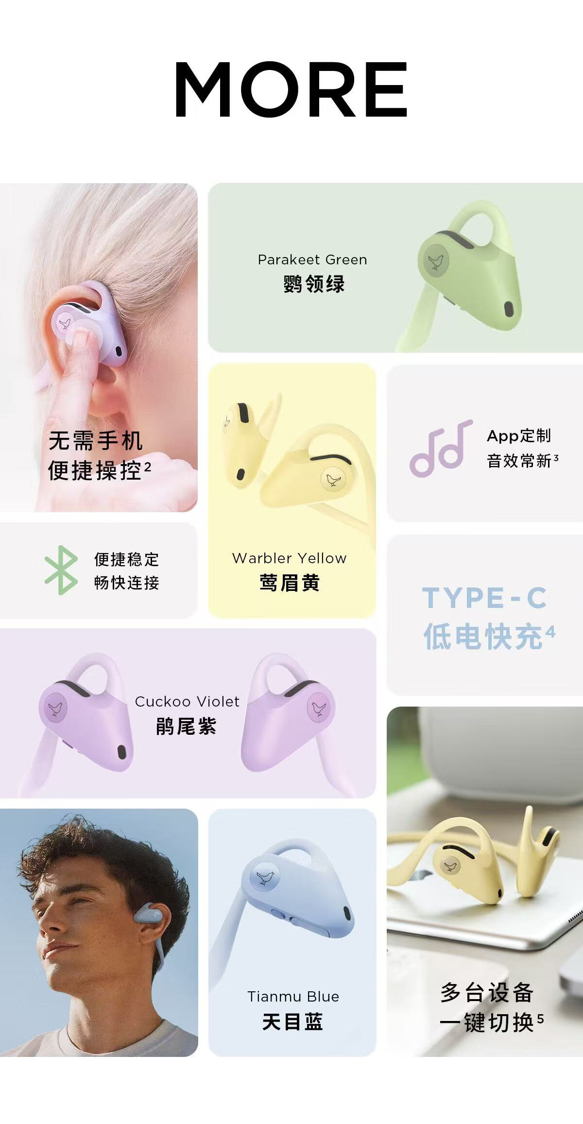 LIBRATONE小鸟UP耳机开放式蓝牙耳机不入耳后挂式跑步运动耳挂式轻便骑行无线耳机适用于苹果华为 鹦领绿 标配
