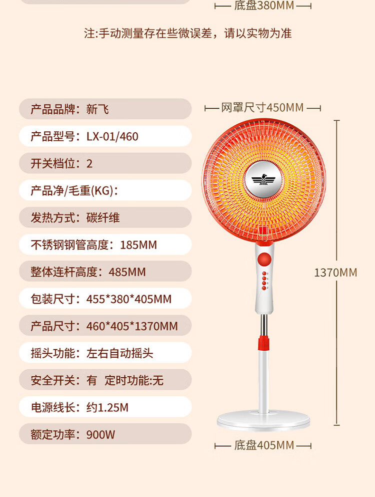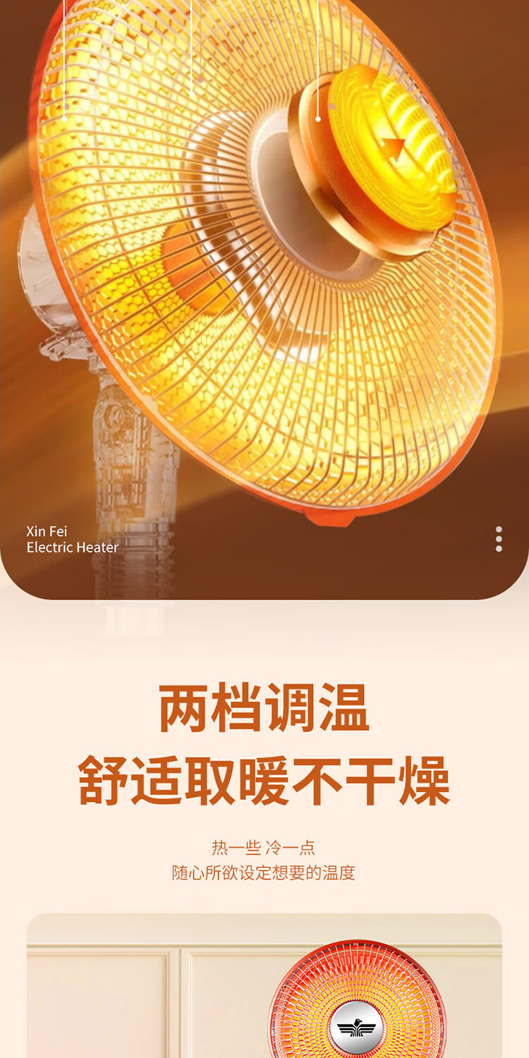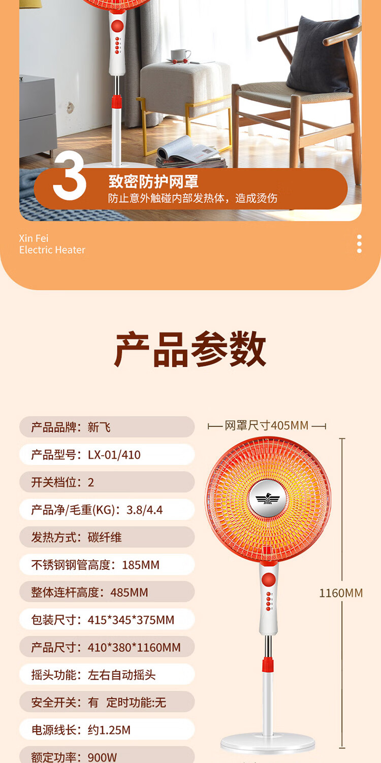 新飞落地小太阳取暖器家用立式电暖气办公室烤火炉卧室取暖扇节能省电落地暖气扇碳纤维加热 超大号顶配款【可摇头 加重底板 加强高热+延长线】 评价晒图返10元
