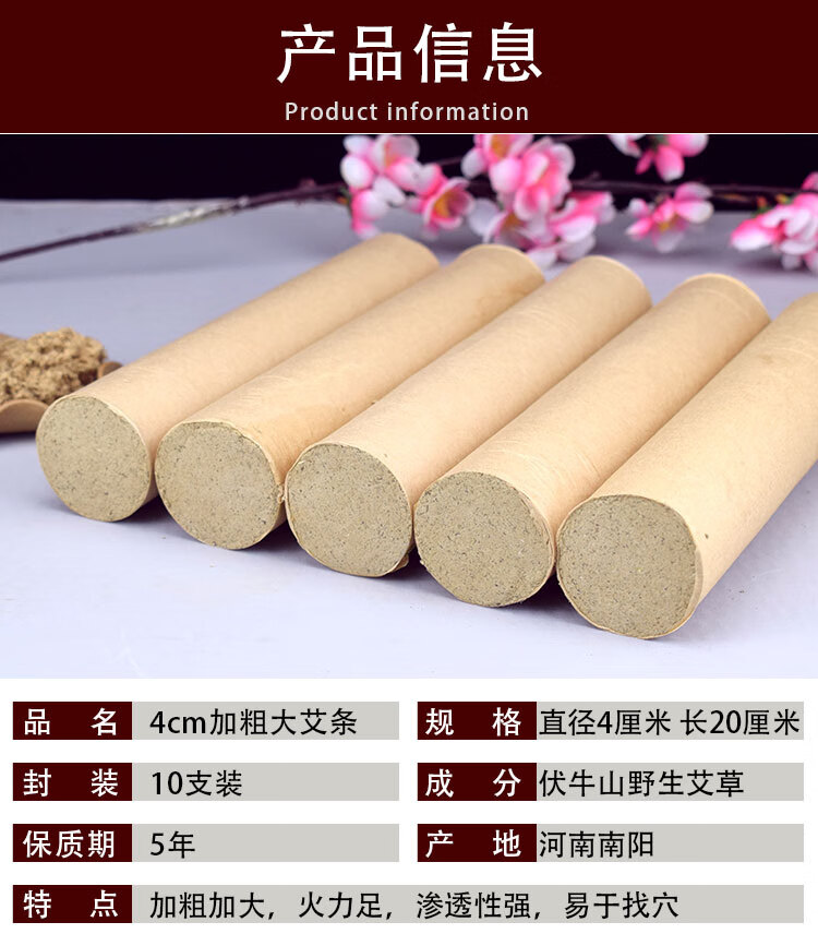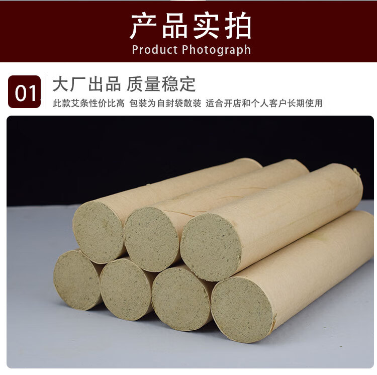 旭艾堂艾条雷火灸艾灸馆常用艾草艾灸条艾柱艾绒条陈艾条家用悬灸条艾条 直径4cm长20cm(10支简装)