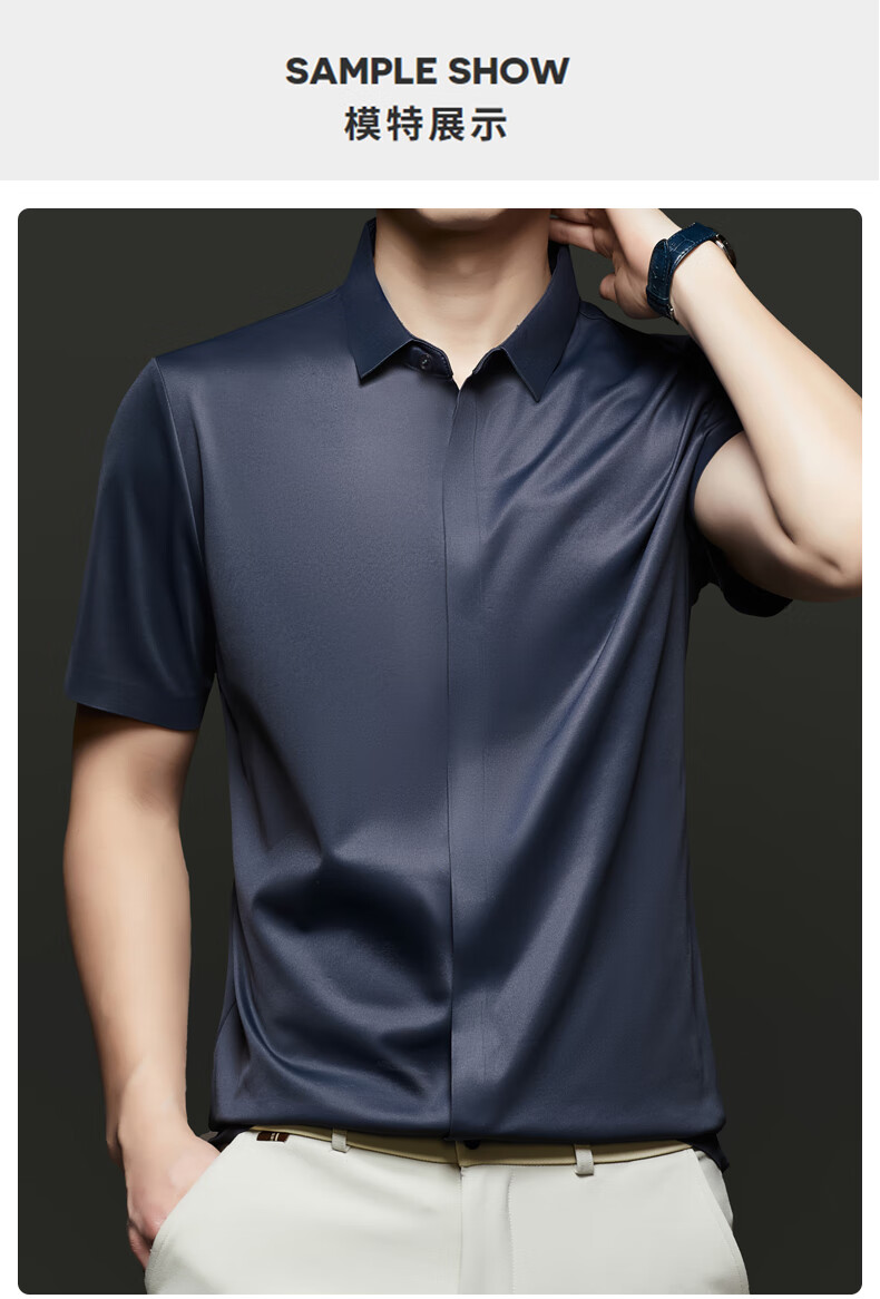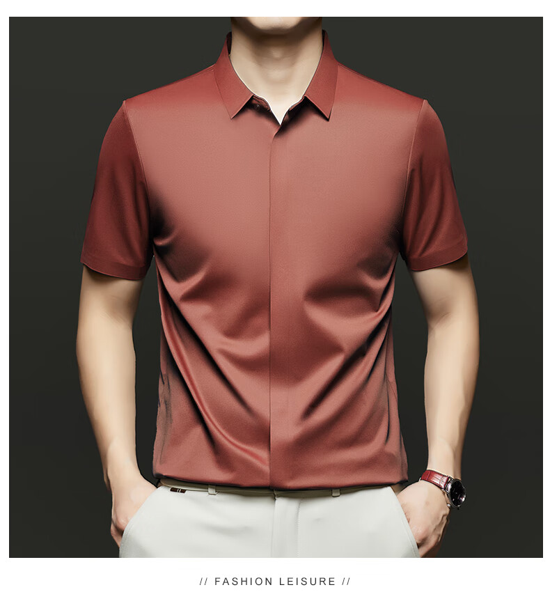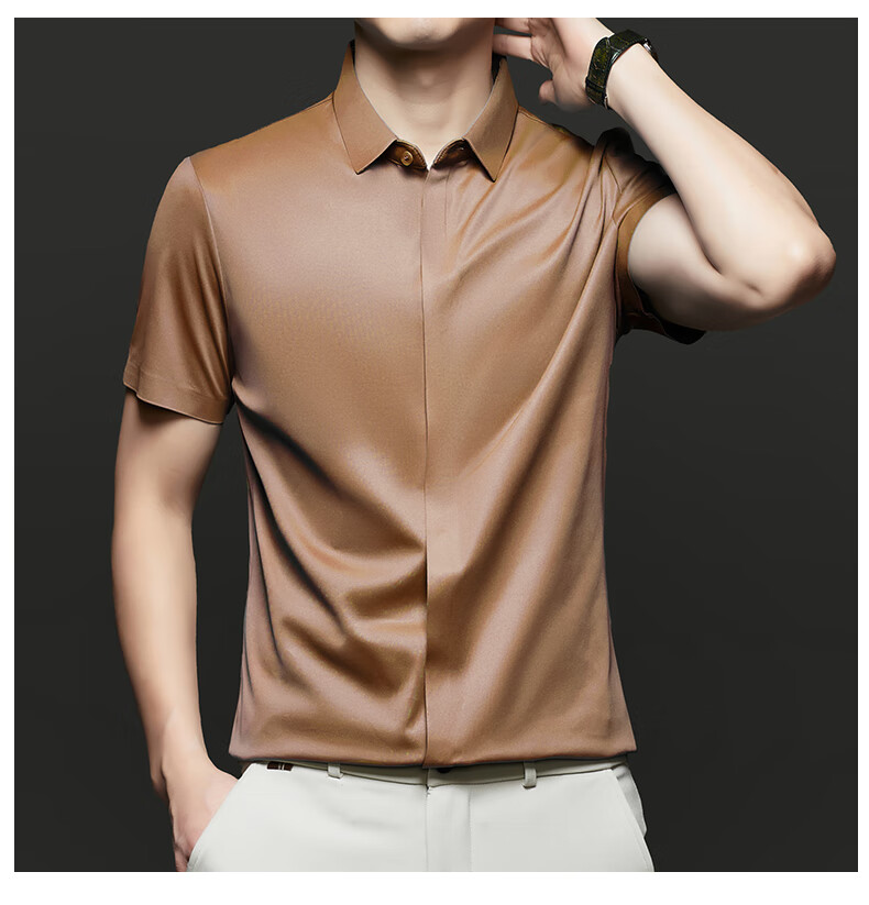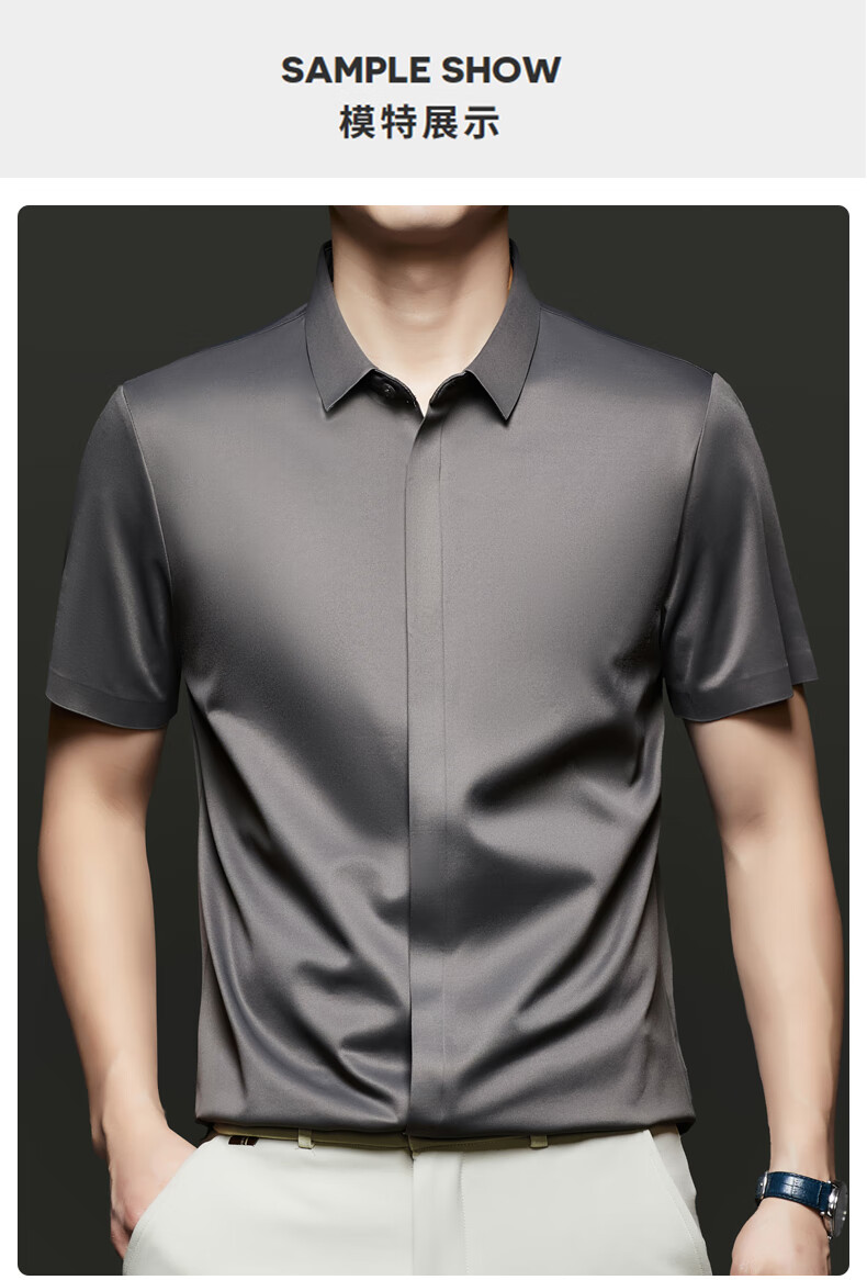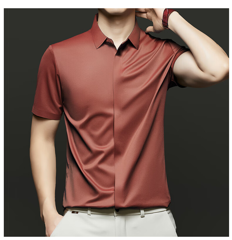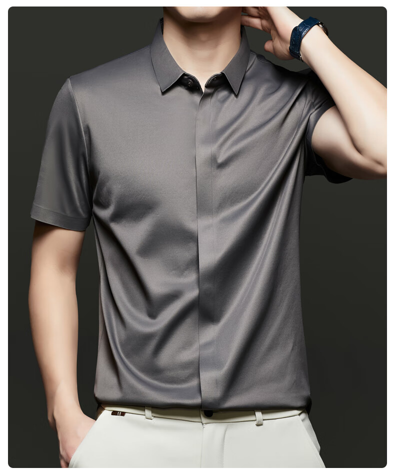 利郎夏季新款桑蚕丝男士衬衫商务轻奢短袖衬衣抗皱无痕高端男上衣 白色 4XL 130