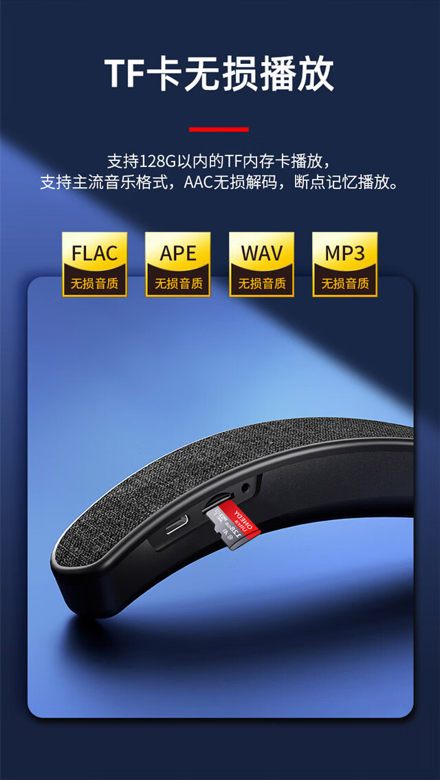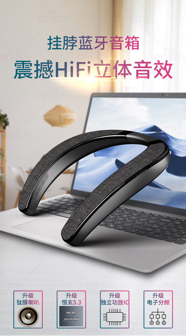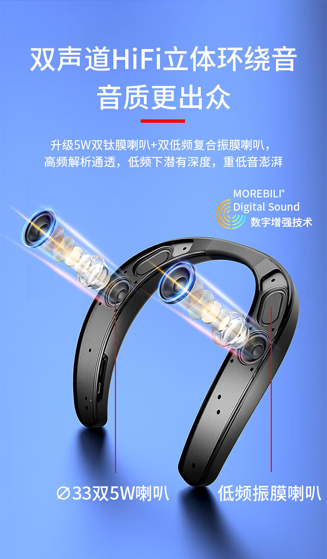 万笛【2025新升级】挂脖式无线蓝牙音箱重低音炮OWS外放式不入耳机可插卡hifi立体声音响降噪超清通话 经典版【15h播放+HiFi立体声】