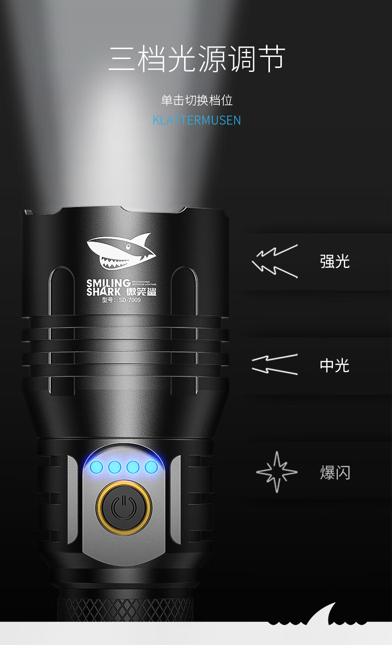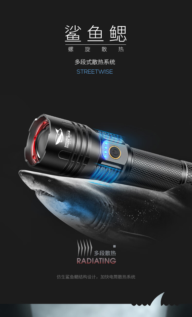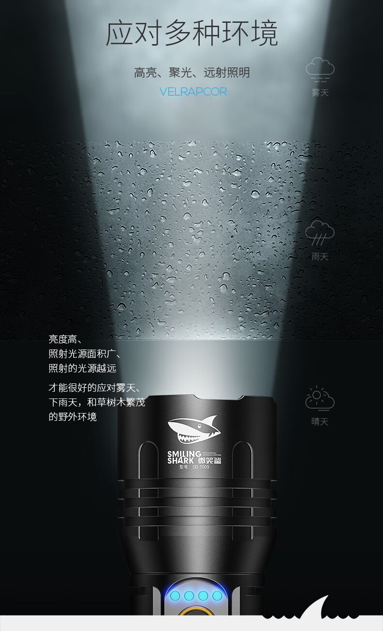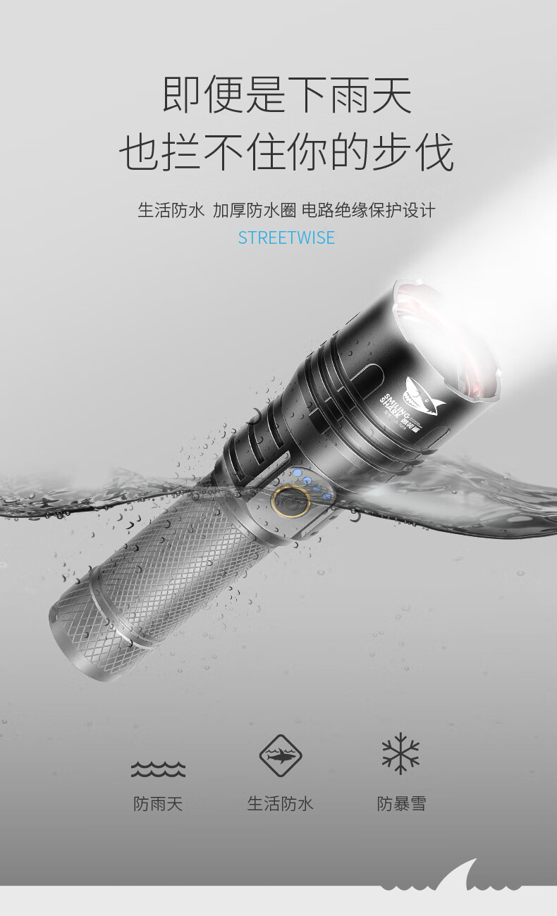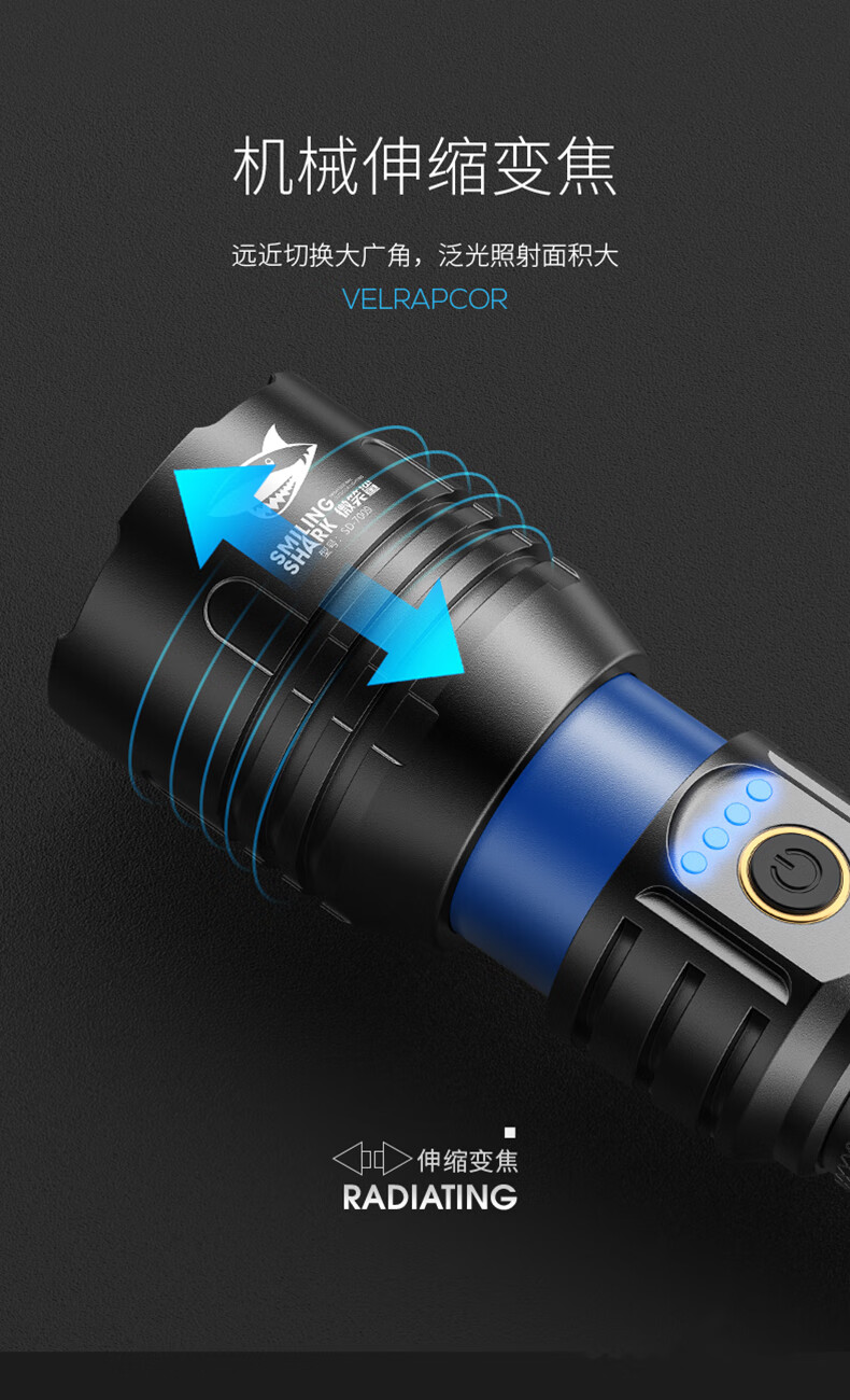 微笑鲨手电筒手电超长续航充电LED大功率家用强光超亮户外照明变焦远射 【黑耀之星】-2电