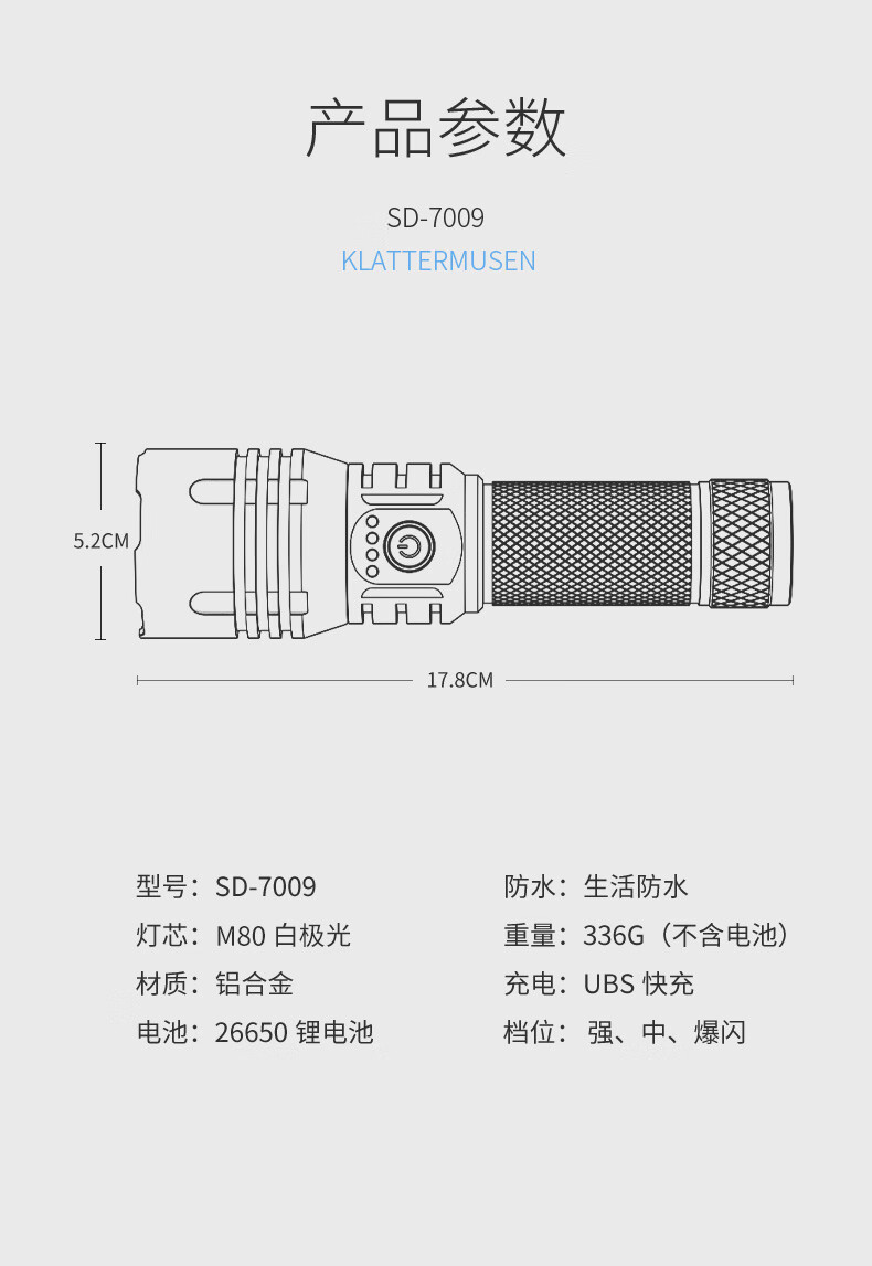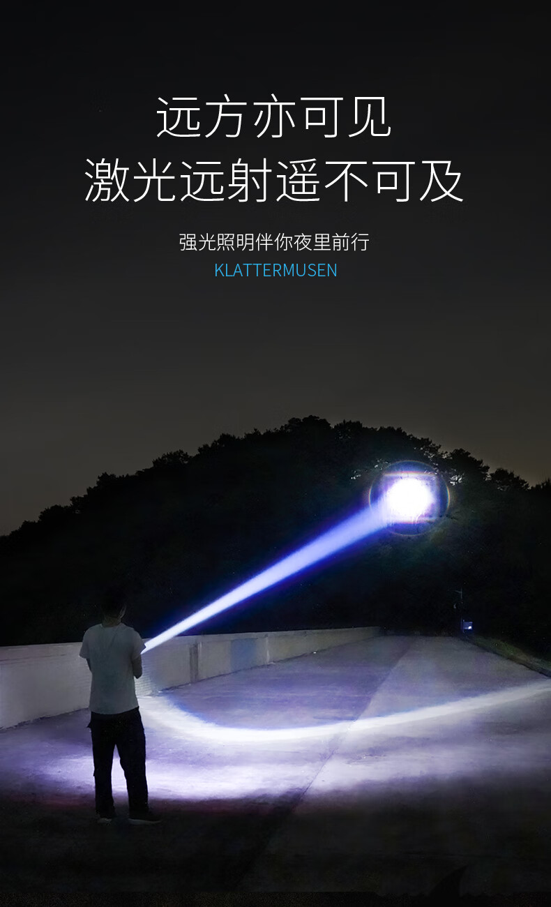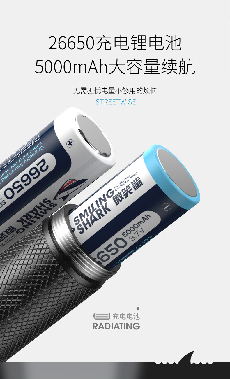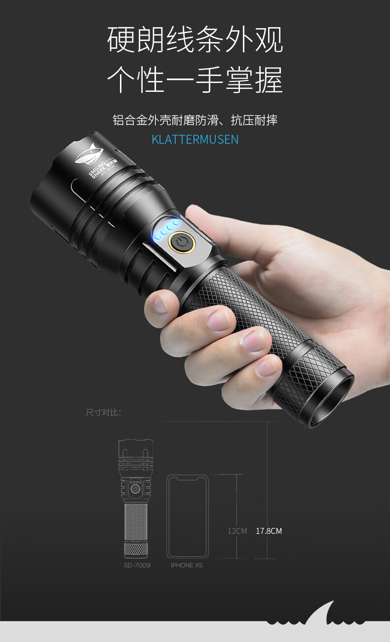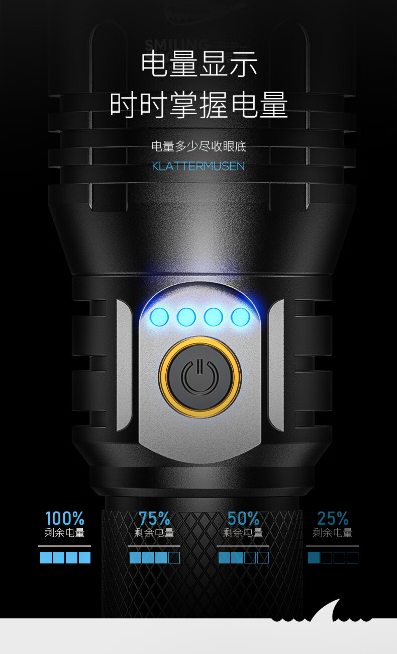 微笑鲨手电筒手电超长续航充电LED大功率家用强光超亮户外照明变焦远射 【黑耀之星】-2电