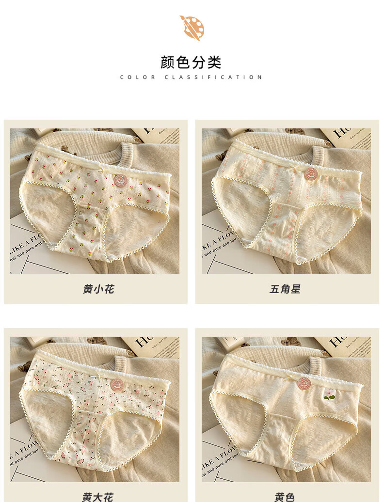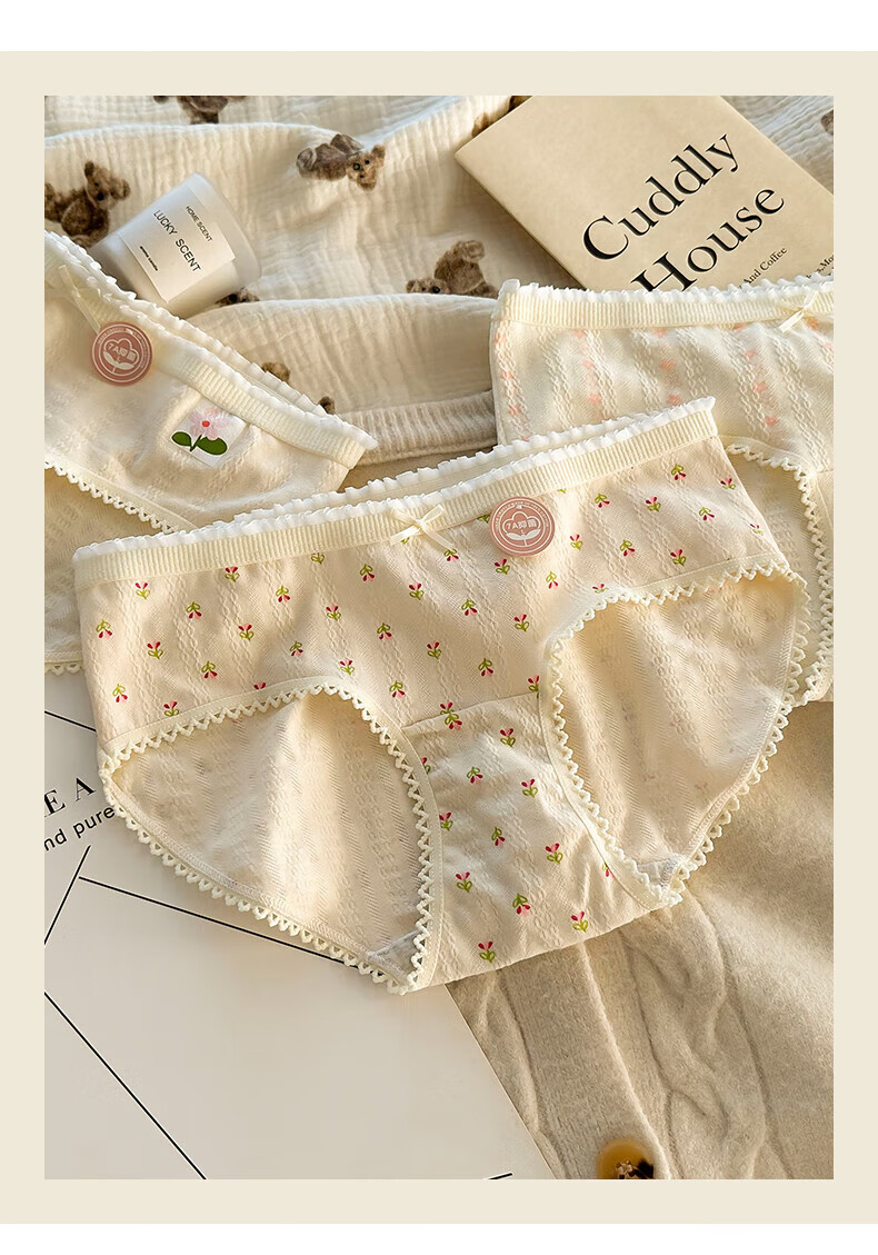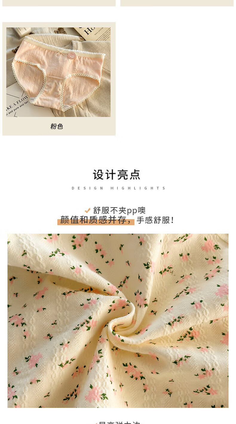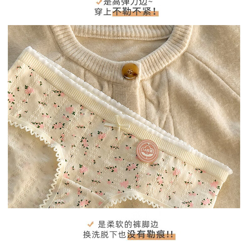 雅鹿纯棉花朵女士内裤夏季新款透气三角提臀式抗菌底裤(4条装) 2小花+2五角星+2大花+1粉色合 7条 L (95-120斤)