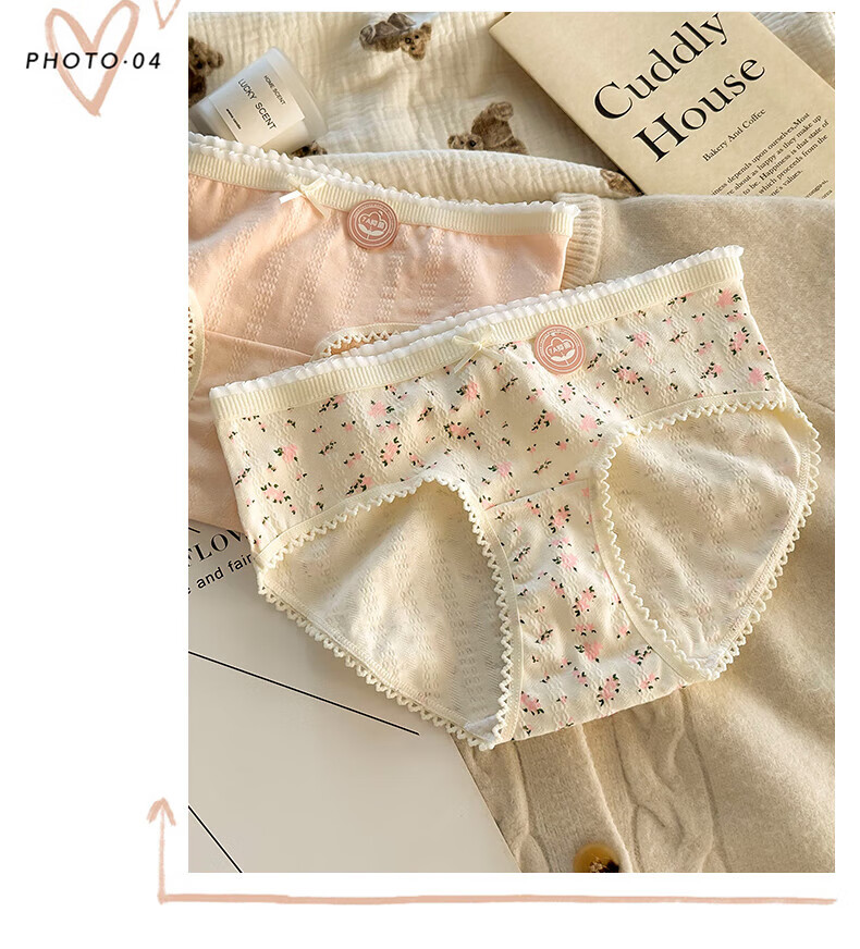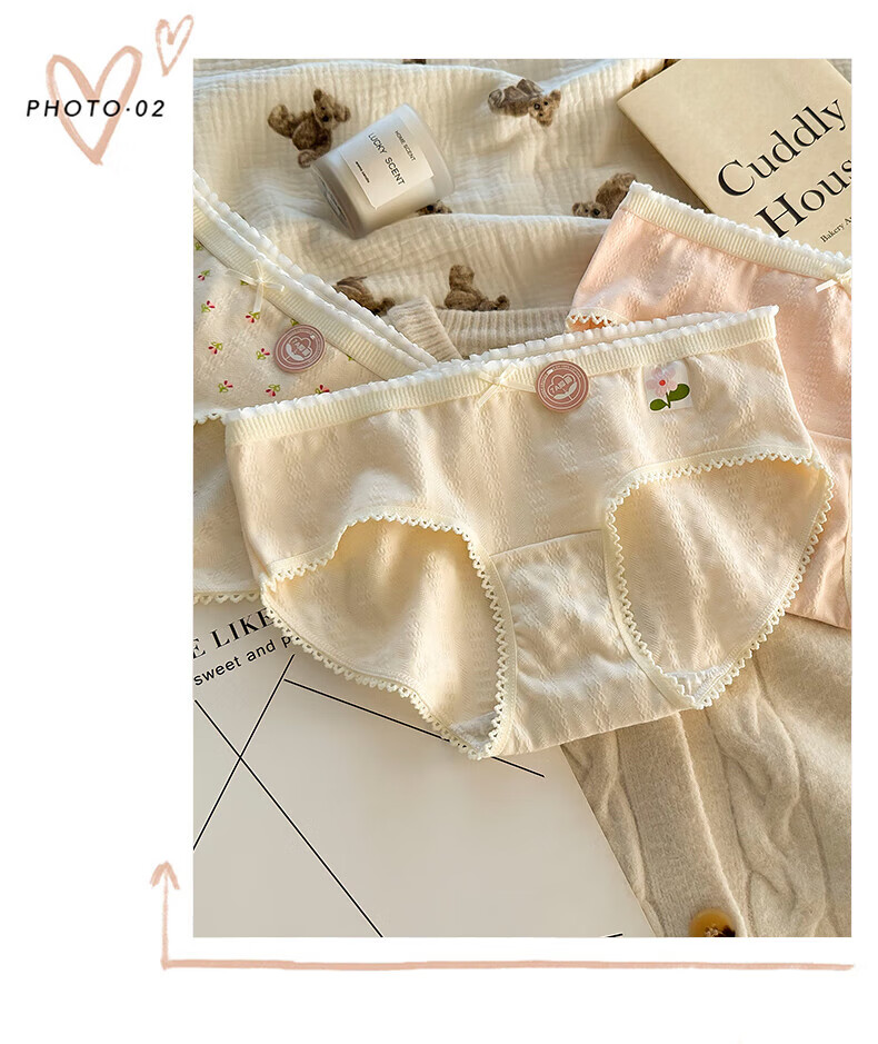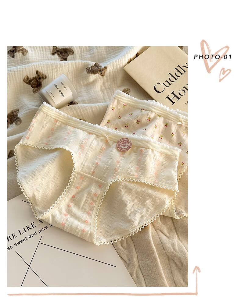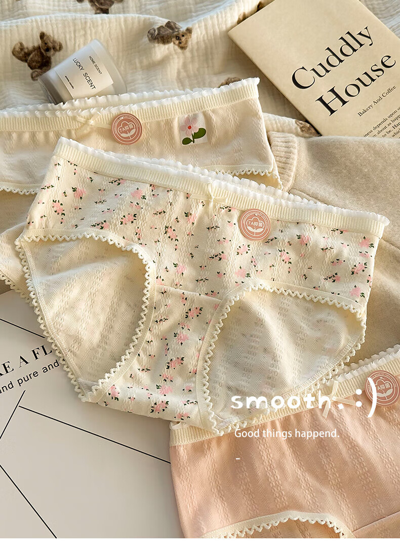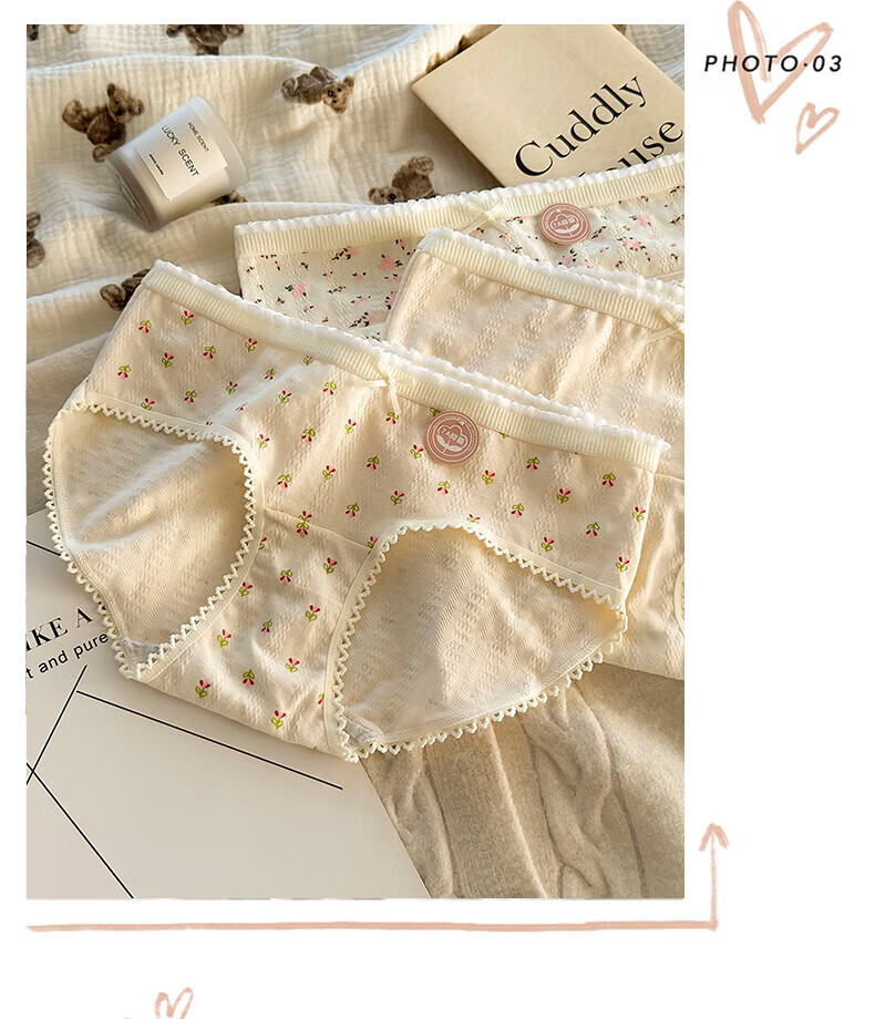 雅鹿纯棉花朵女士内裤夏季新款透气三角提臀式抗菌底裤(4条装) 2小花+2五角星+2大花+1粉色合 7条 L (95-120斤)