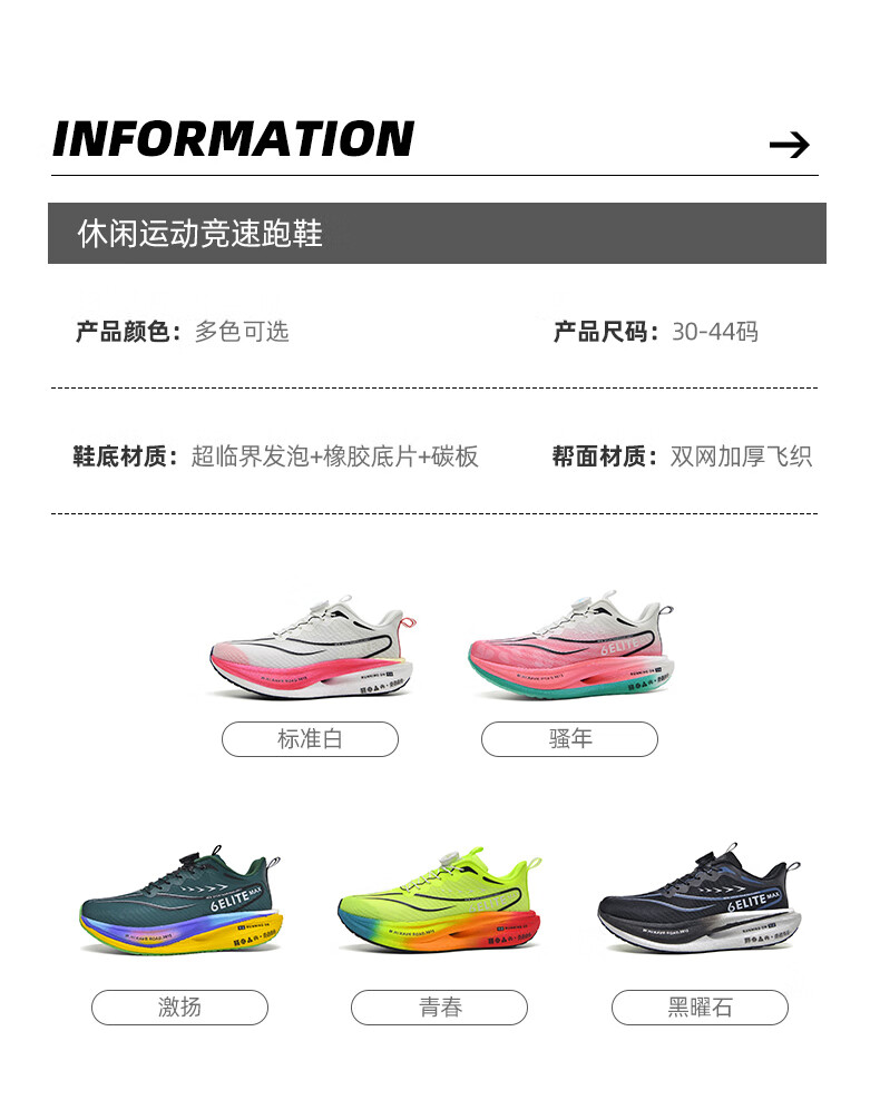 里奇.乔丹 RICKY JORDAN飞电6E碳板跑鞋男士专业竞速黑色运动鞋儿童新款赤兔pro8跑步鞋男 标准白秋冬双网G65【下单送蓝牙运动耳机】 42