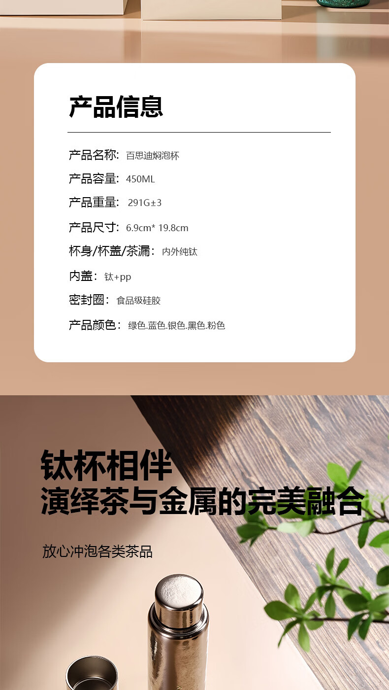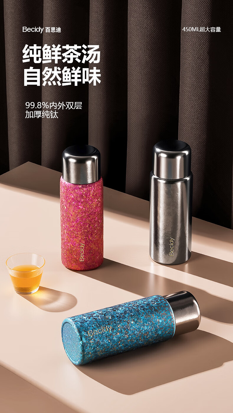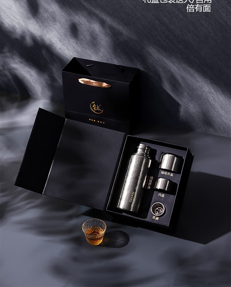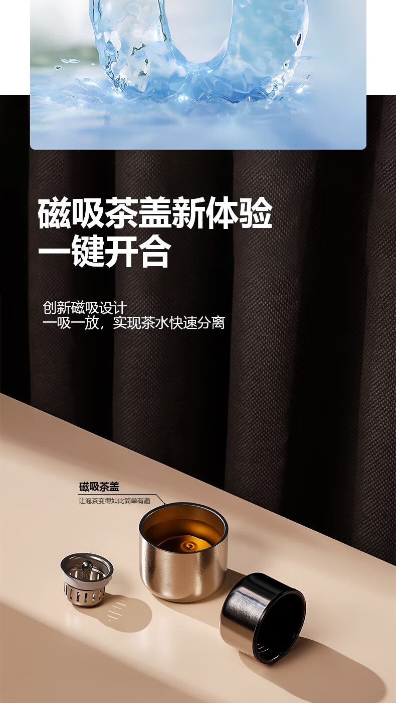 纯钛保温杯磁吸双杯盖焖泡杯便携式泡茶杯高颜值礼物葫芦杯礼物 钛镜黑 338ml