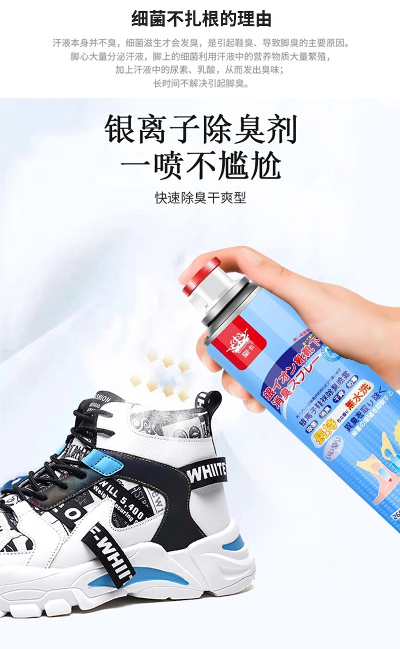 皇卡鞋子除臭杀菌喷雾除臭喷雾鞋子鞋袜除臭喷剂银离子鞋袜除臭喷剂 鞋袜除臭喷雾-3瓶