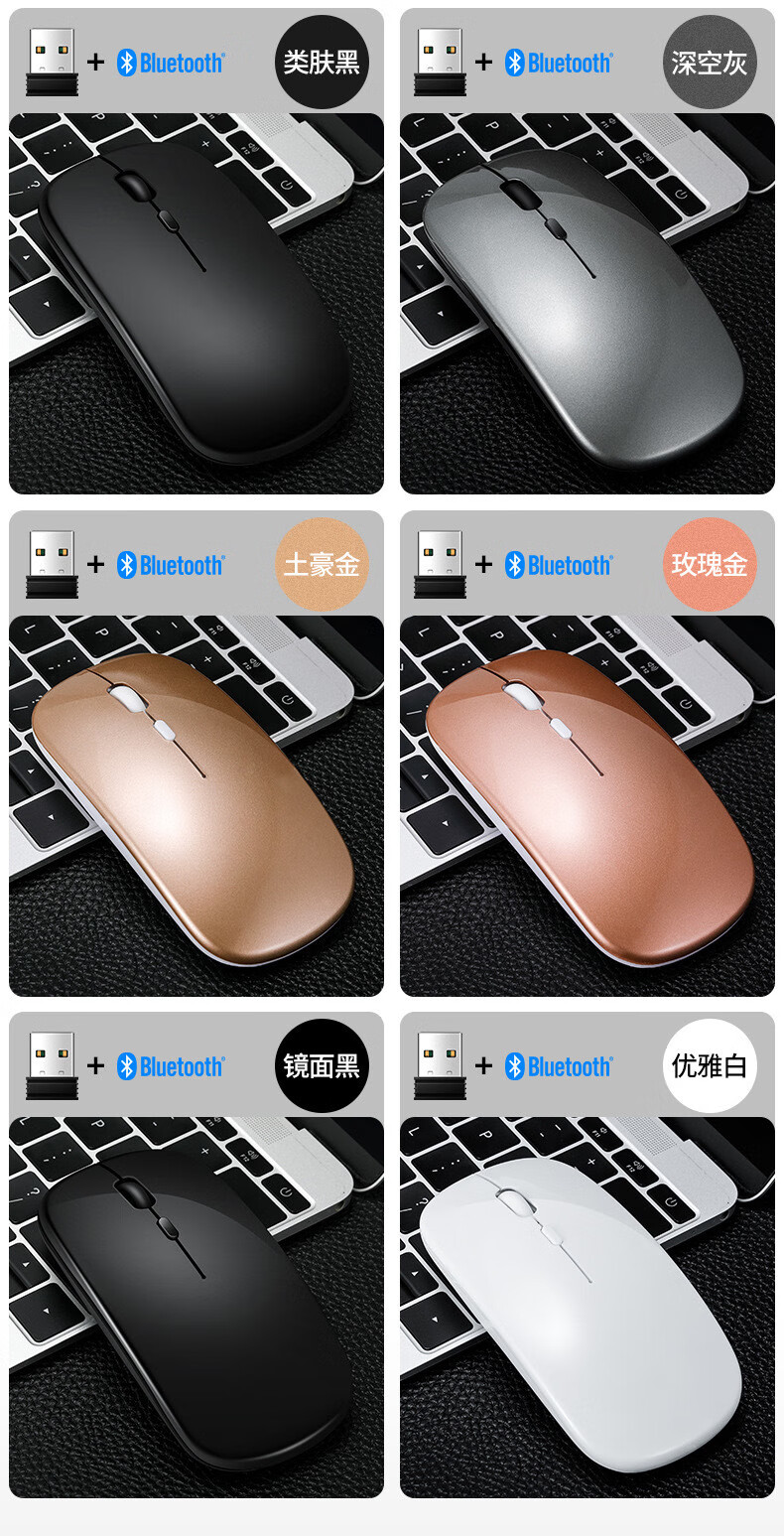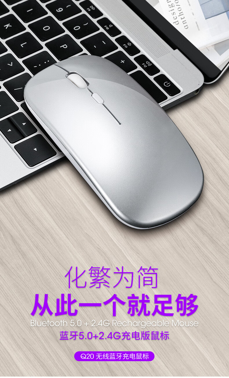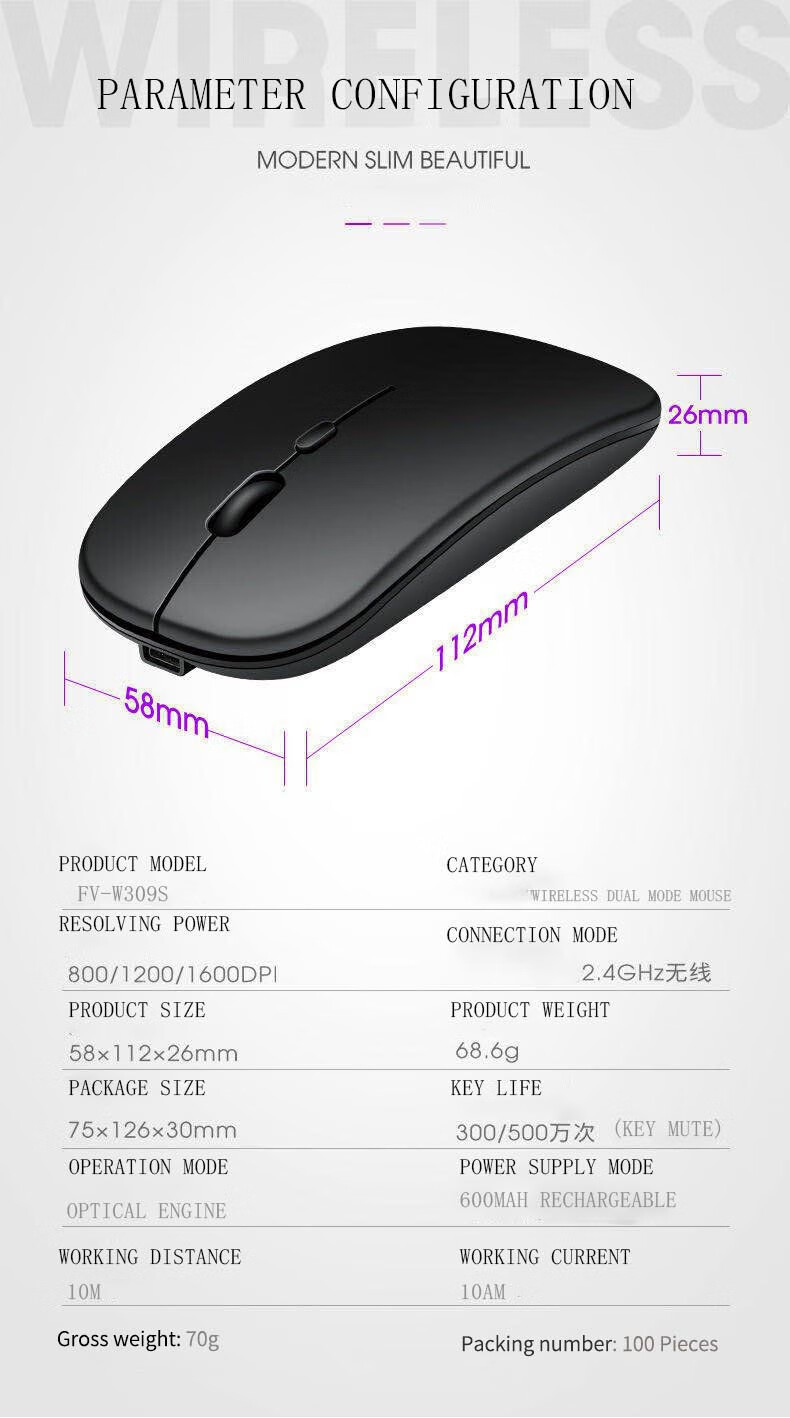 FOREV无线蓝牙鼠标双模FVW309S充电蓝牙办公静音鼠标适用于HP惠普 充电2.4G无线黑色