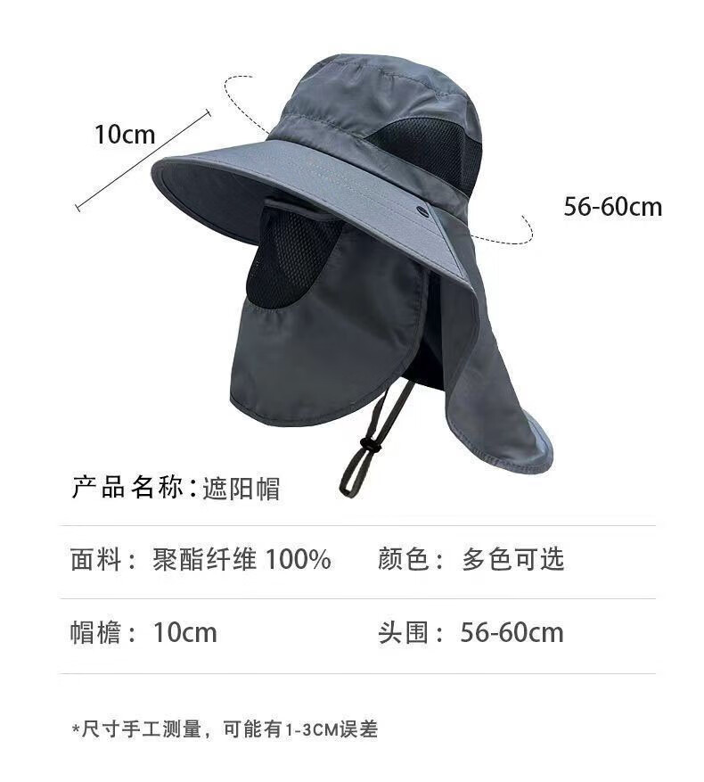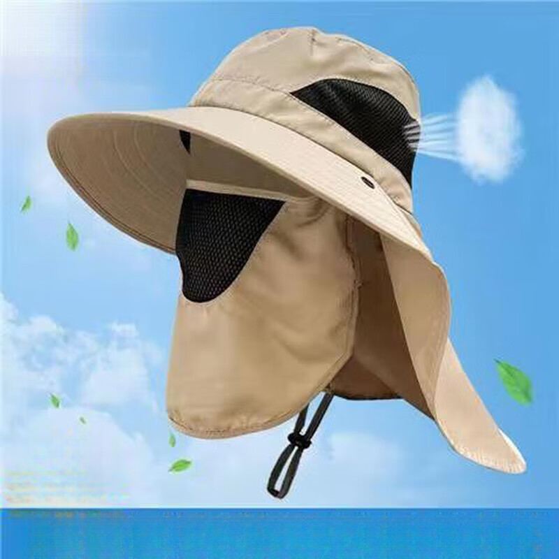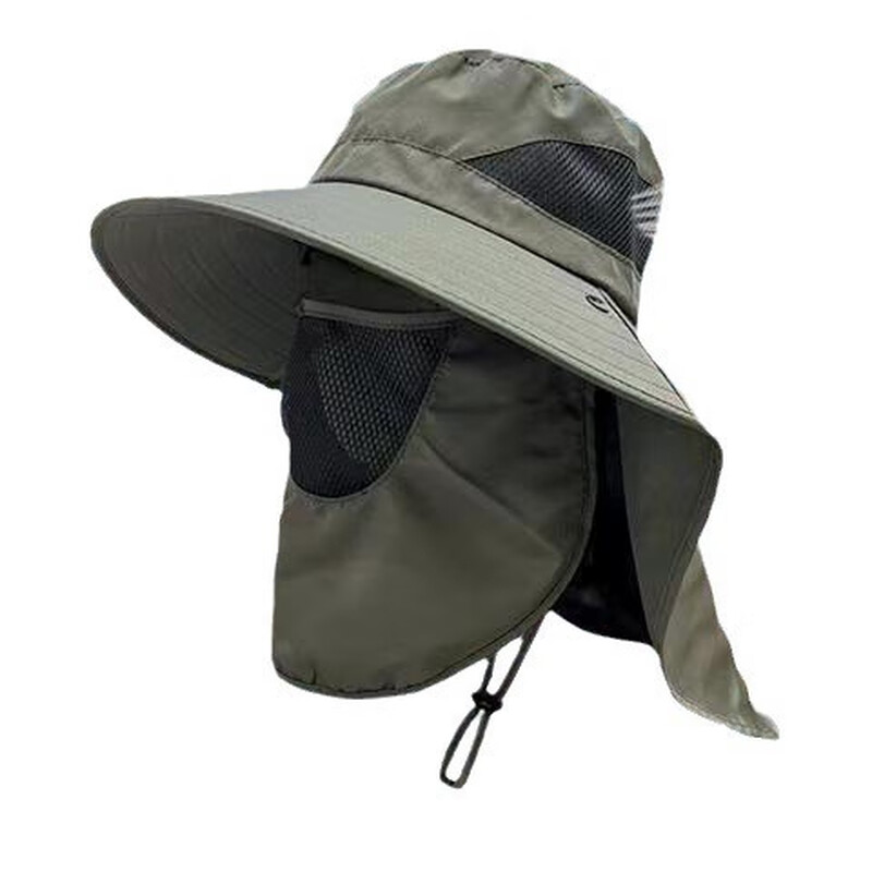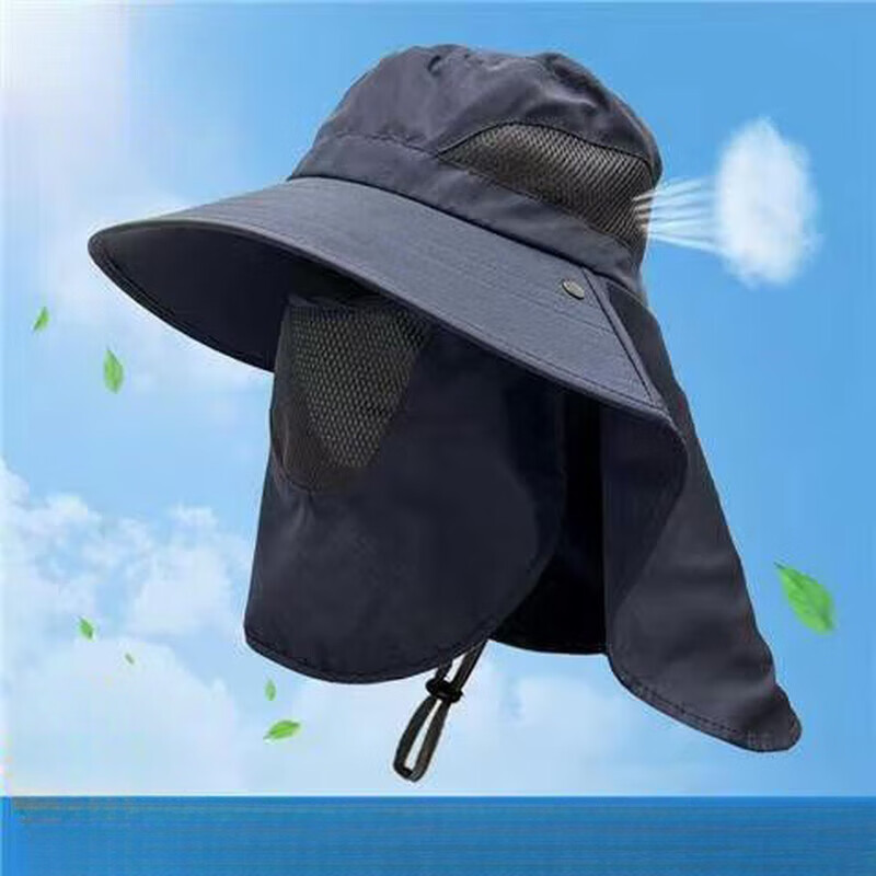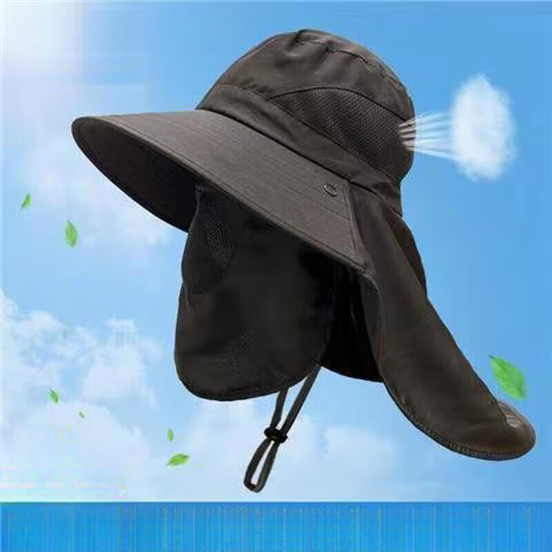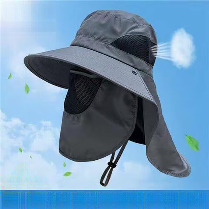 【优选好物】户外遮脸护颈防晒帽男士夏季可拆卸大檐遮阳钓鱼帽登 男士披肩深灰色 均码