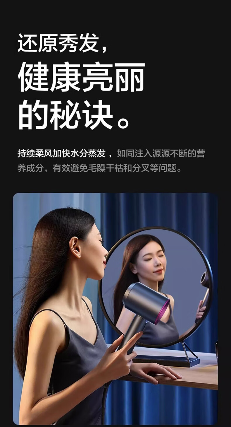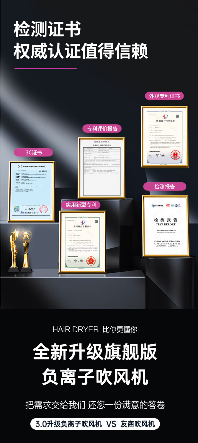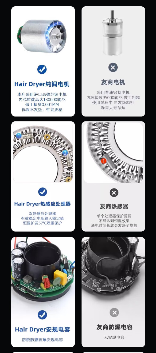 杰班米台湾110v电吹风机家用静音大功率无叶高速负离子吹风机美国出国用 美规110v-玫红色单风嘴-国内禁用