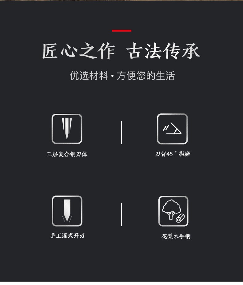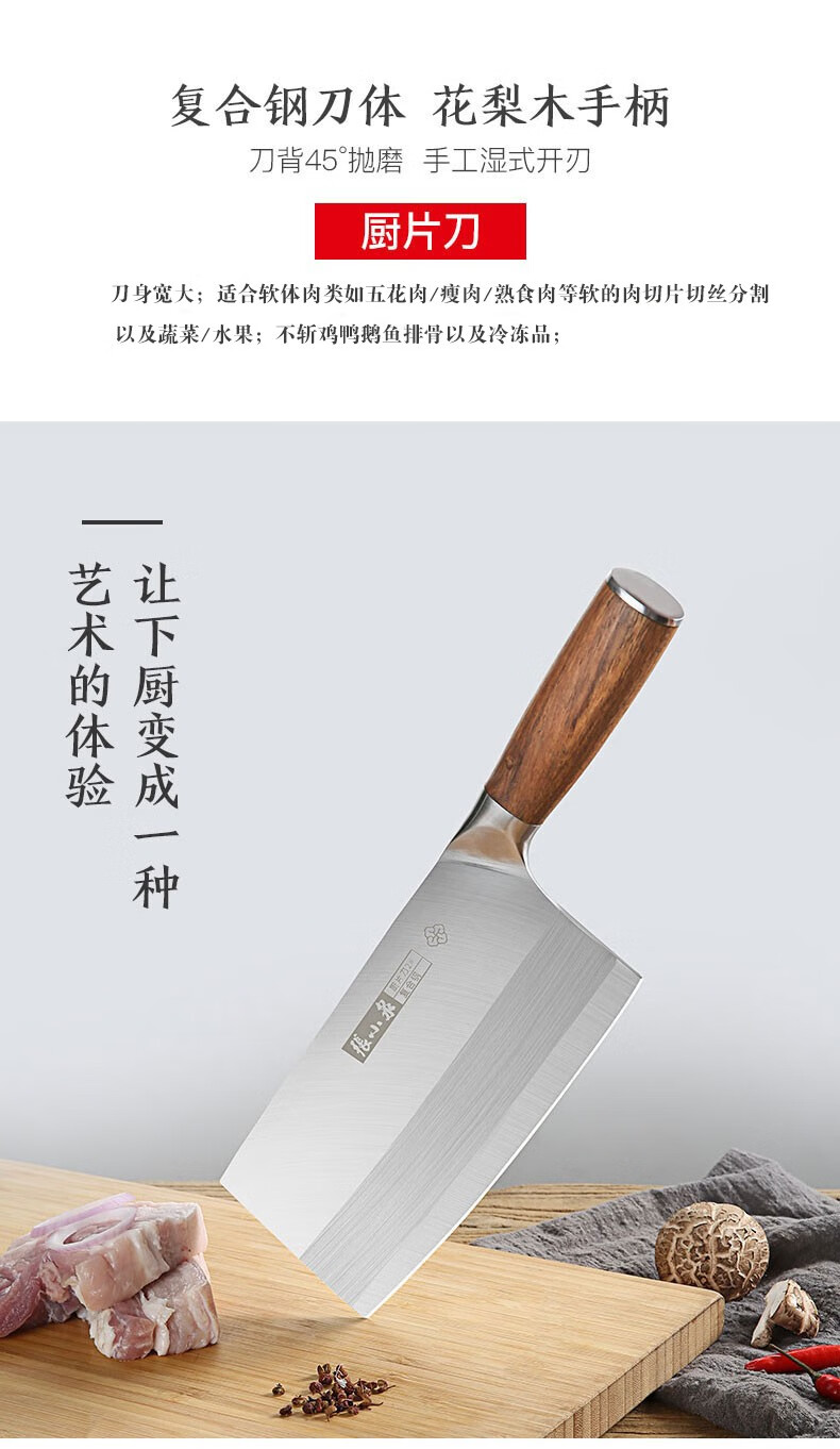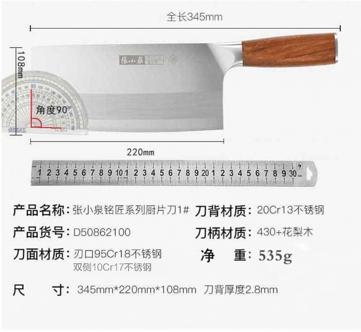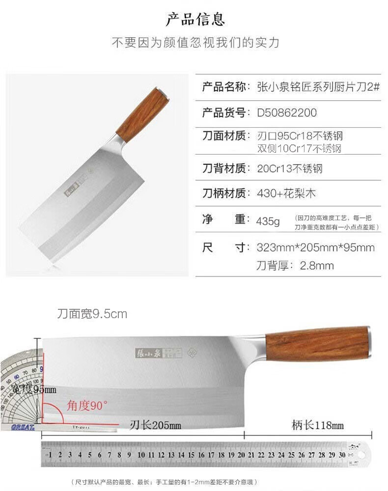 张小泉铭匠系列厨片刀2号菜刀厨房刀具厨师专用刀切片刀三层复合钢刀 2号家用尺寸D50862200