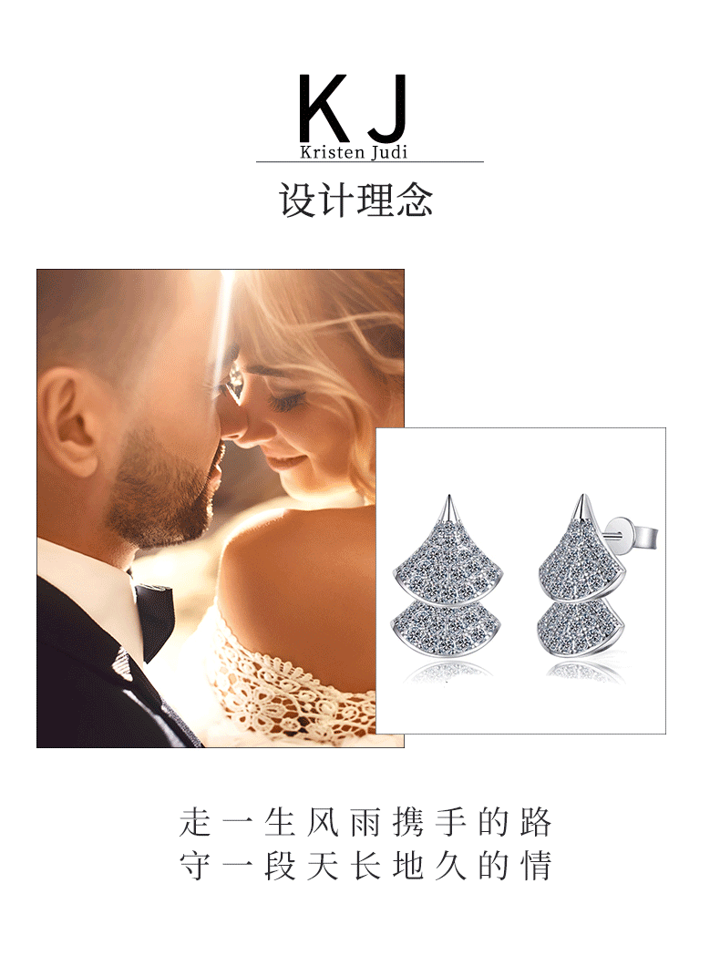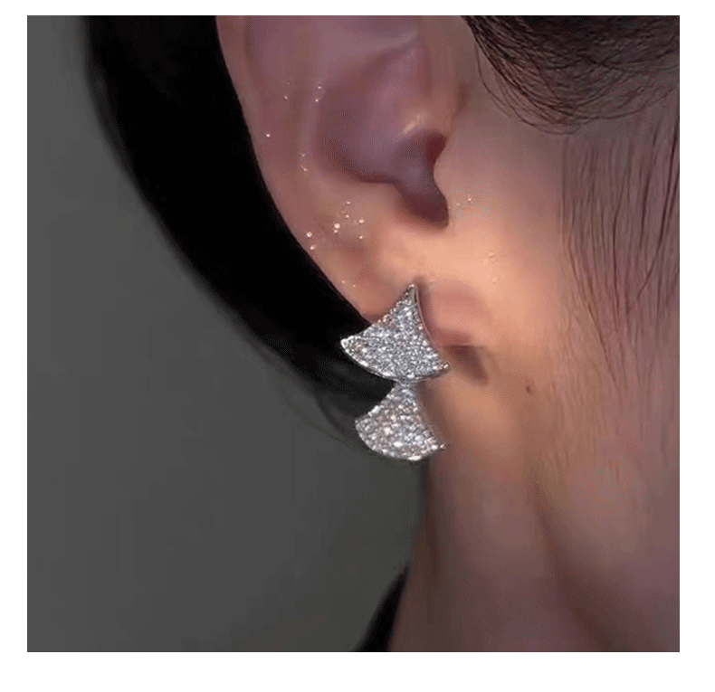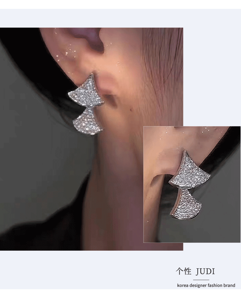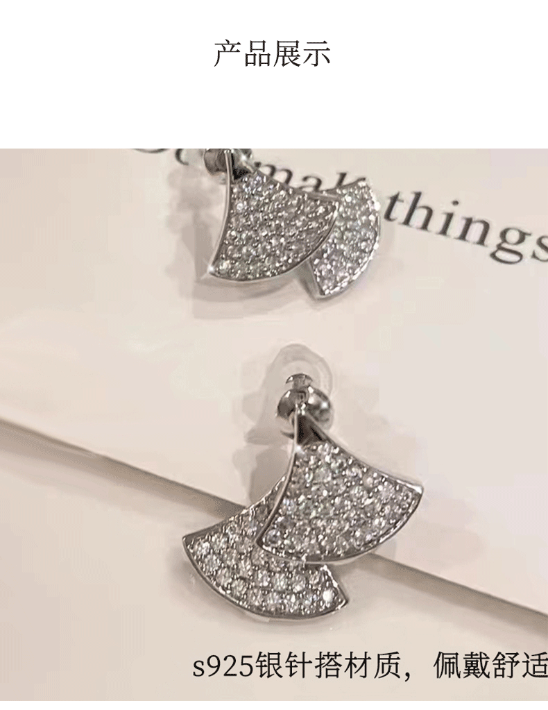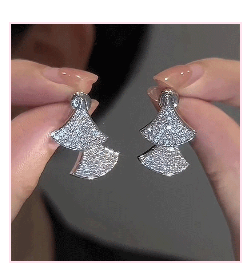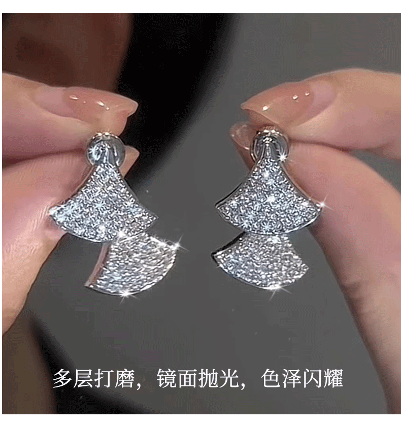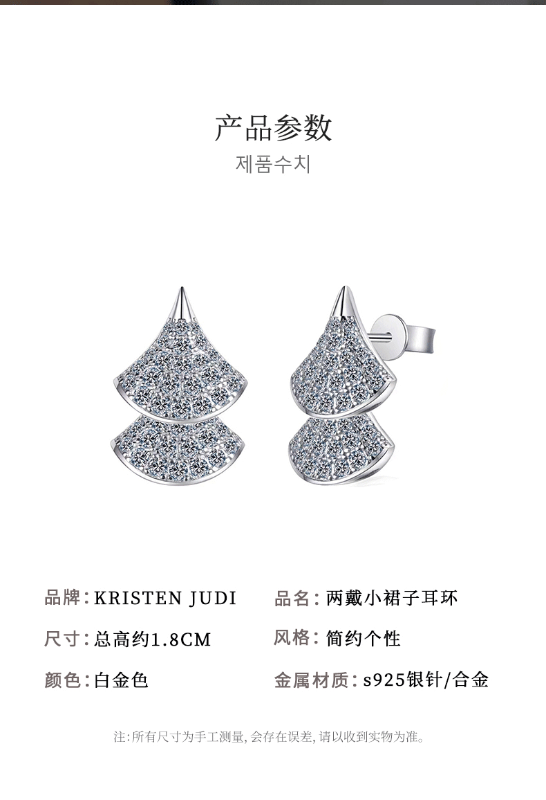 KRISTEN JUDI小裙子扇形耳环女银针两戴满钻耳饰新款小众高级感耳钉送女友老婆 金色送女友老婆妈妈闺蜜实用礼物