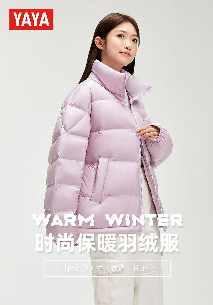 鸭鸭(YAYA)2025年冬季新款面包服羽绒服男女同款时尚短款立领保暖外套 青光黑色 M 【110-130斤】