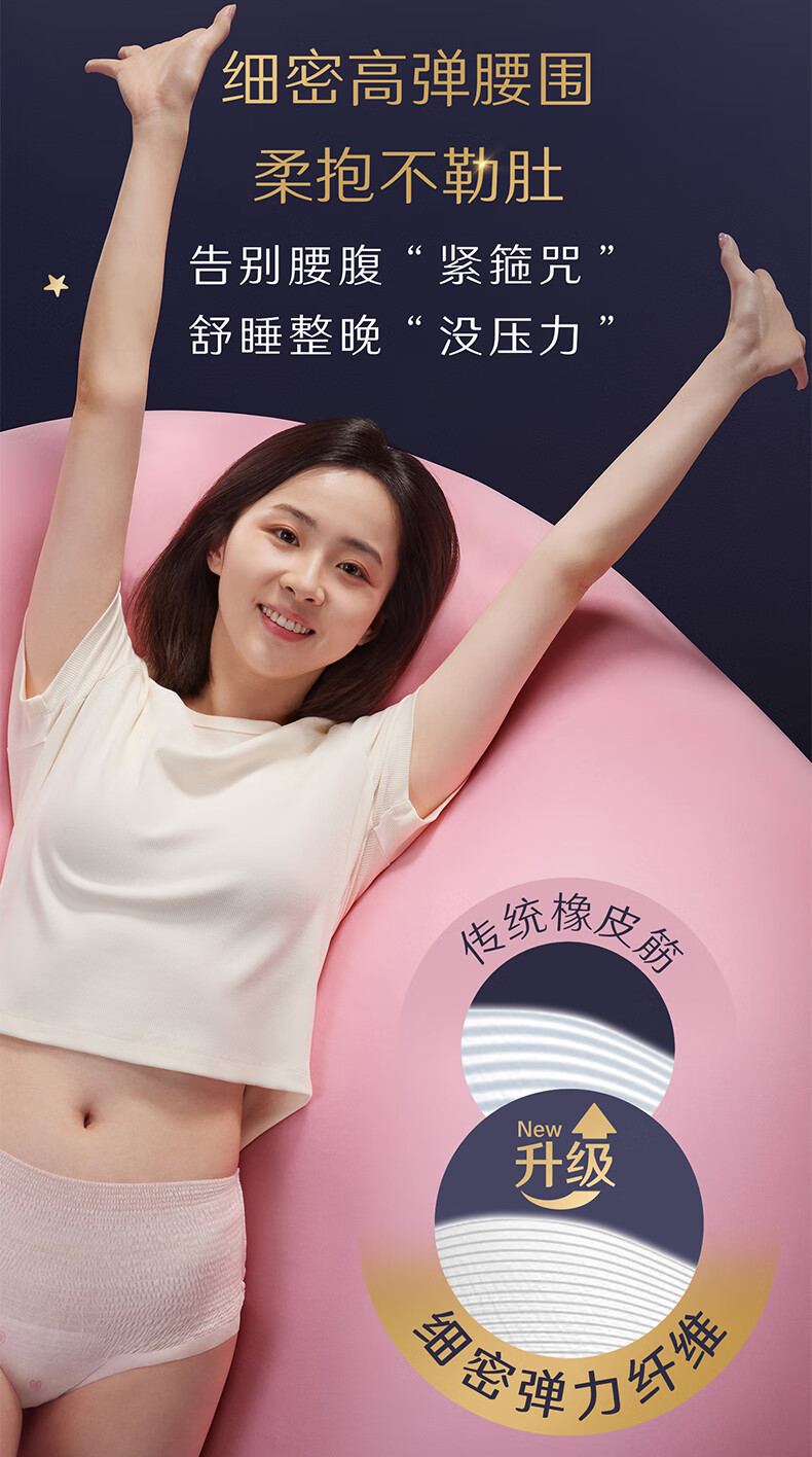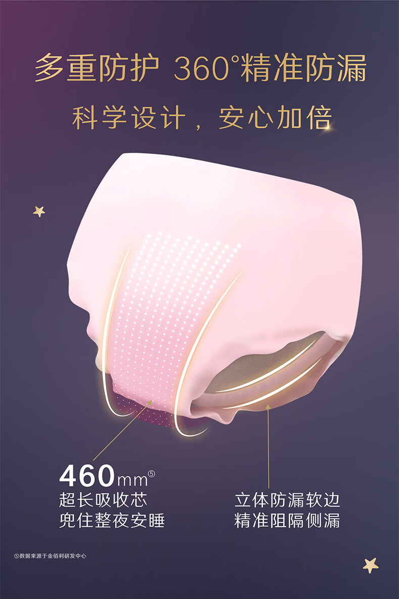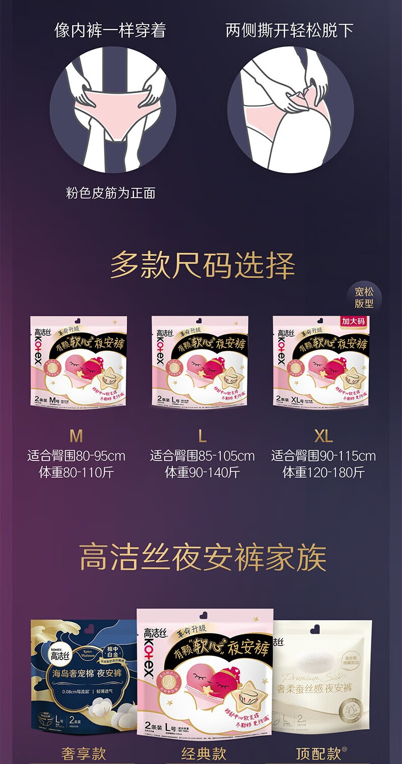 高洁丝【品牌直供】夜安裤裤型卫生巾安睡裤安心裤超长夜用姨妈巾防漏 L 6条 蜜桃小姐夜安裤 默认