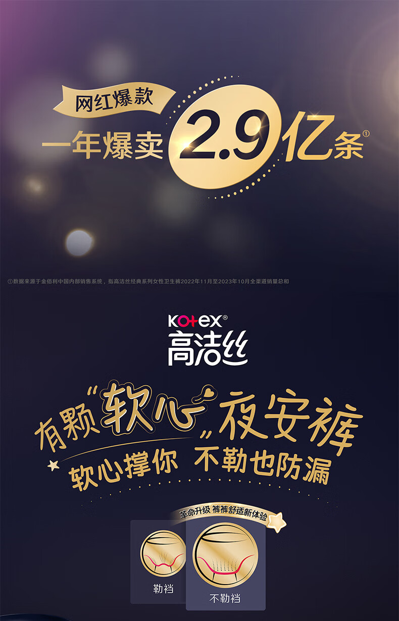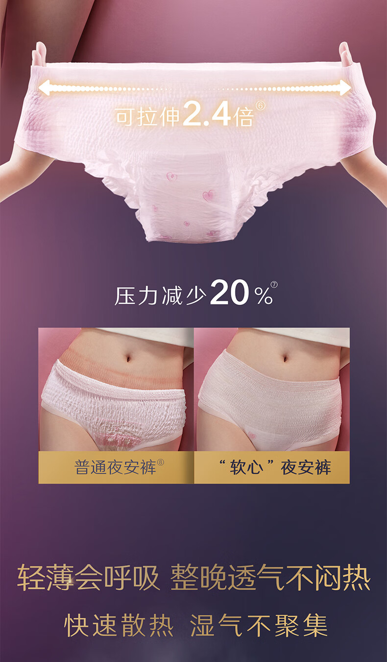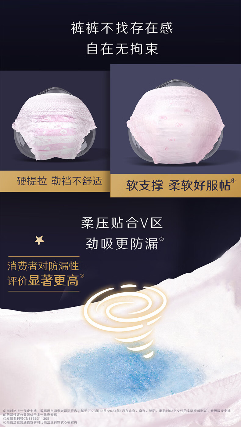 高洁丝【品牌直供】夜安裤裤型卫生巾安睡裤安心裤超长夜用姨妈巾防漏 L 6条 蜜桃小姐夜安裤 默认