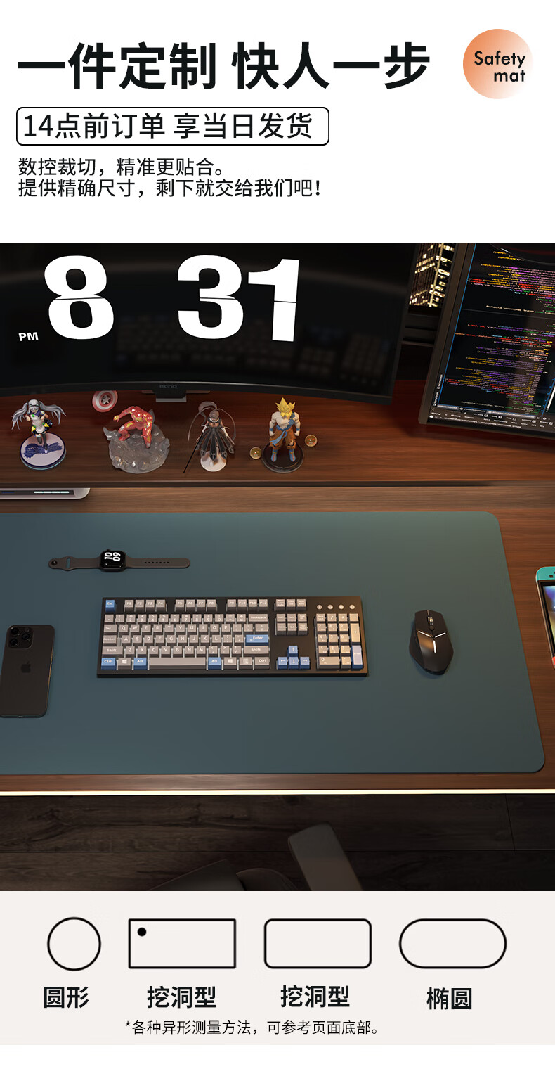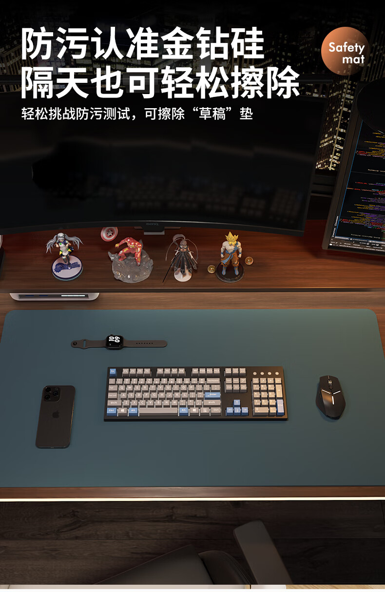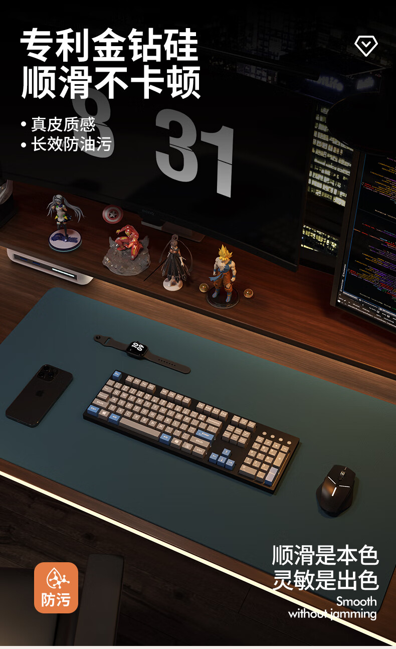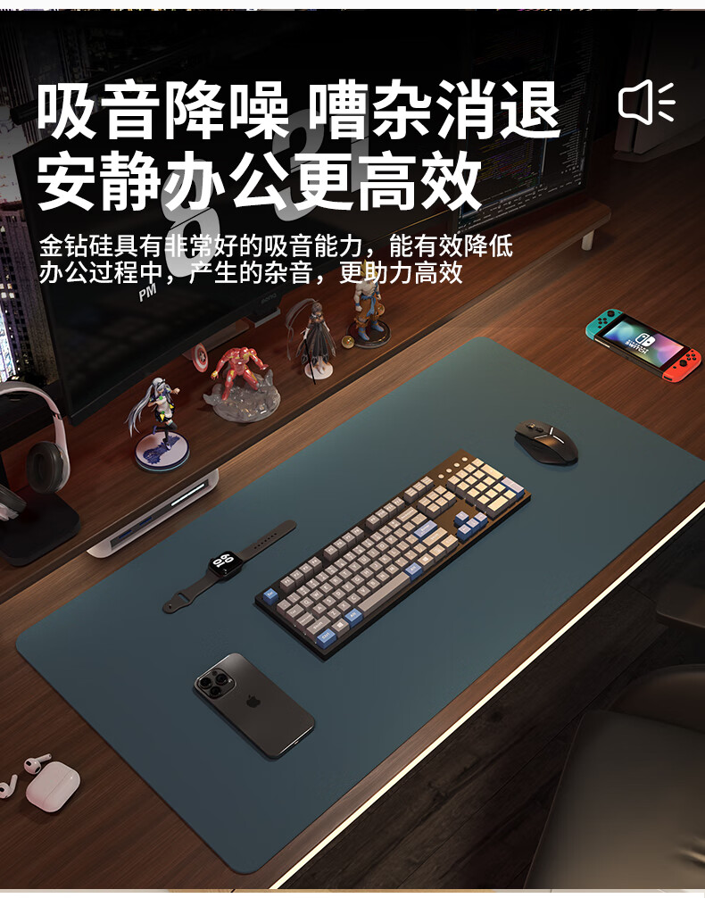 同依鼠标垫大号桌垫桌面保护垫办公电脑超大防滑防污垫游戏学习书桌垫 黛蓝色【顺滑不失贞】 40*80cm 【圆角需联系客服 】
