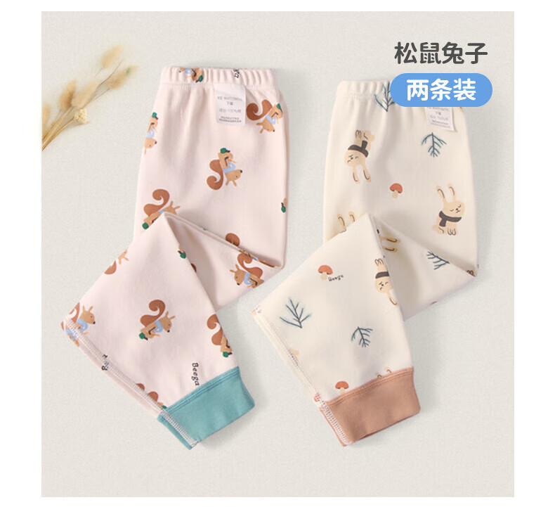 小狗比格(2条装)儿童裤子睡裤纯棉男秋裤长全棉春秋女童打底裤宝宝无骨 C组【松鼠+兔子】 130cm