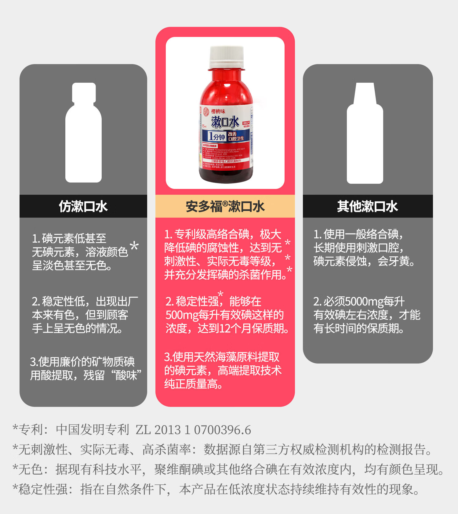 安多福碘伏漱口水抗菌 杀灭龋齿病菌口腔异味细菌溃疡感染真菌 权威检测 245毫升单瓶【改善口腔卫生】