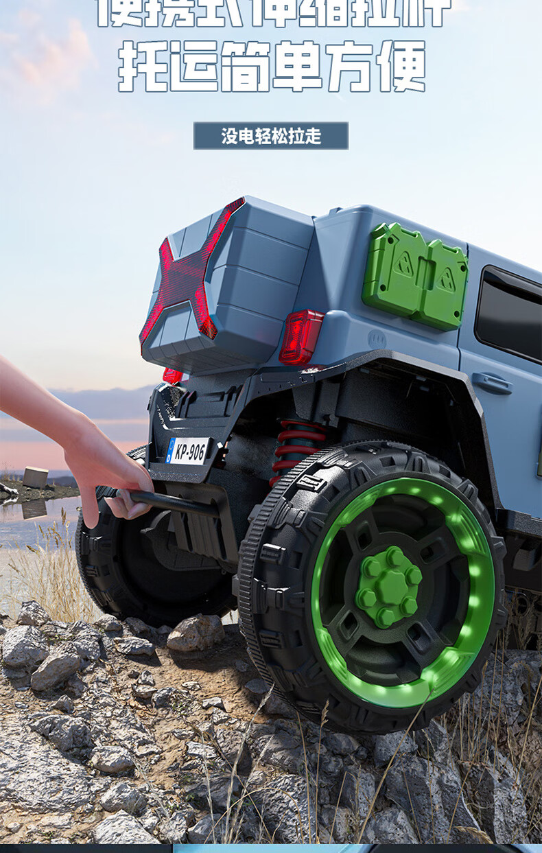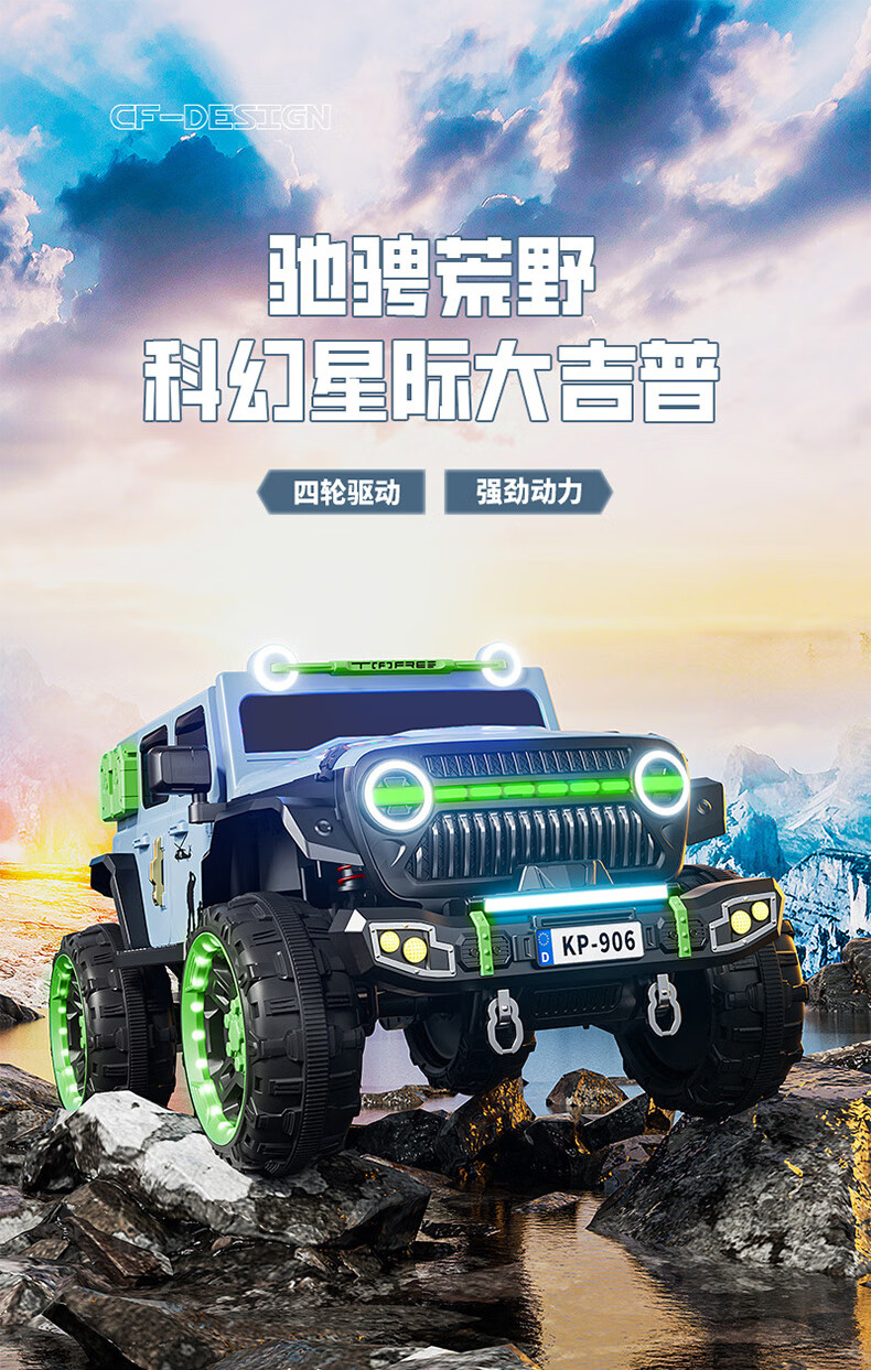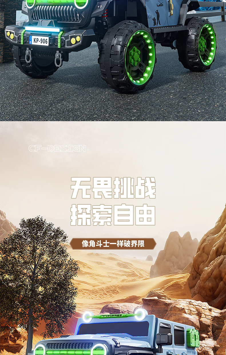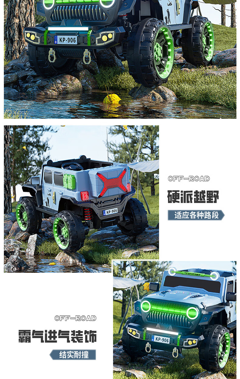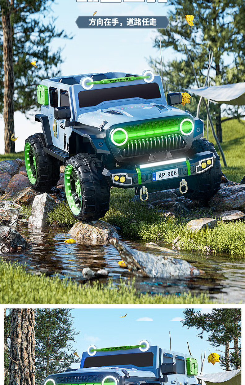 贝趣儿童电动车四轮遥控汽车可坐大人0-12岁超大可驾驶牧马人玩具车 豪华灰+12v10四驱+遥控+皮座软轮 小孩宝宝双人亲子四驱汽车