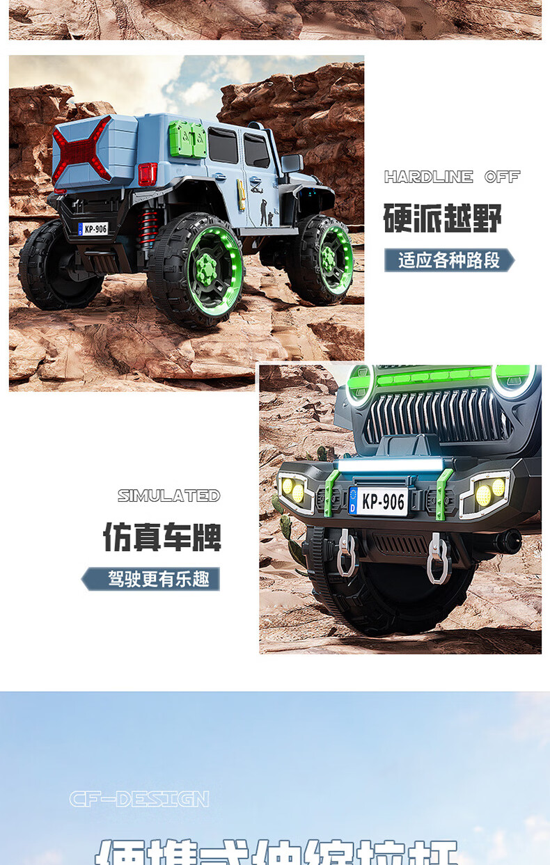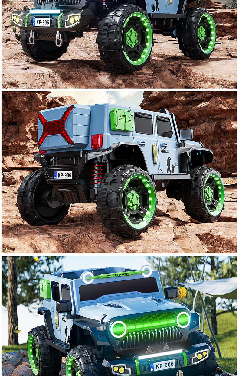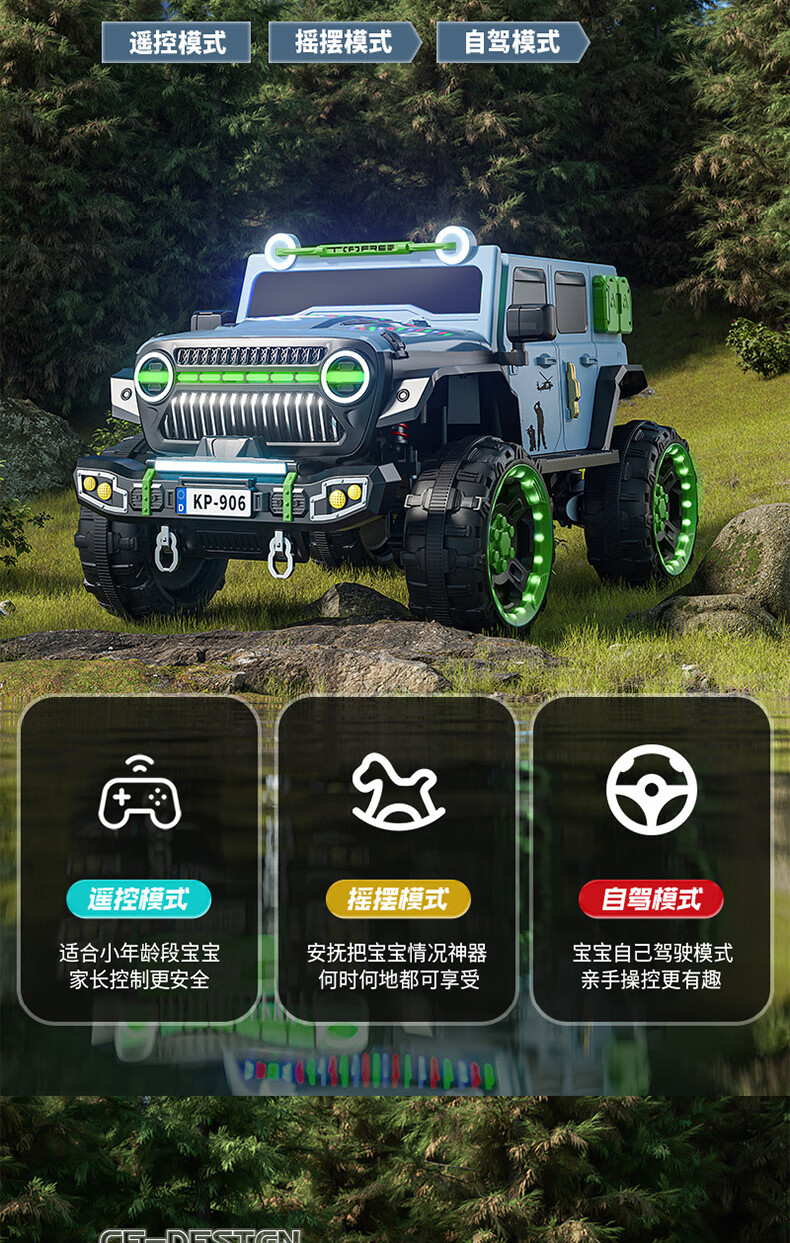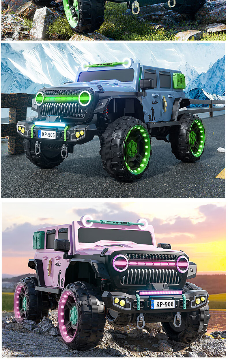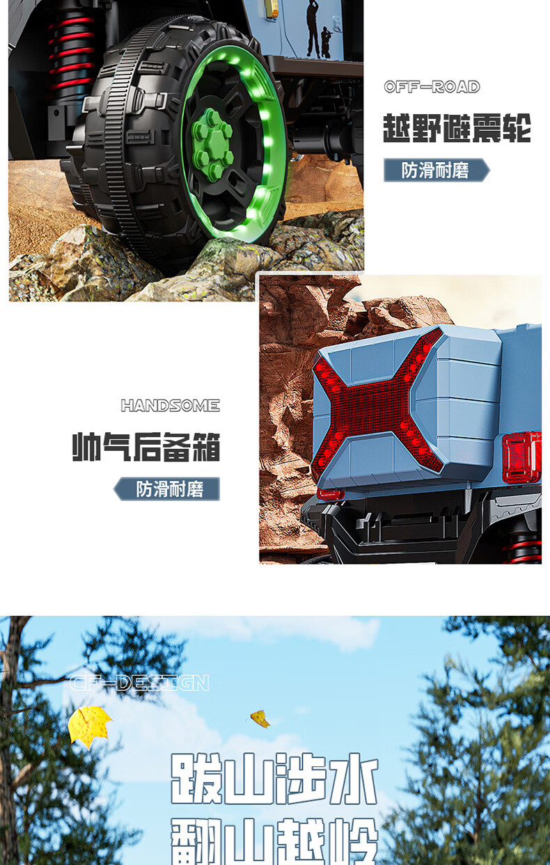 贝趣儿童电动车四轮遥控汽车可坐大人0-12岁超大可驾驶牧马人玩具车 豪华灰+12v10四驱+遥控+皮座软轮 小孩宝宝双人亲子四驱汽车