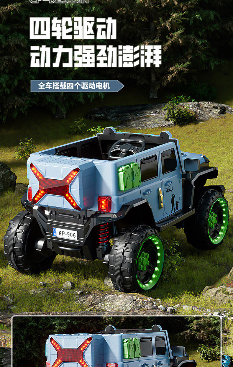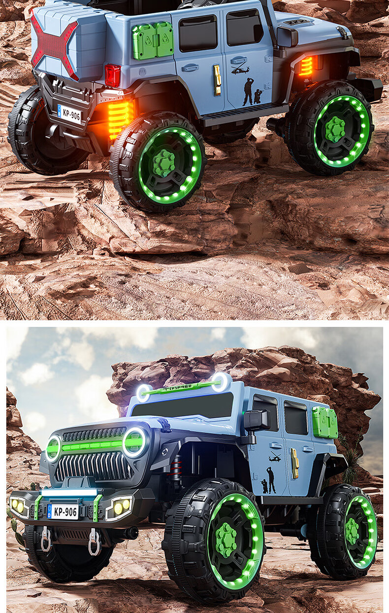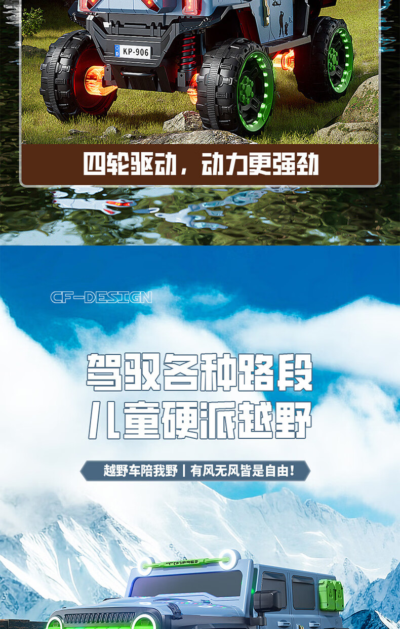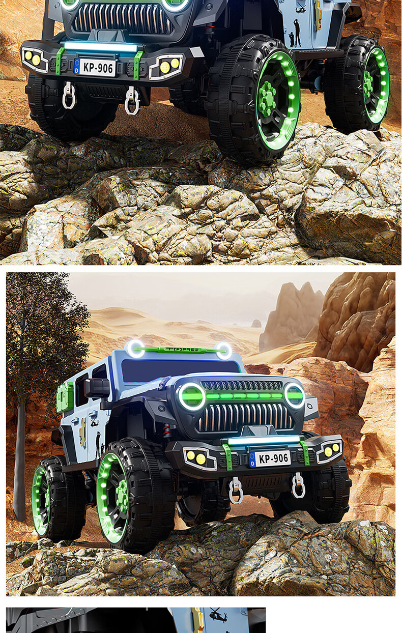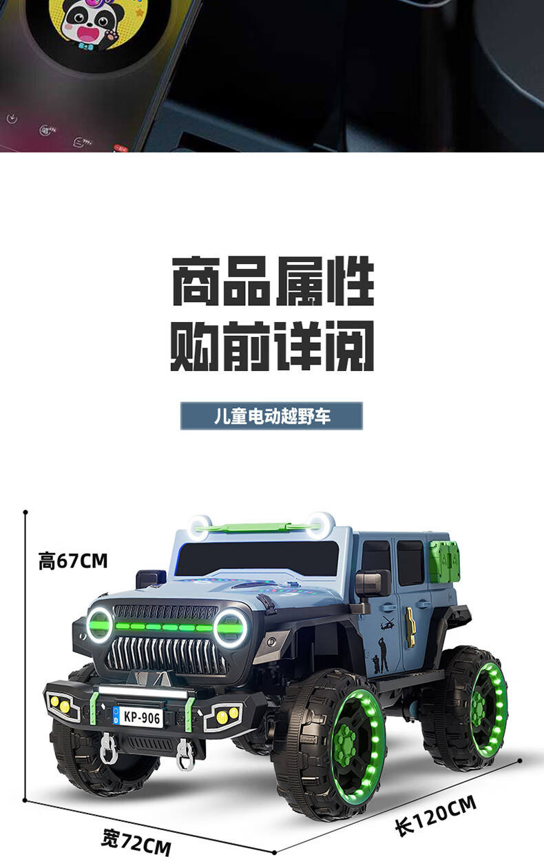 贝趣儿童电动车四轮遥控汽车可坐大人0-12岁超大可驾驶牧马人玩具车 豪华灰+12v10四驱+遥控+皮座软轮 小孩宝宝双人亲子四驱汽车