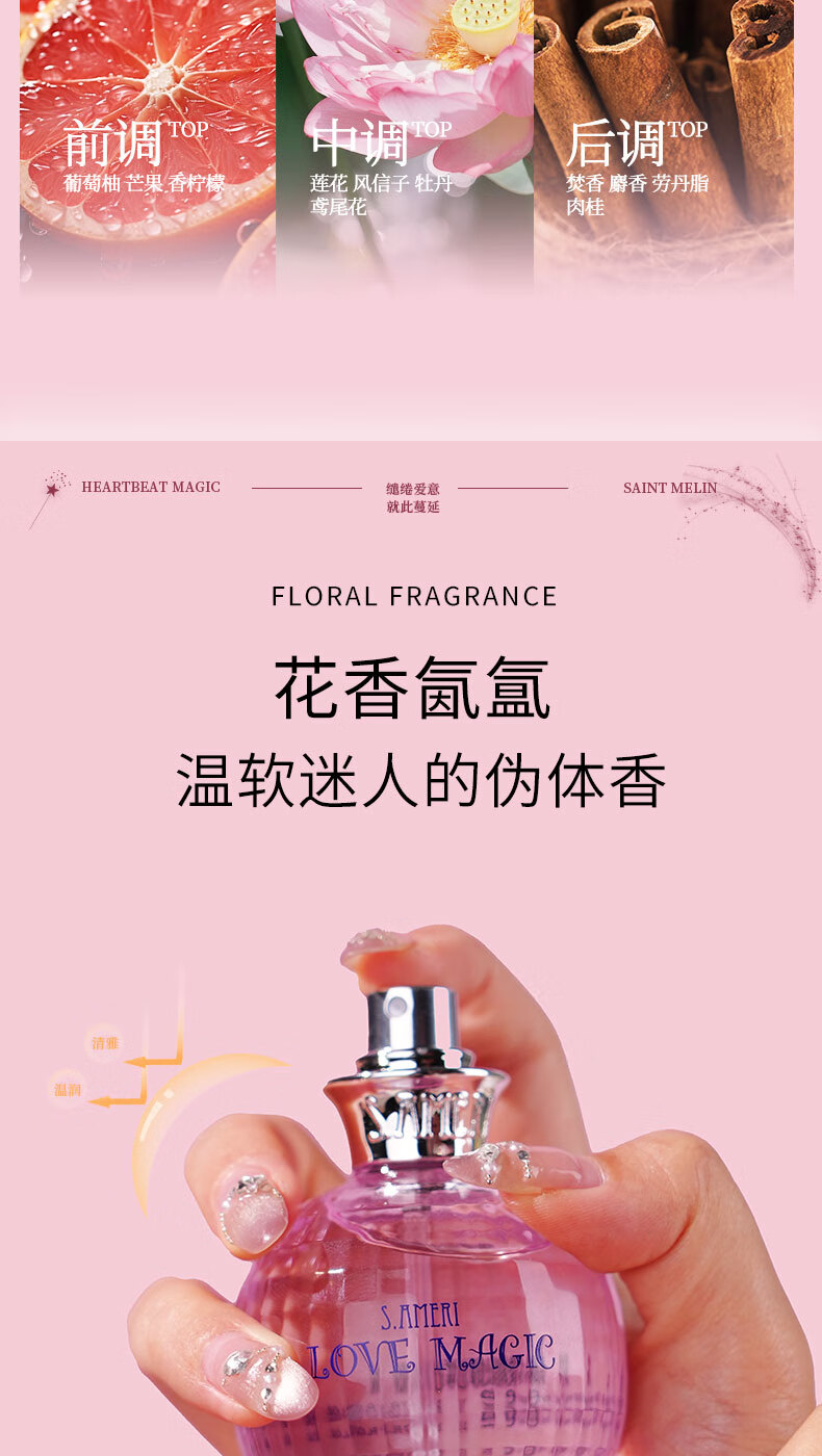 圣美伦心动魔法香水甜美花果香清新持久留香甜心女香送女朋友礼物 心动魔法【50ml】拍1到手5件