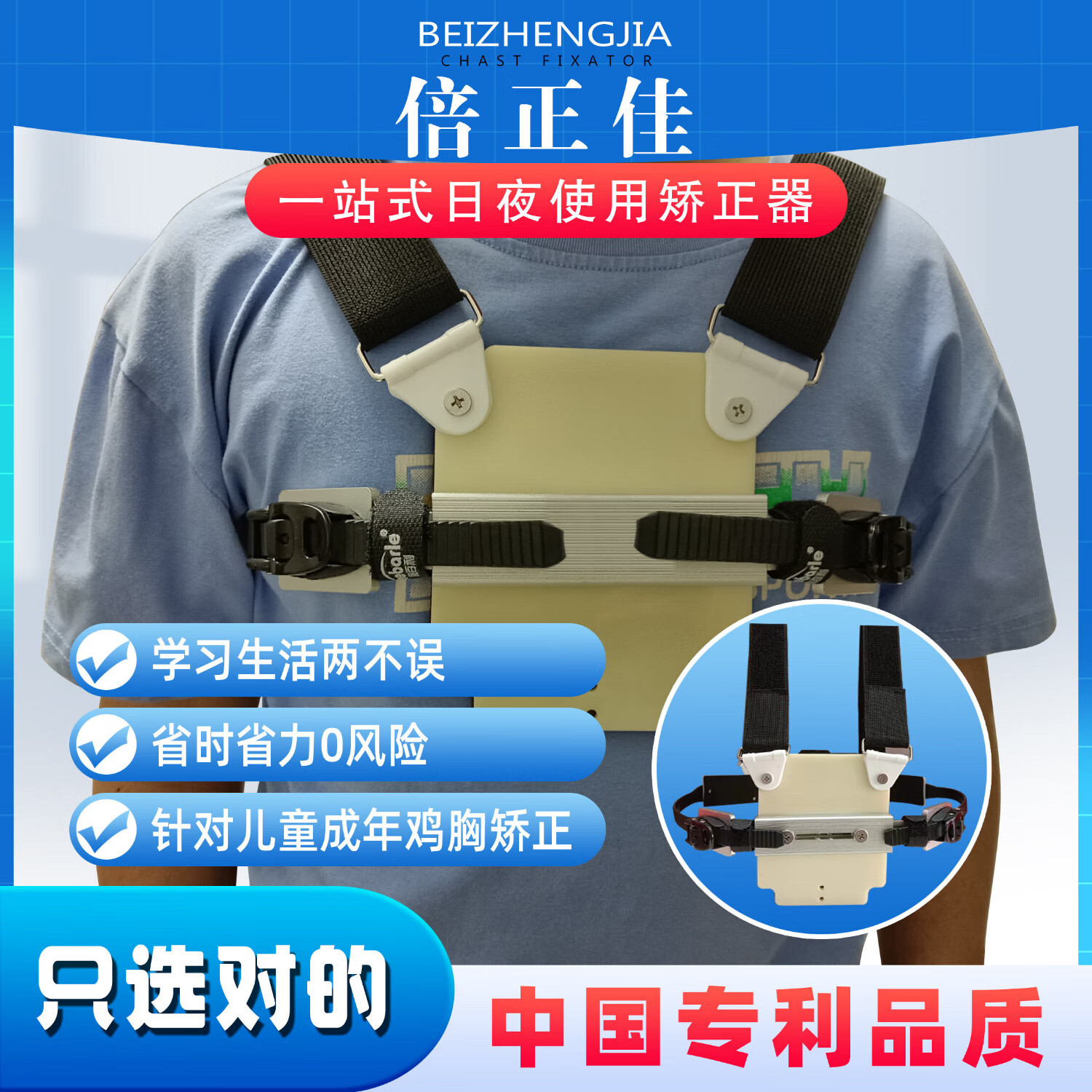 倍正佳儿童医用鸡胸矫正器胸骨支器专用修复神器正品支具 胸部矫正仪器 脖子下面凸鸡胸(3D打印日夜款)