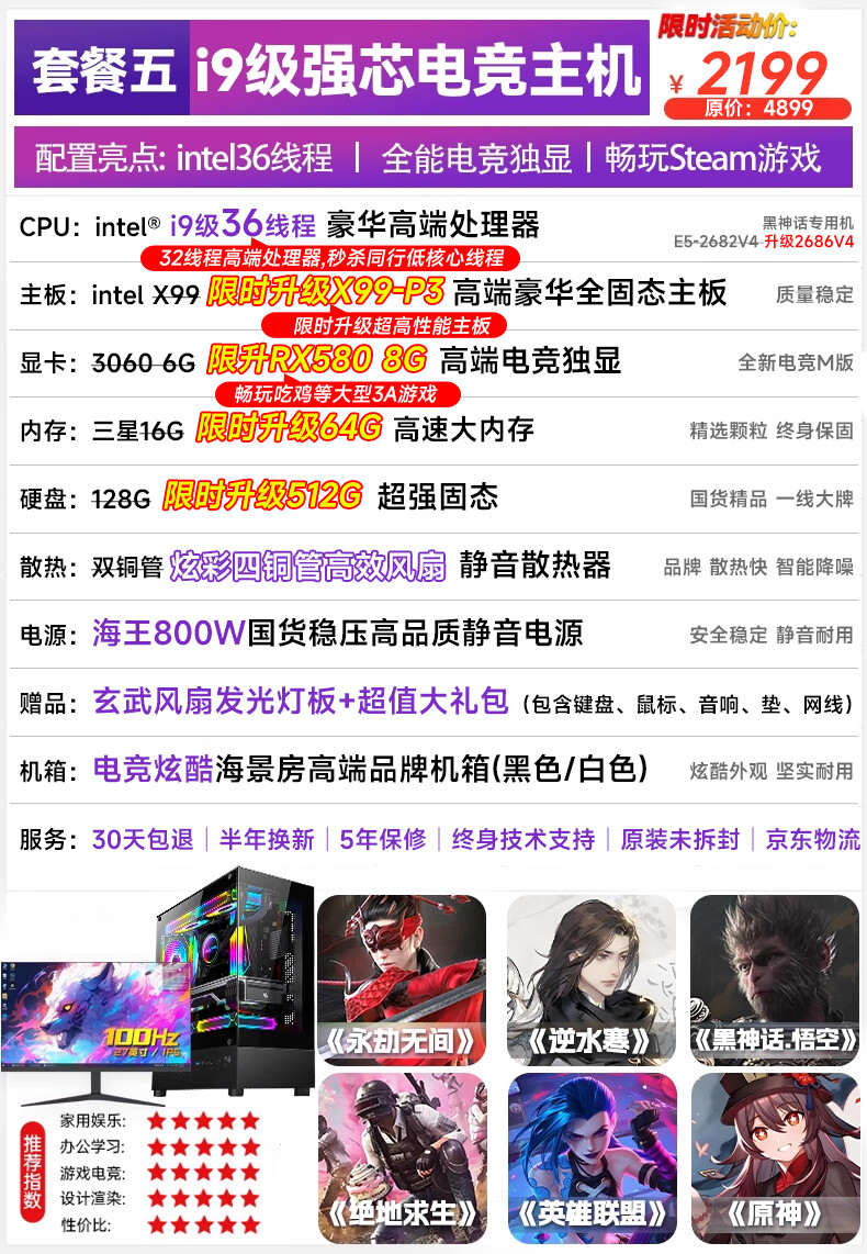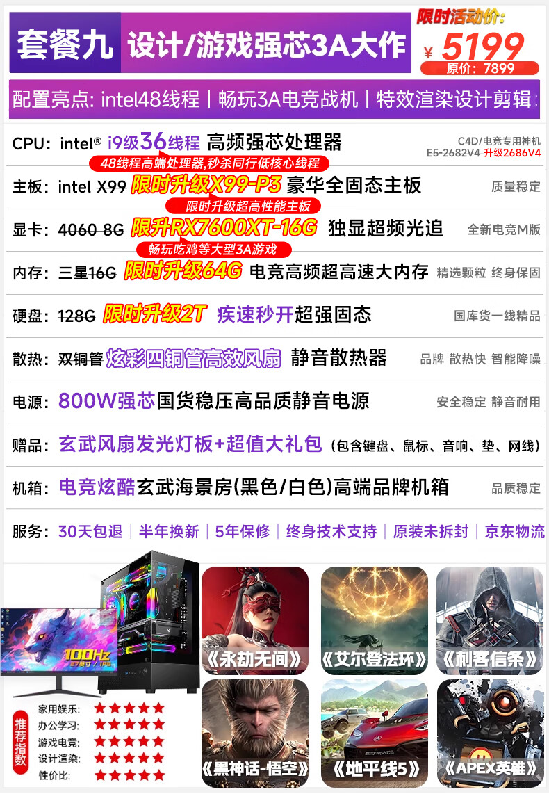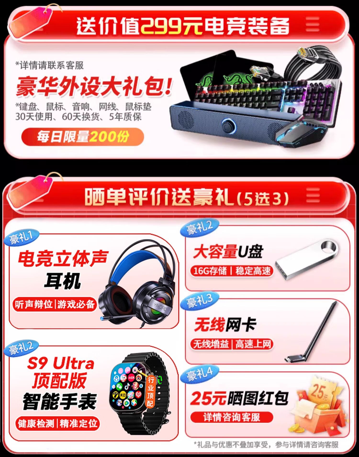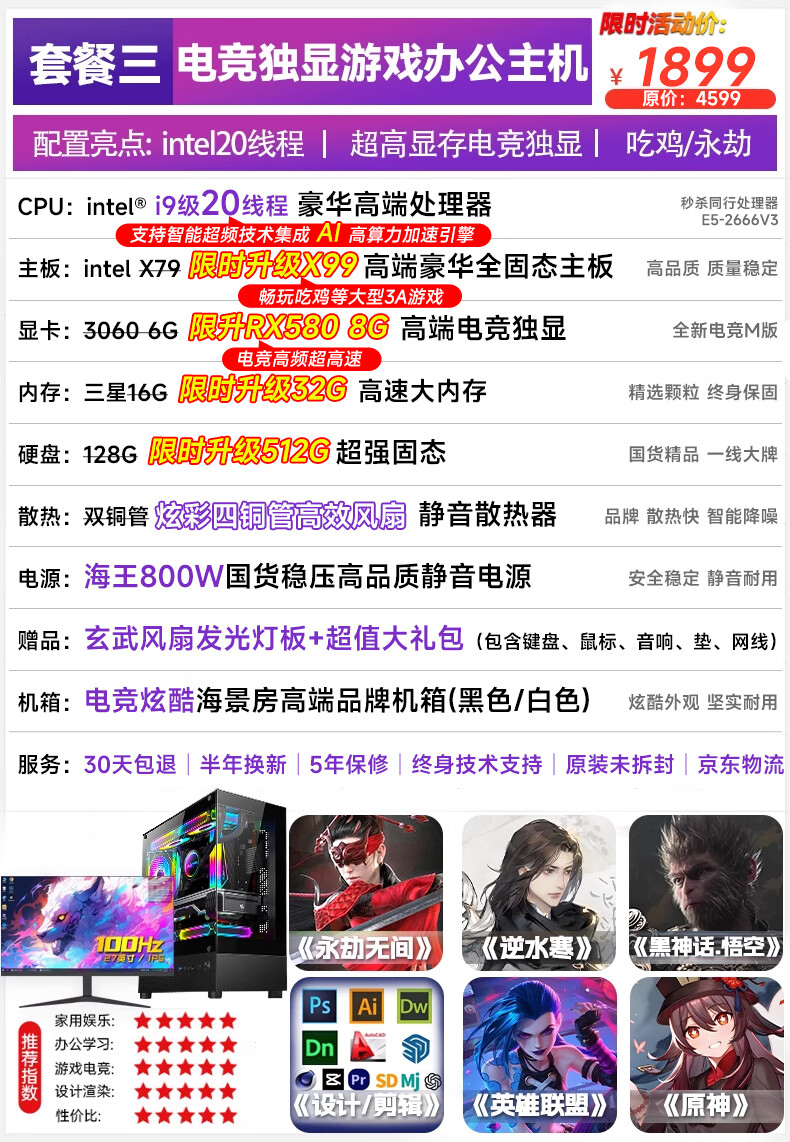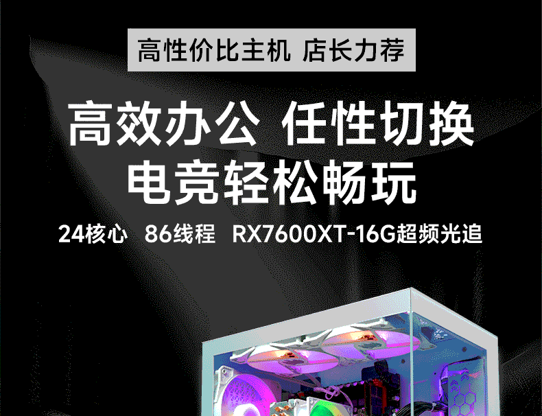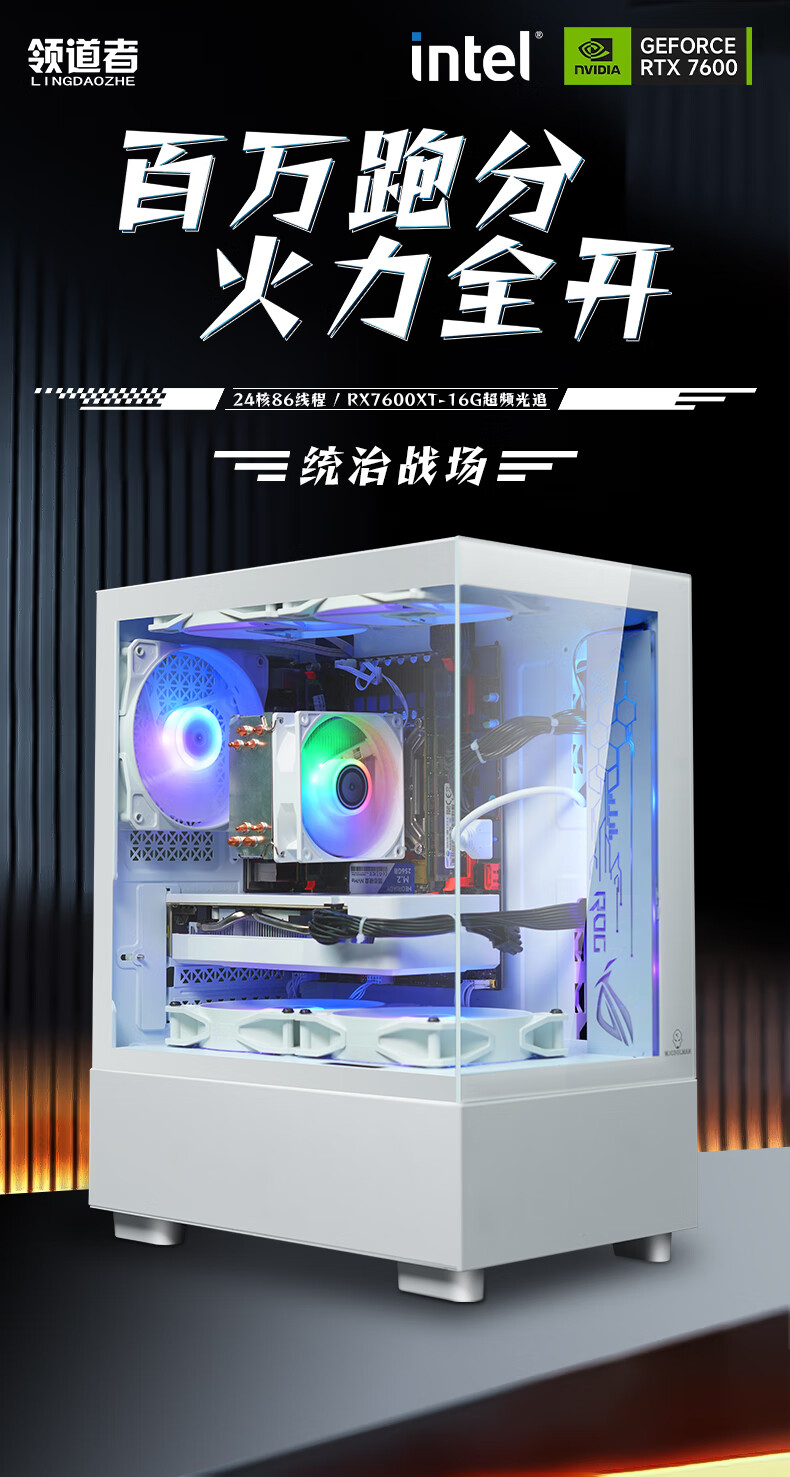领道者25新款电脑台式主机全套独显卡水冷光追芯片游戏整机办公组装机家用全家桶吃鸡PS直播全新官方正品 套餐七海景房酷睿i9级64G/1T旗舰性能3A大作 官方标配【黑/白单主机+24寸显示器|30天试用】