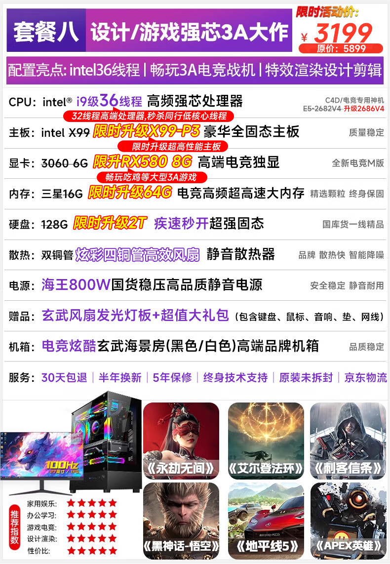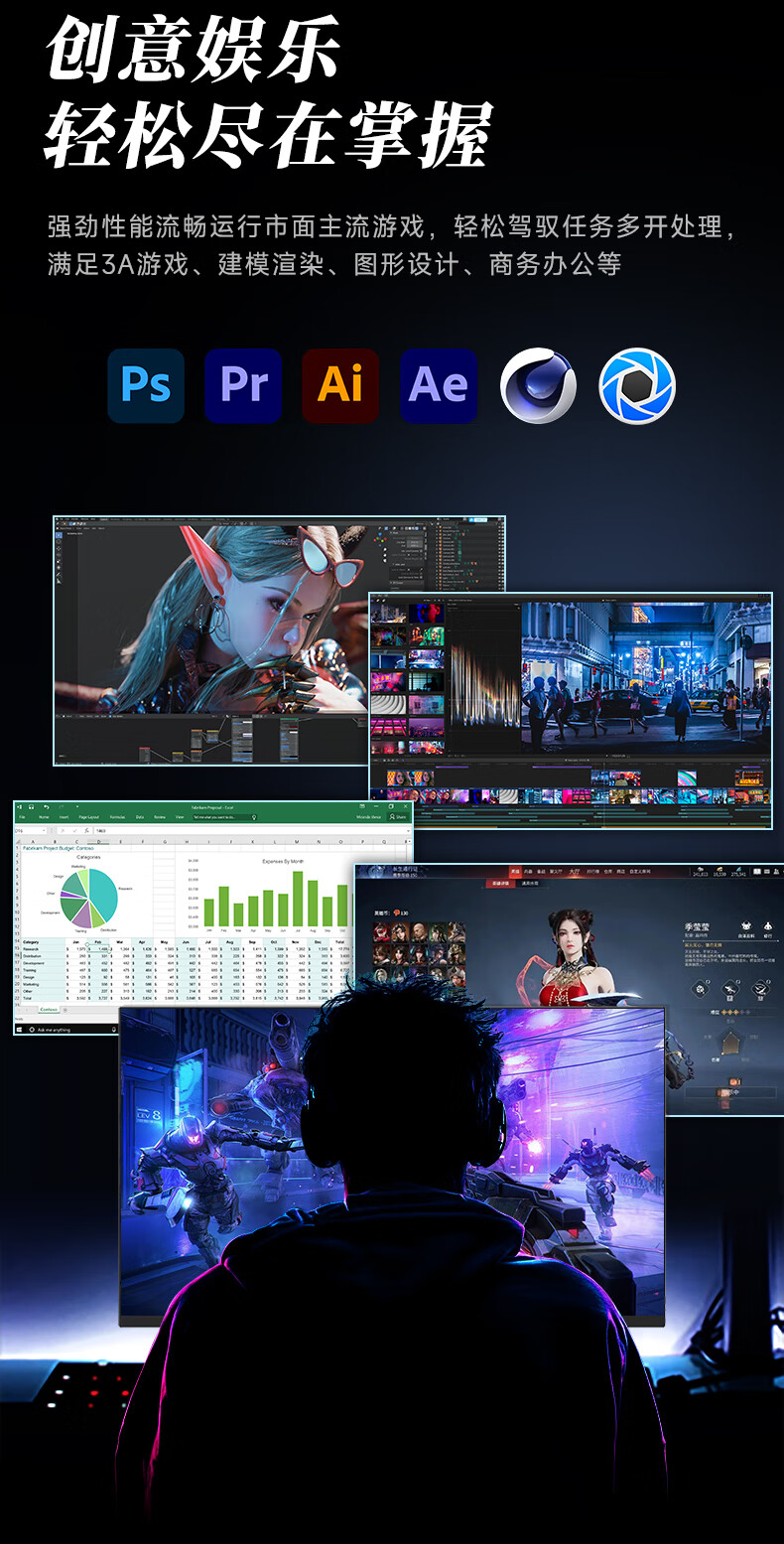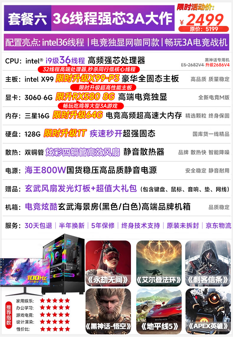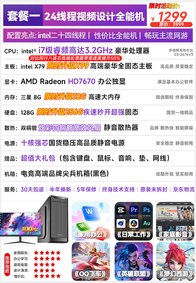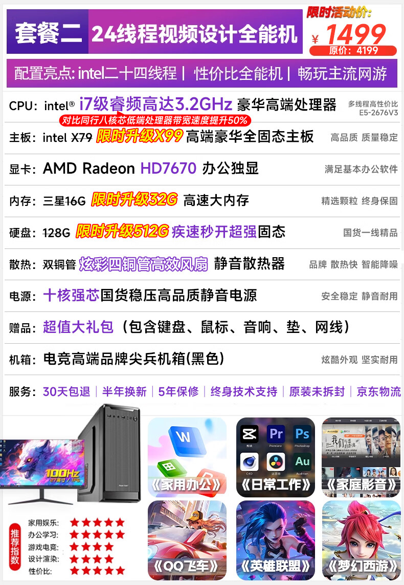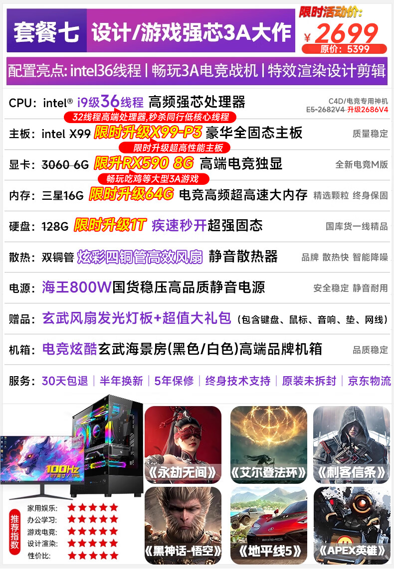 领道者25新款电脑台式主机全套独显卡水冷光追芯片游戏整机办公组装机家用全家桶吃鸡PS直播全新官方正品 套餐七海景房酷睿i9级64G/1T旗舰性能3A大作 官方标配【黑/白单主机+24寸显示器|30天试用】